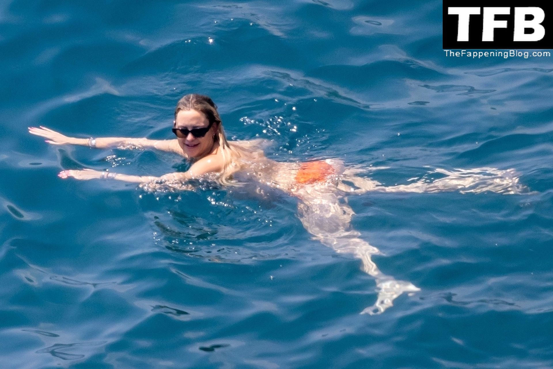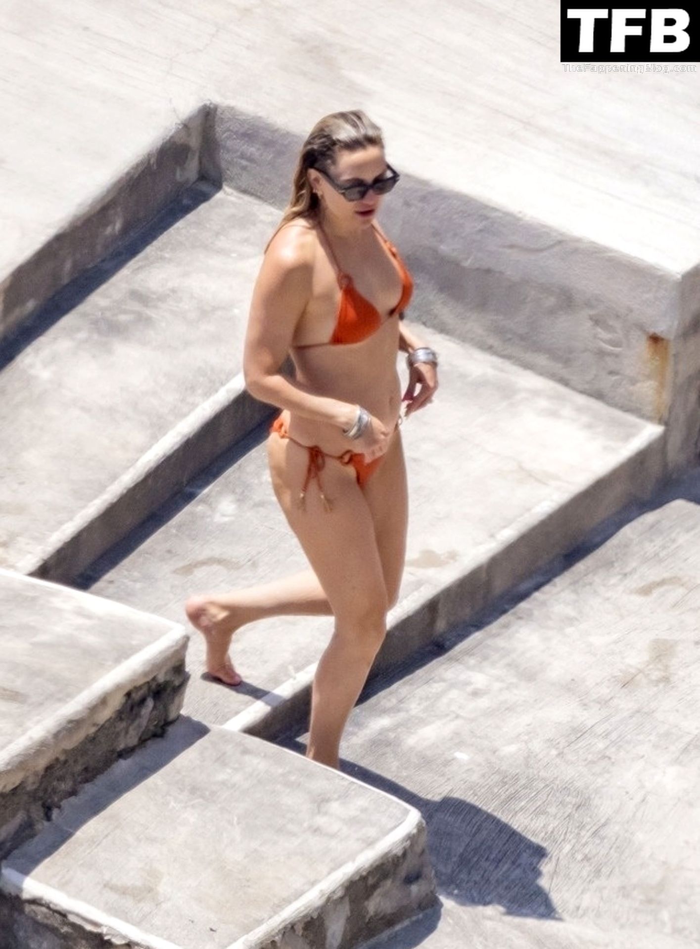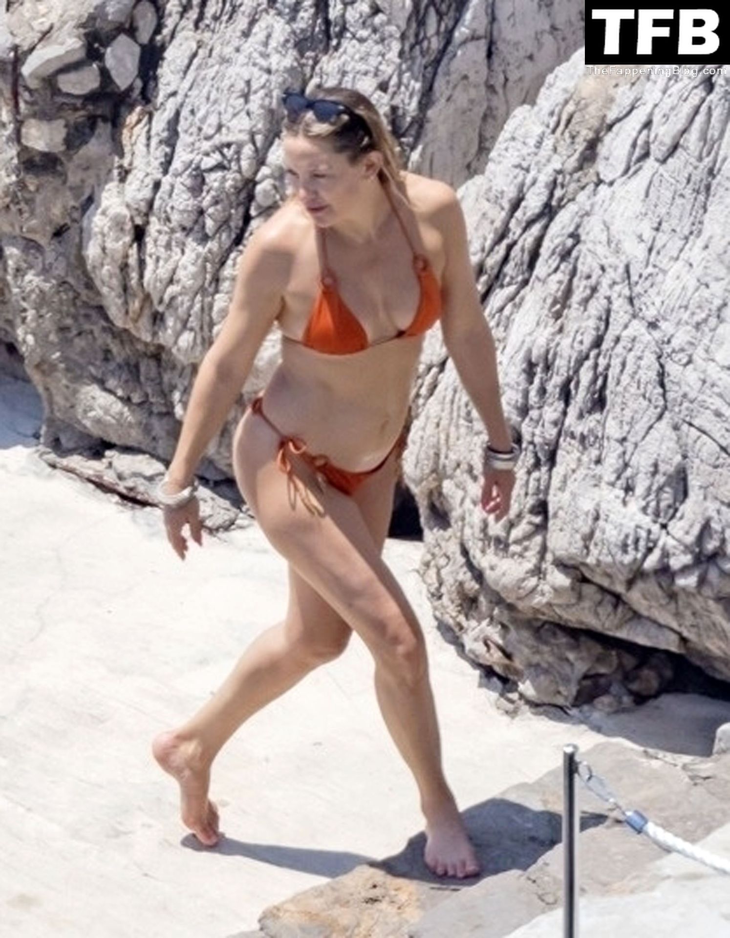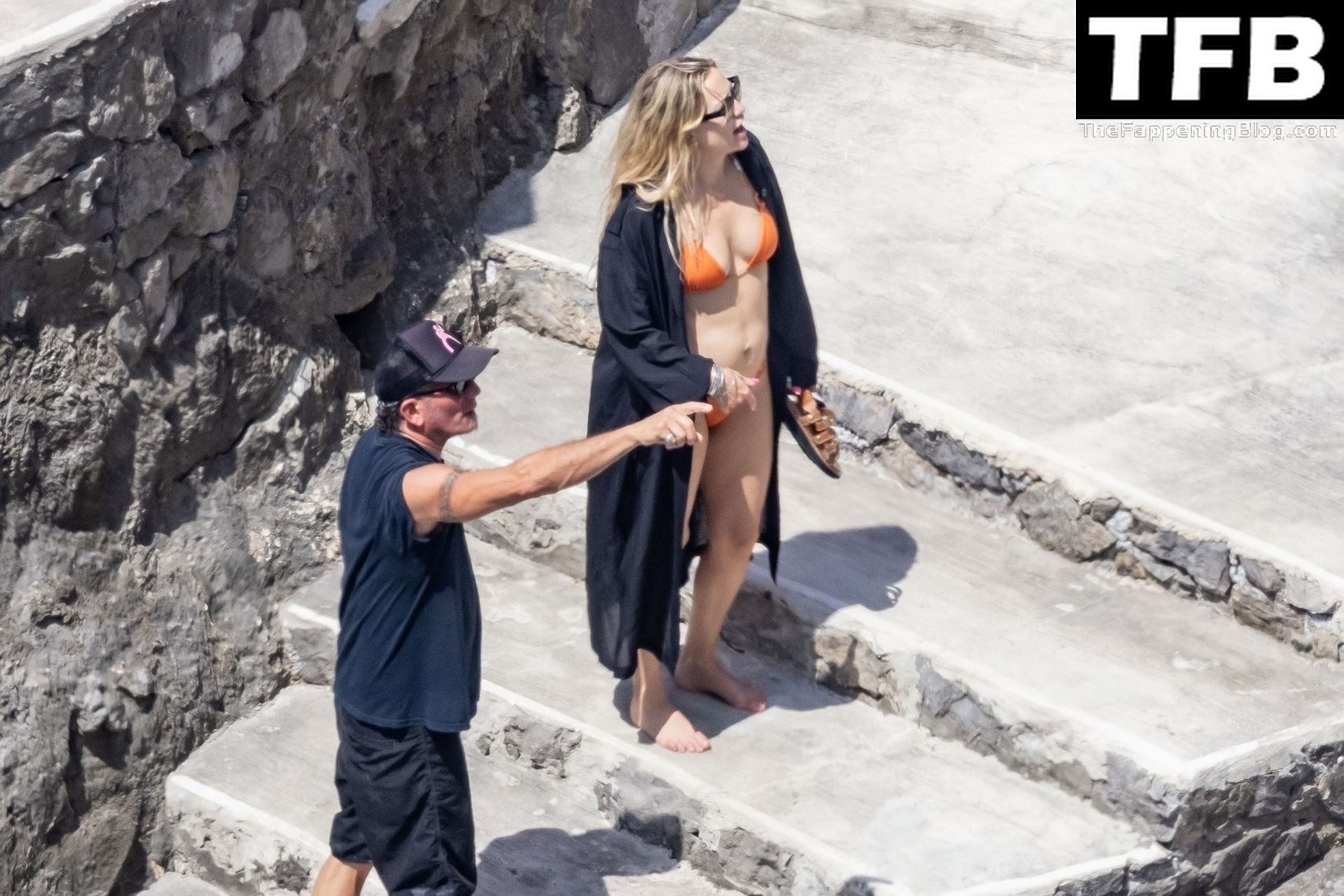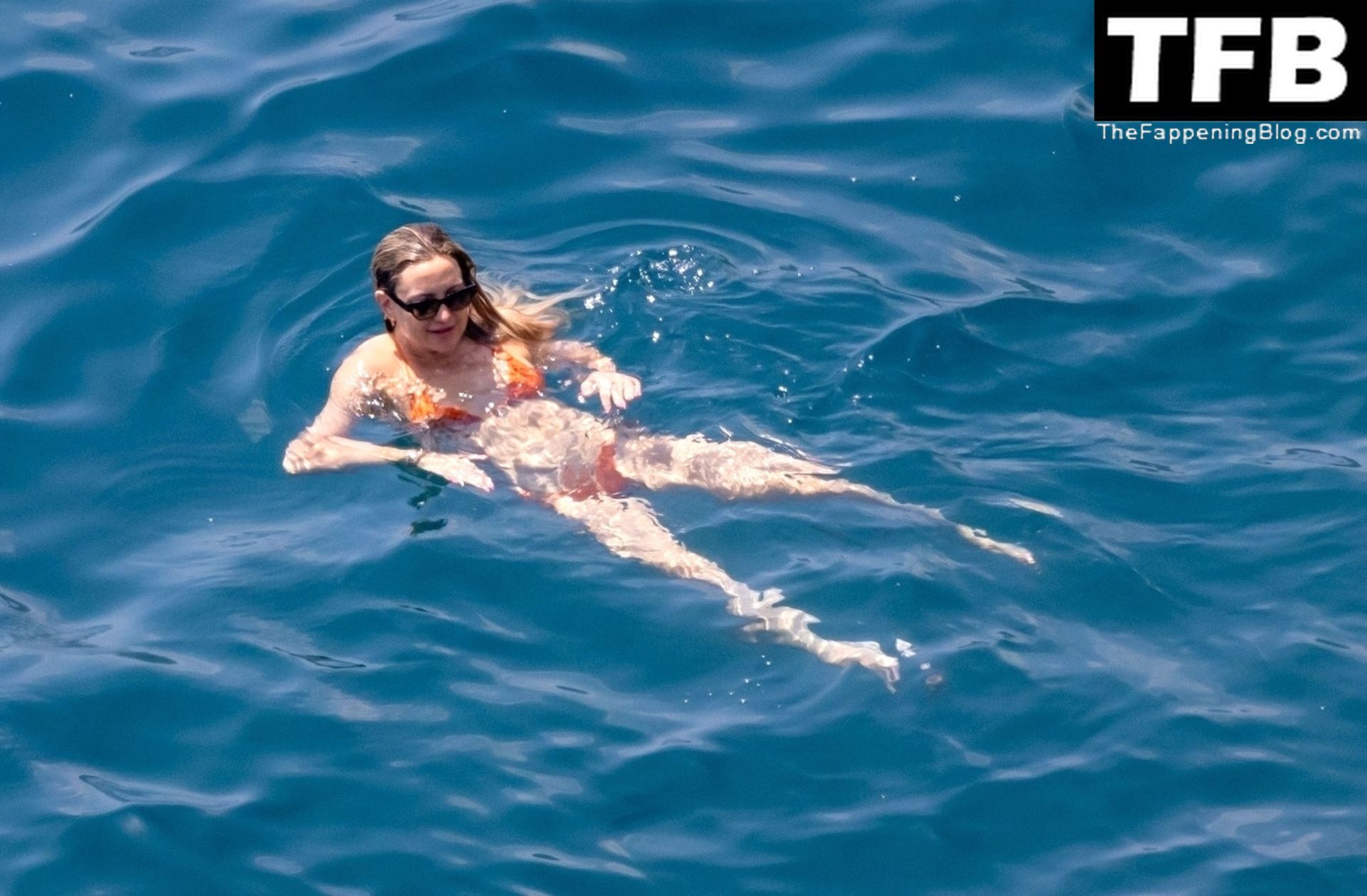 Bajo el sol abrasador de Positano, la actriz estadounidense Kate Hudson presume su impresionante figura en su bikini naranja durante su viaje familiar por Italia, 07/04/2022.
