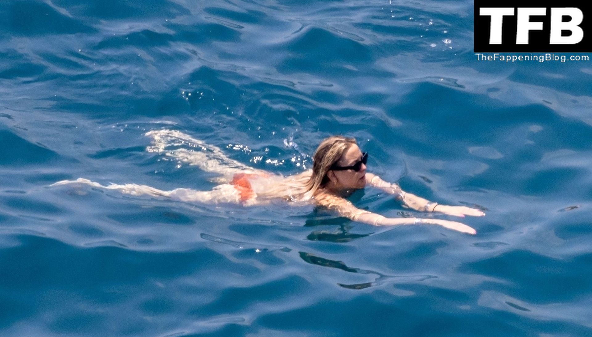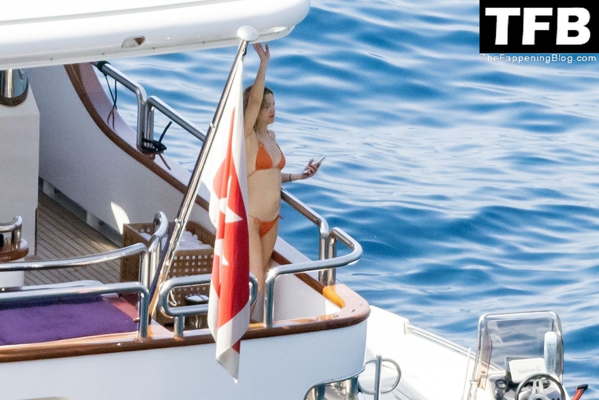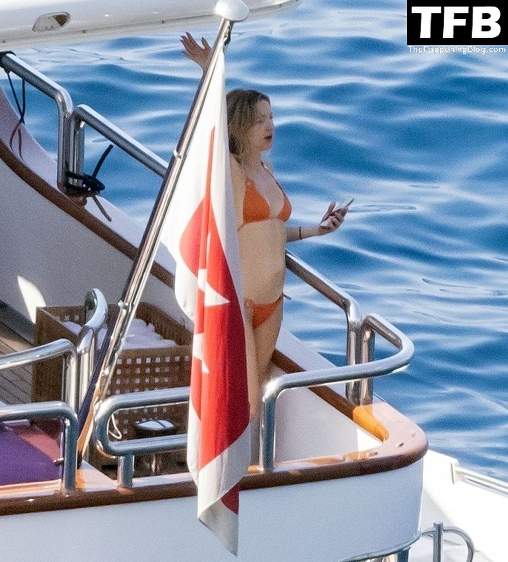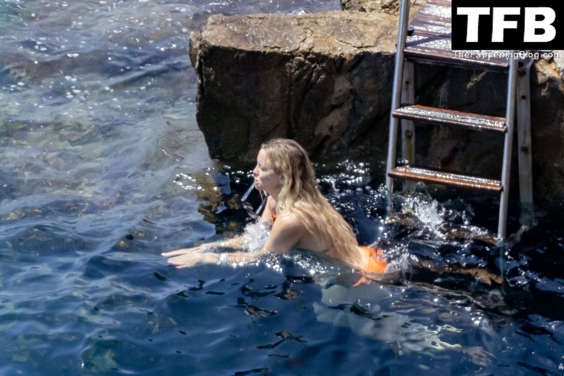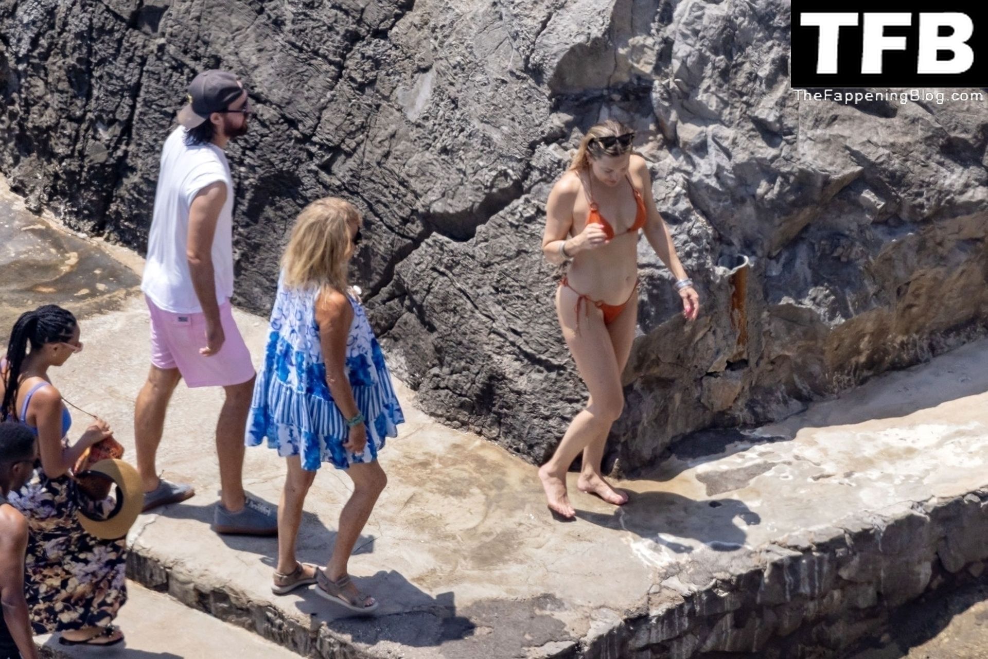 Bajo el sol abrasador de Positano, la actriz estadounidense Kate Hudson presume su impresionante figura en su bikini naranja durante su viaje familiar por Italia, 07/04/2022.