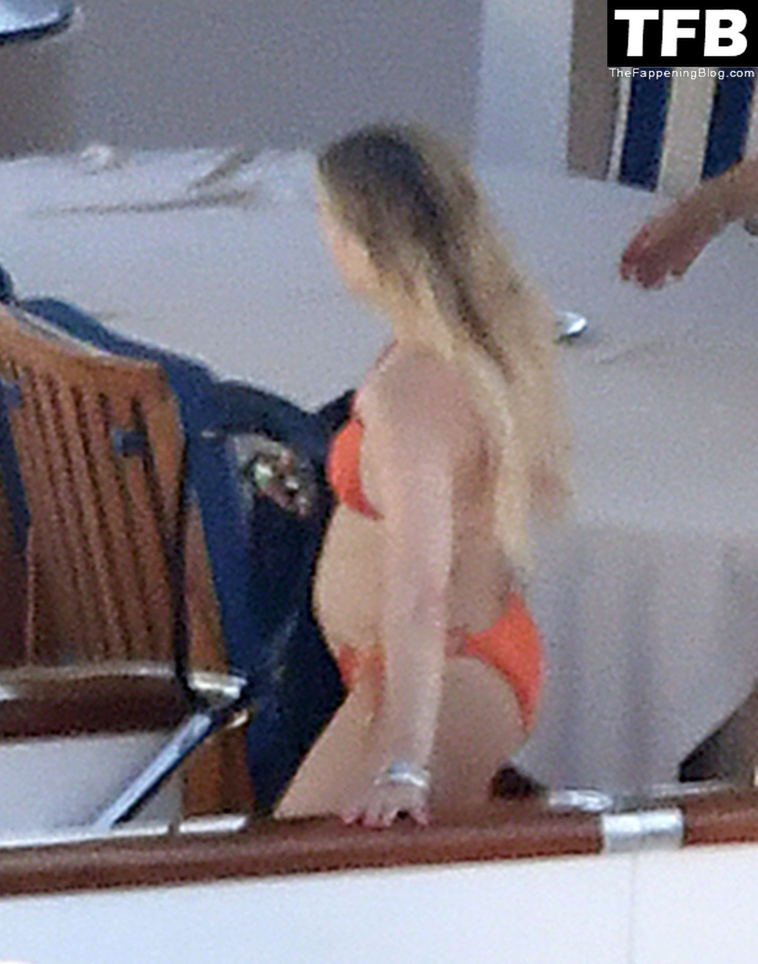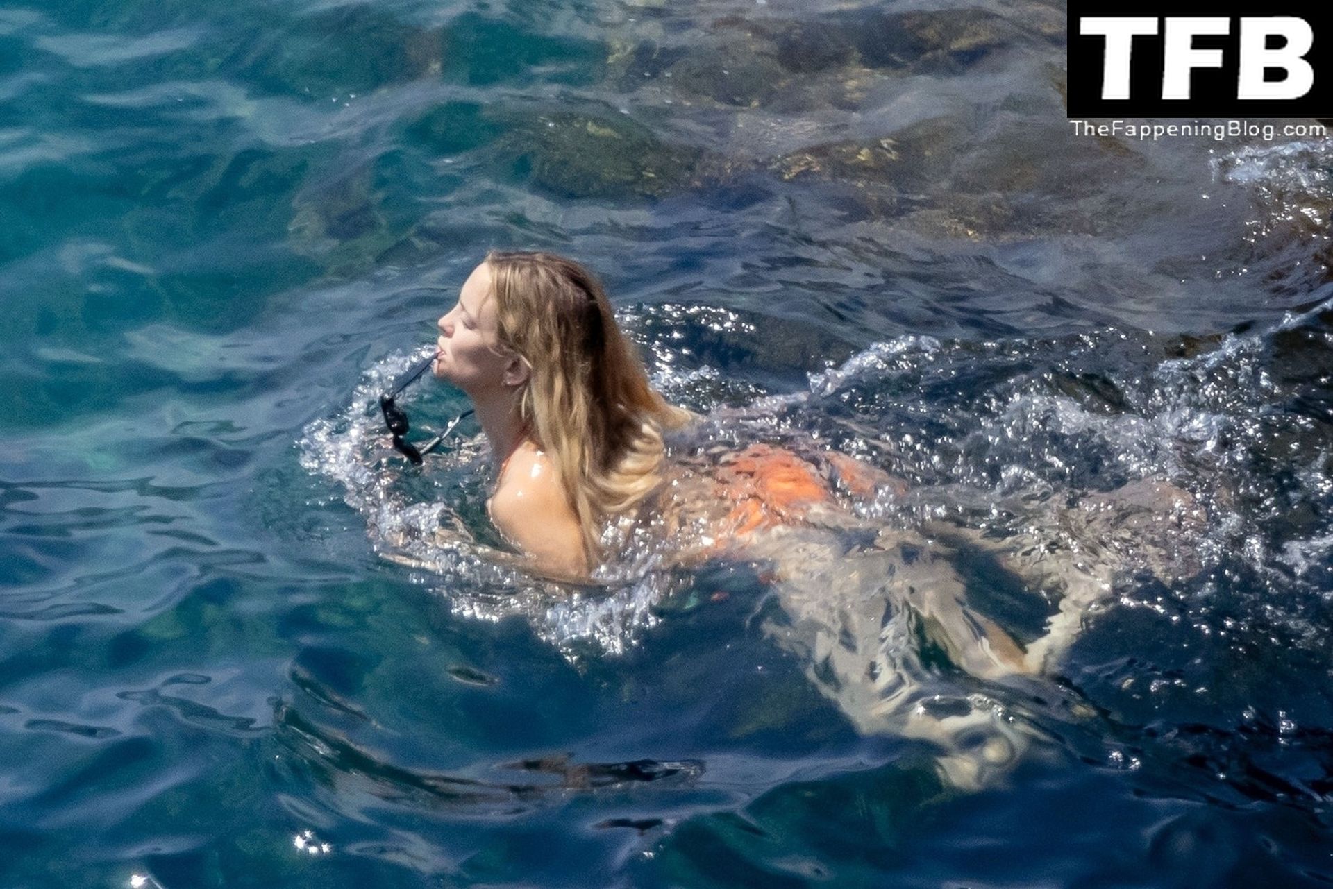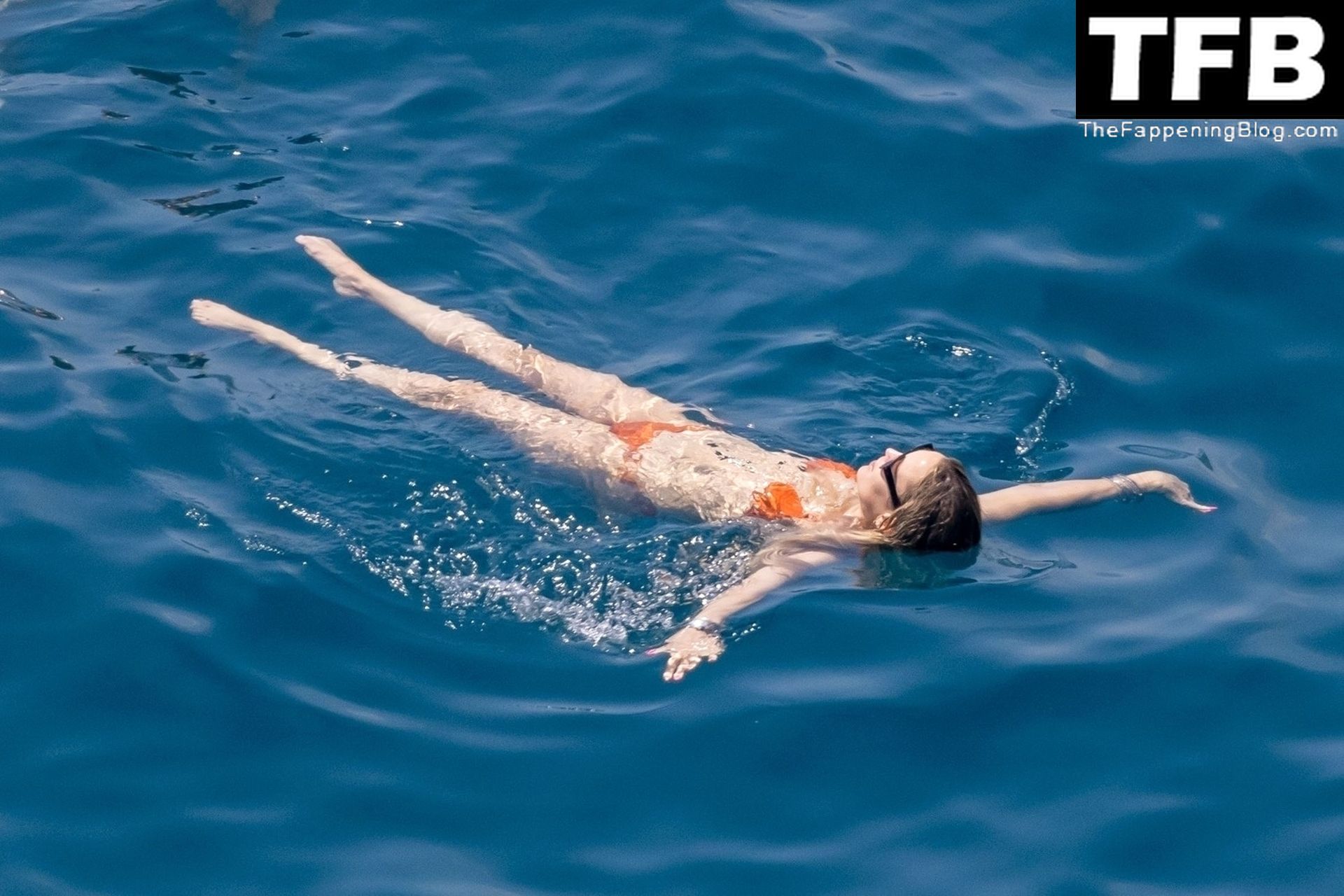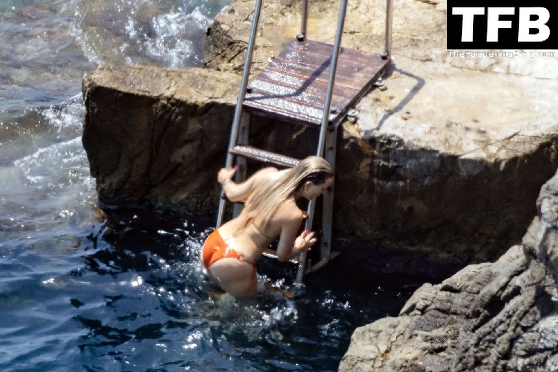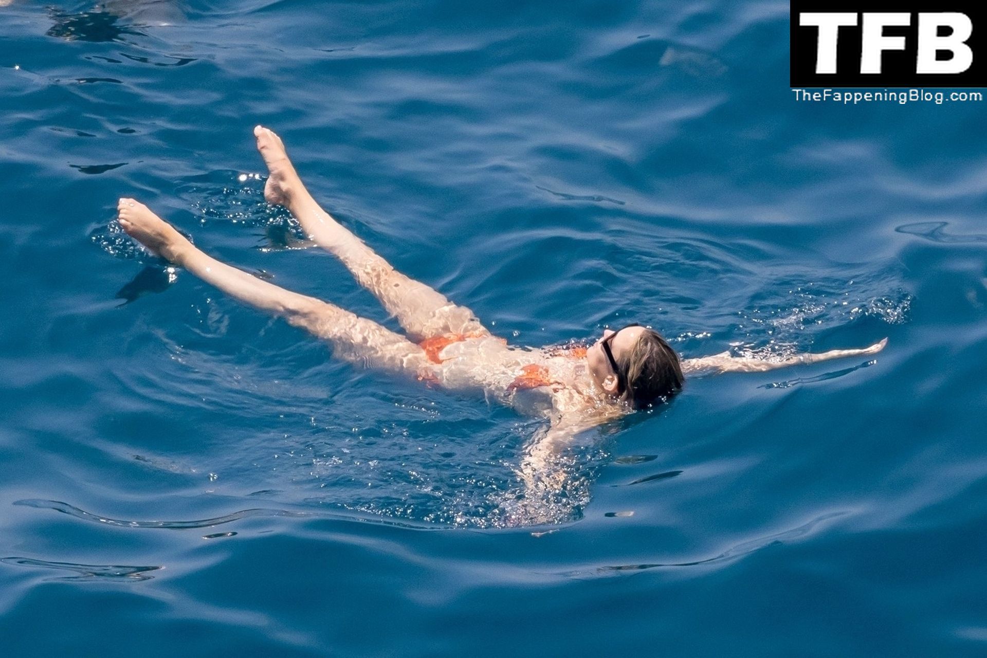 Bajo el sol abrasador de Positano, la actriz estadounidense Kate Hudson presume su impresionante figura en su bikini naranja durante su viaje familiar por Italia, 07/04/2022.