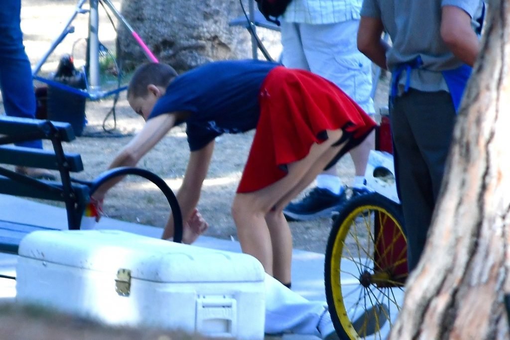 Kate Hudson sufrió un pequeño fallo de vestuario con su trasero visible al inclinarse demasiado durante la escena de “Sister” en Los Ángeles, 22/08/2017. Kate Hudson es una actriz estadounidense (Marshall). Edad: 38.