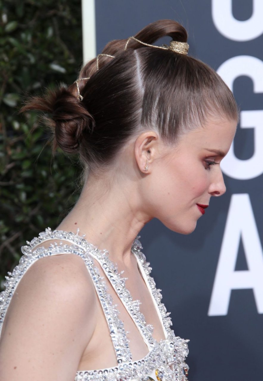 Su lenguaje corporal dice que se dio cuenta demasiado tarde de que el atuendo es un completo desastre y que parece la novia de Frankenstein, pero la limusina ya estaba tocando la bocina afuera.