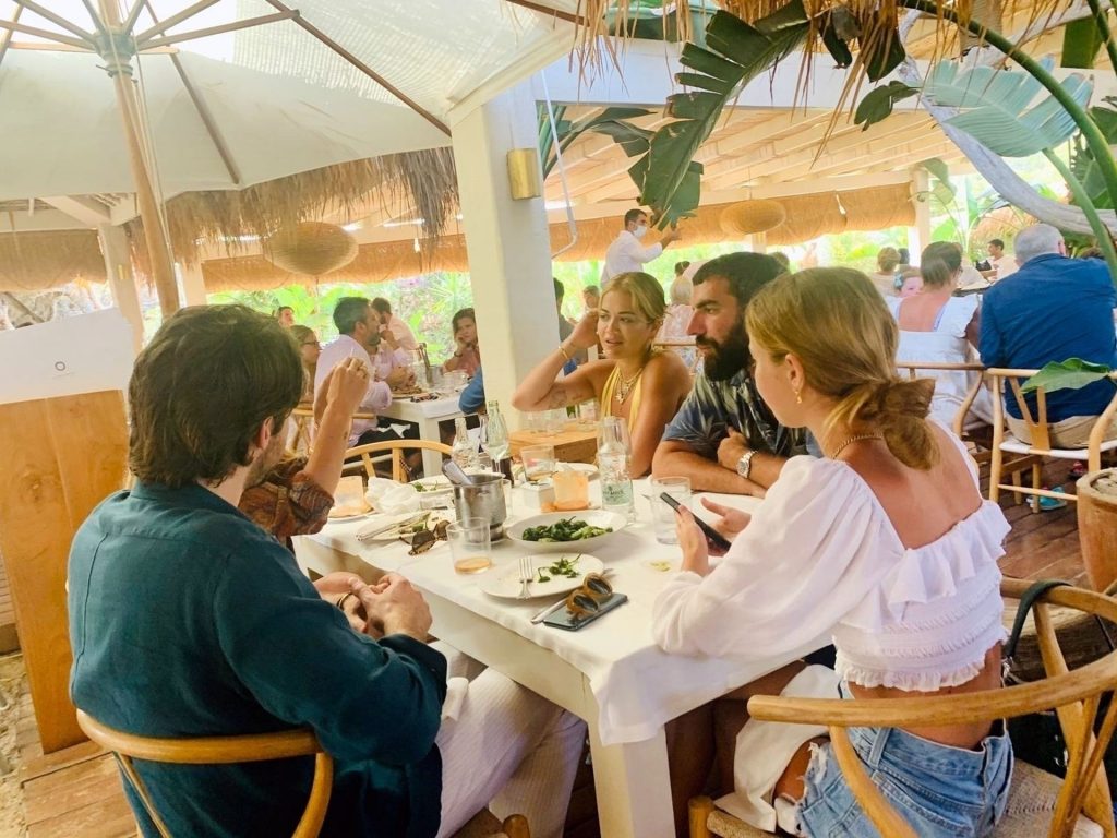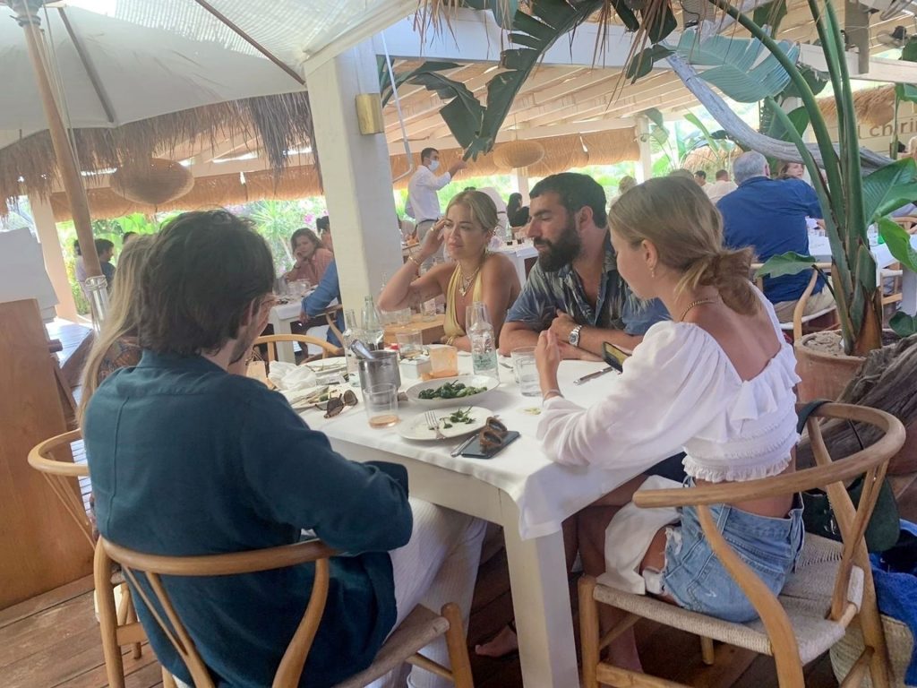 ¡El futbolista Érik Lamela también es visto cenando en el mismo lugar mientras sale del local sin camiseta!
