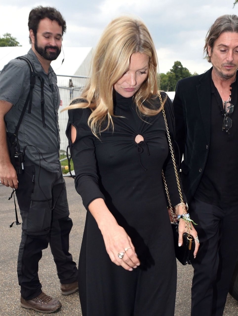 La modelo Kate Moss aparece sin sostén vista en el BST Hyde Park para la actuación de Barbara Streisand en Londres, 07/08/2019.