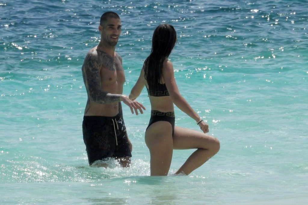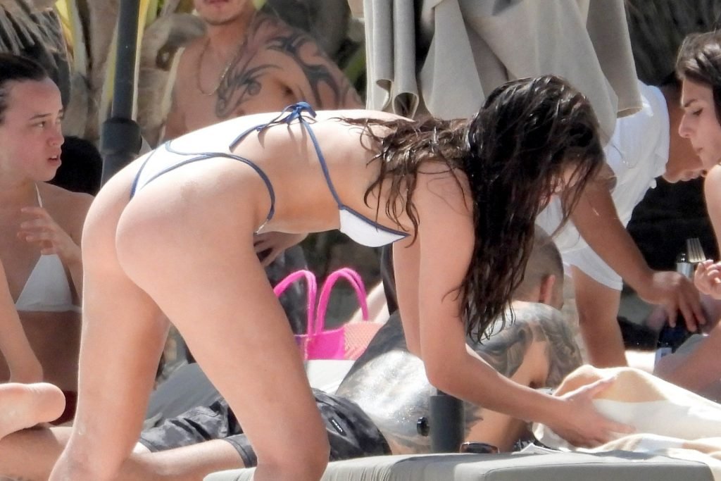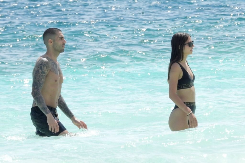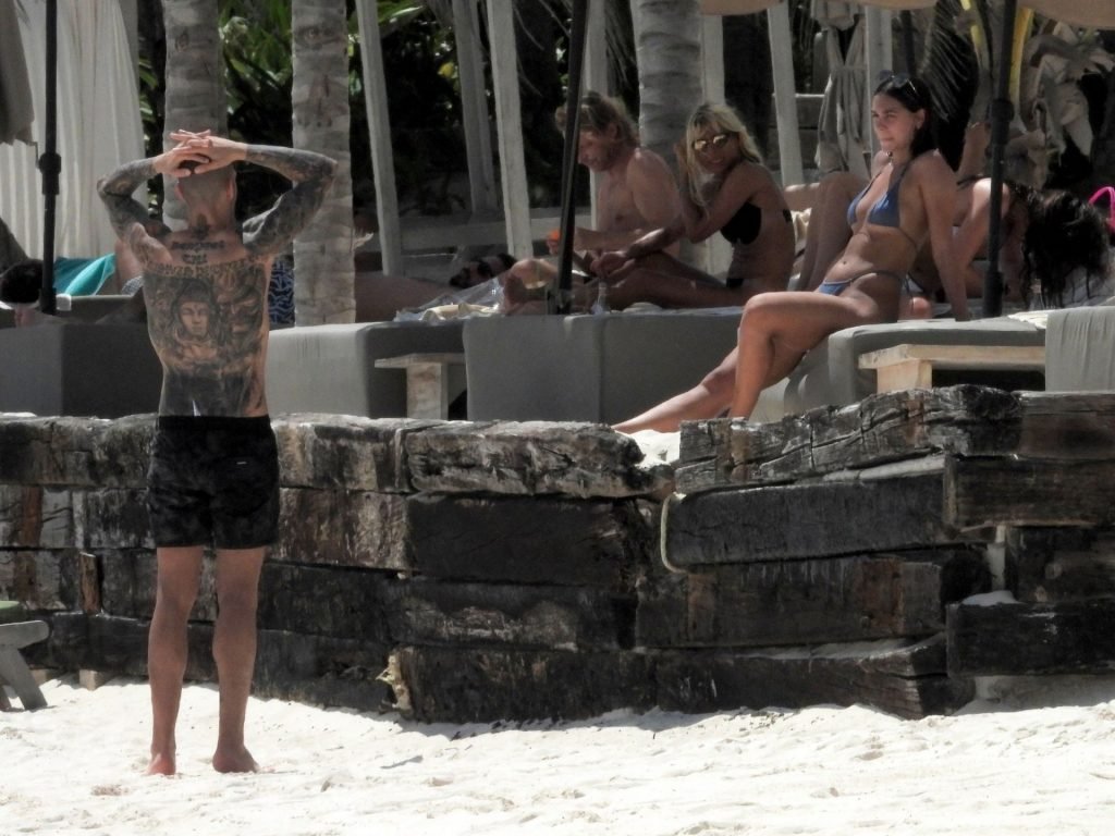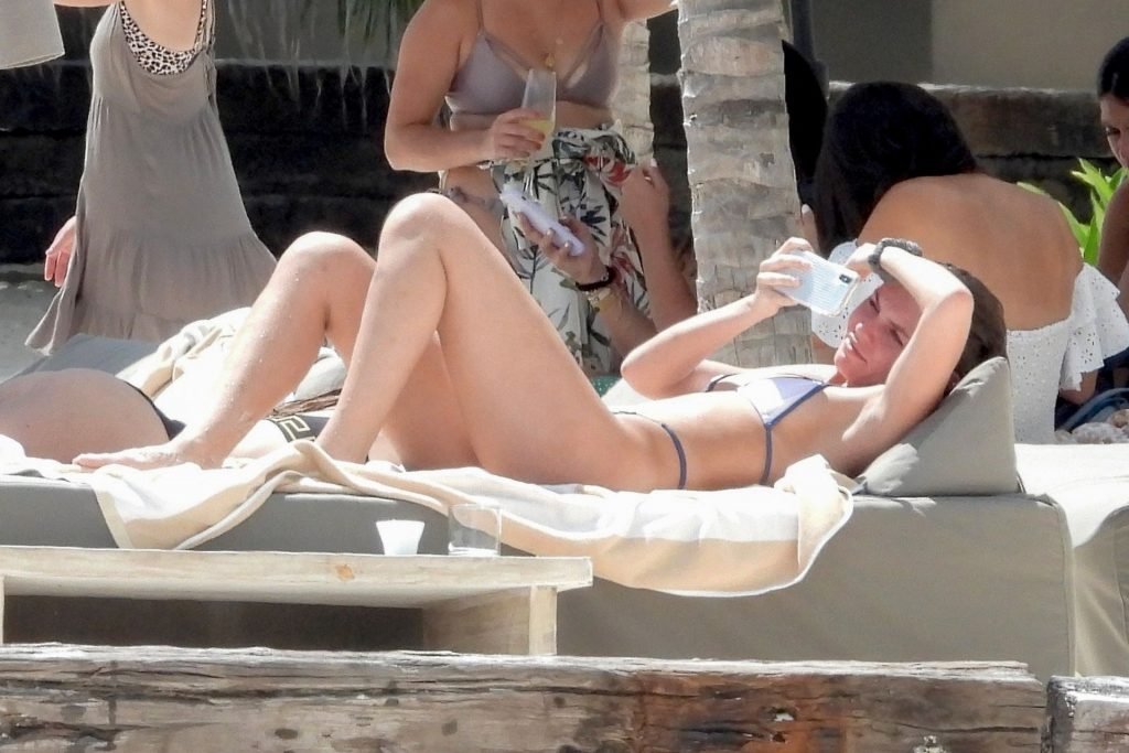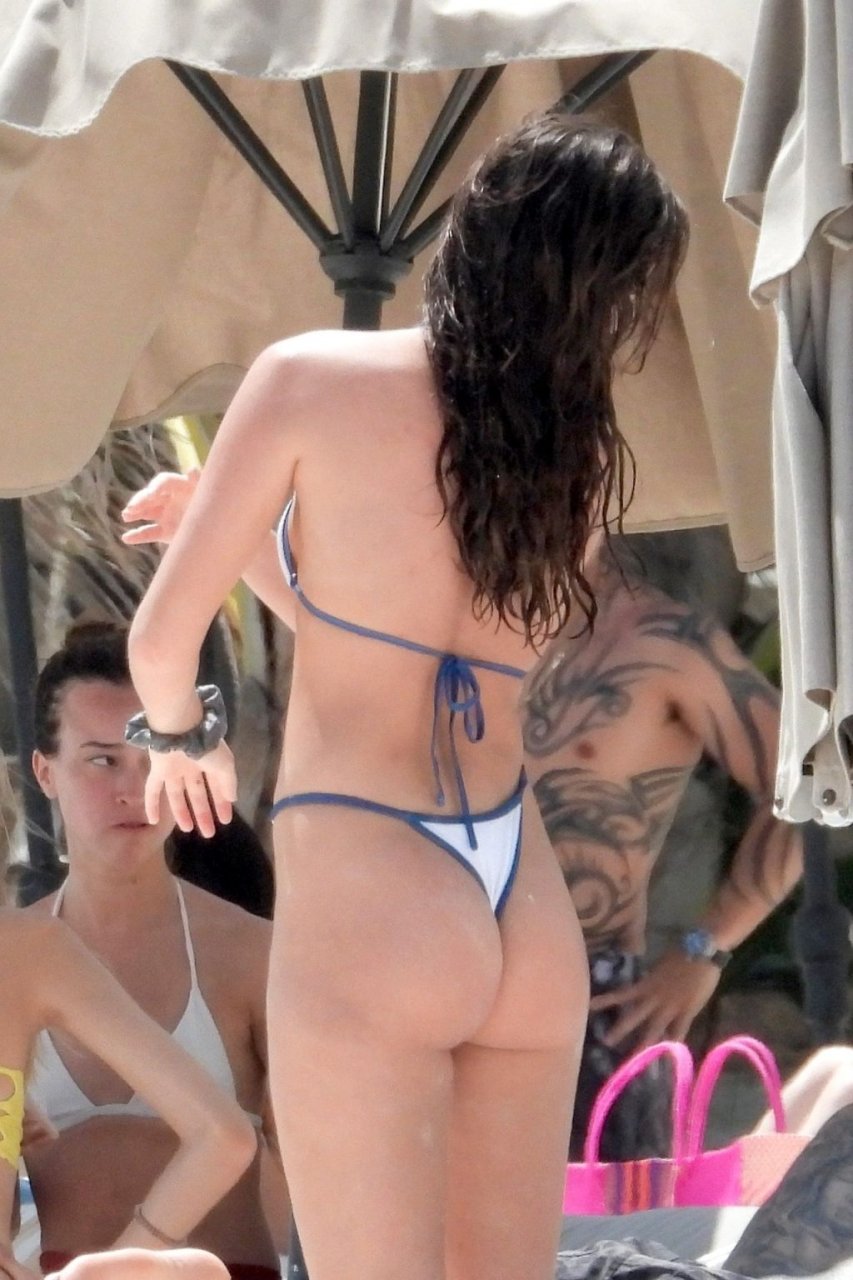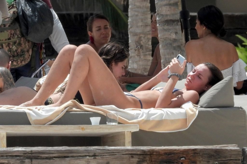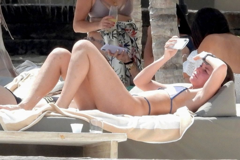 La modelo estadounidense Kateri Dion (21) muestra sus curvas mientras disfruta de un día en la playa con sus amigos Olivia Blais y Eli Michael Wehbe en Tulum, 10/05/2019.