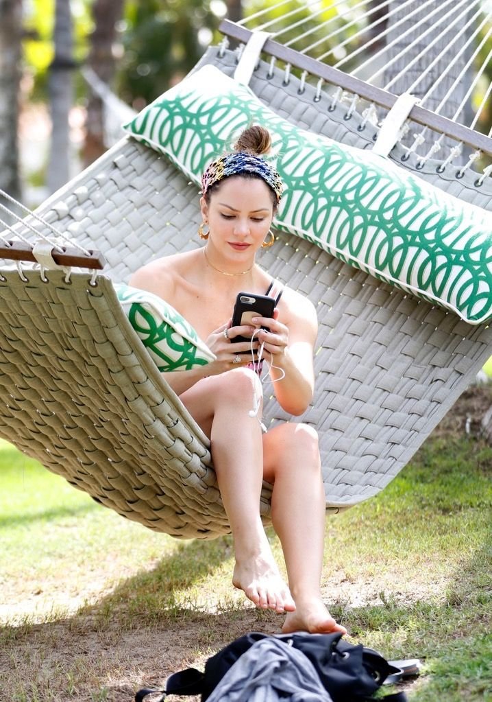 La actriz Katharine McPhee deslumbra con un traje de baño de una pieza mientras toma unas breves vacaciones en Hawái, 18/01/2018.
