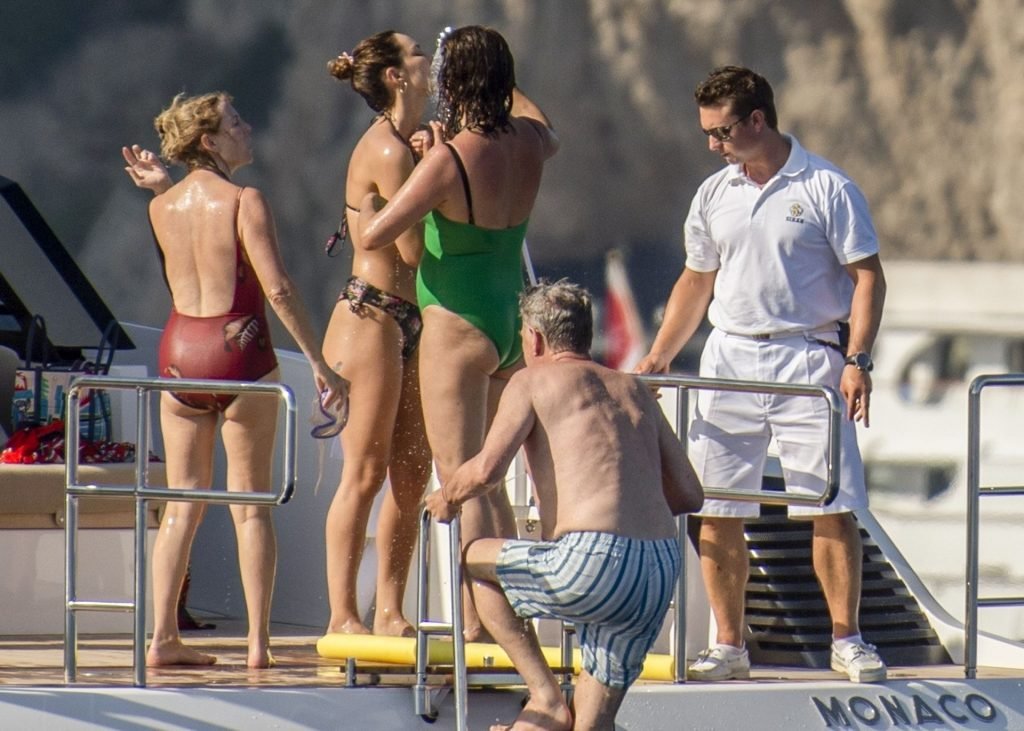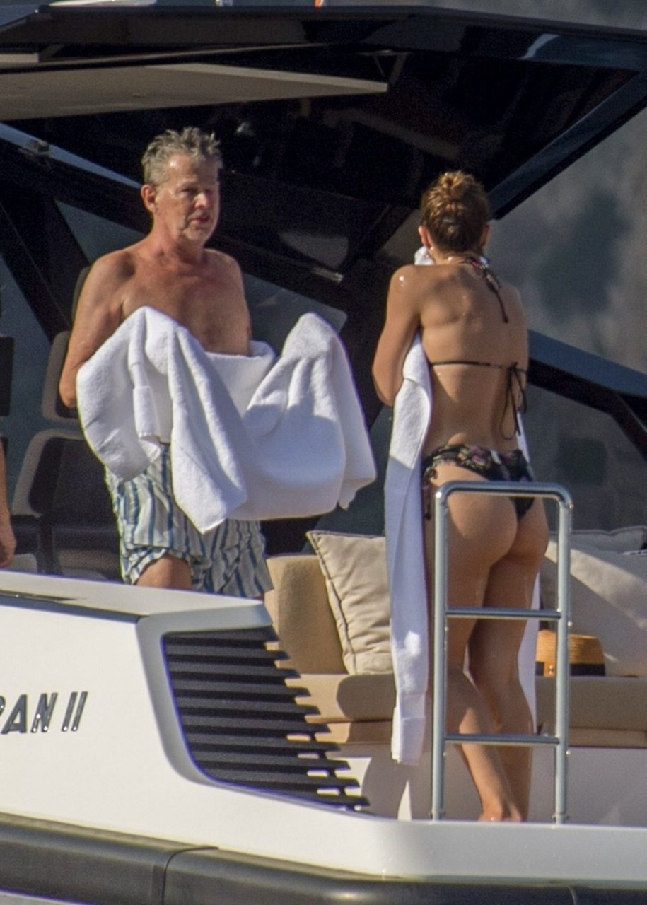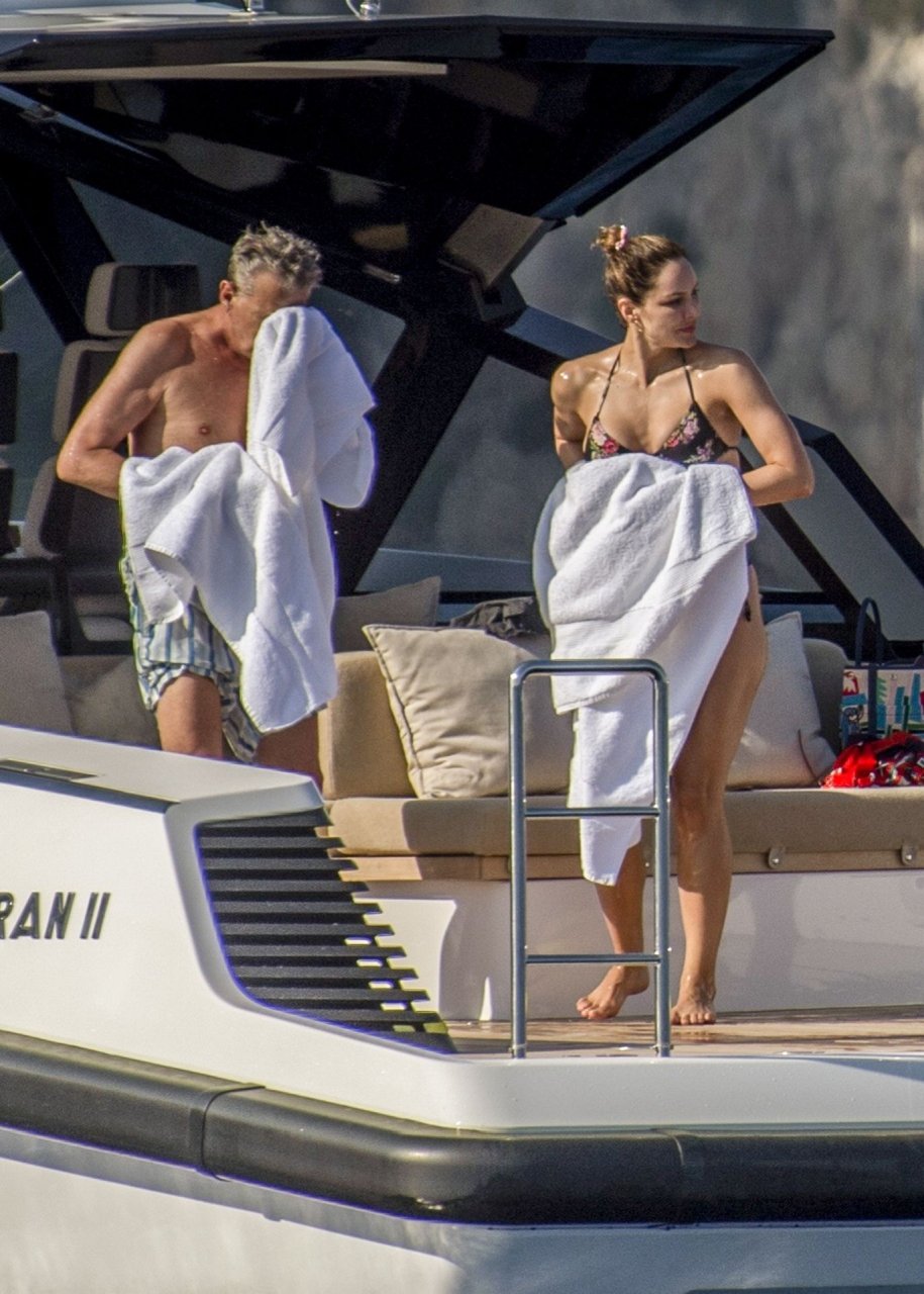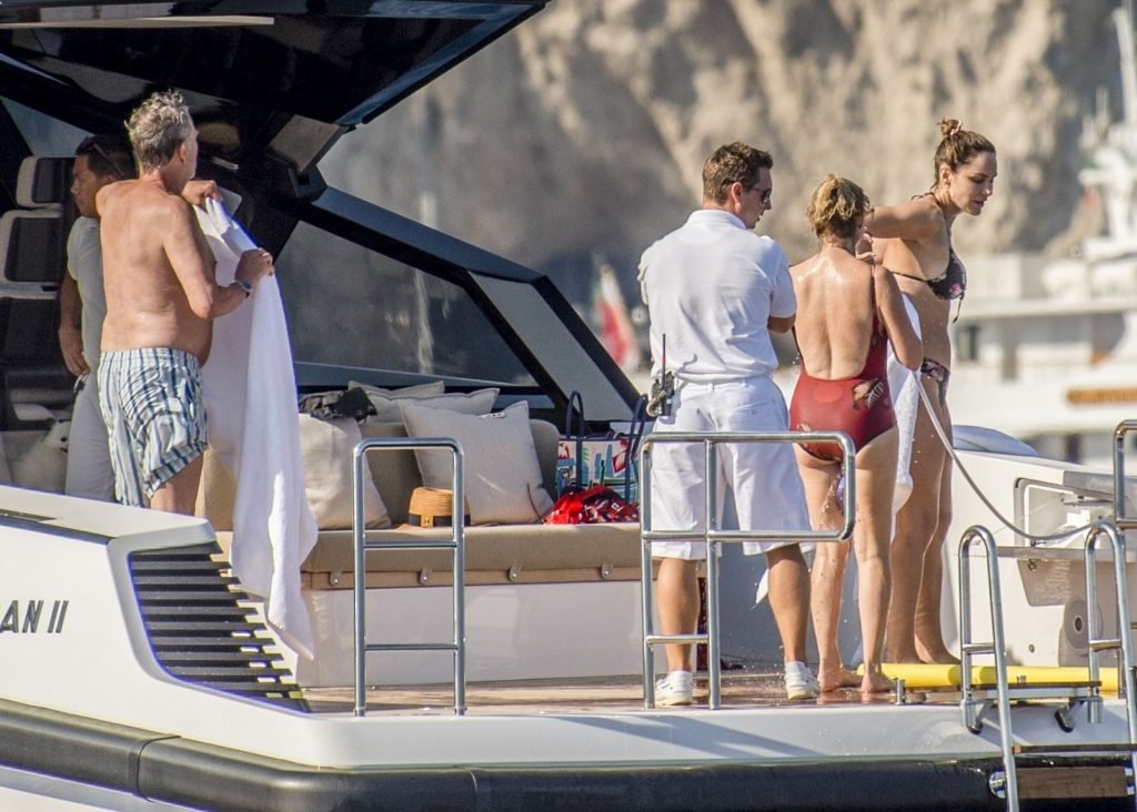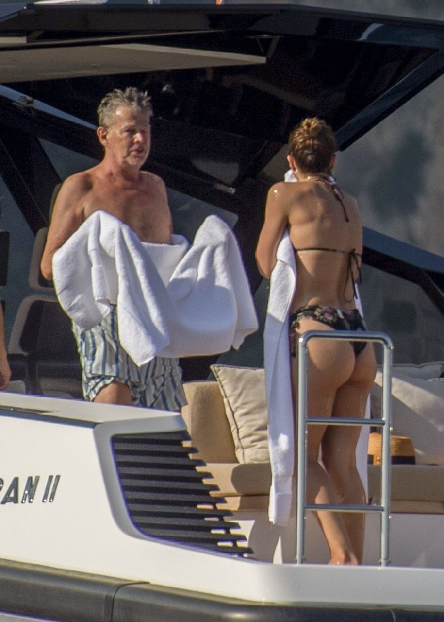 Recién casados Katharine McPhee y David Foster se dan un chapuzón en el océano mientras se relajan en su yate durante su luna de miel en Capri, 03/07/2019.