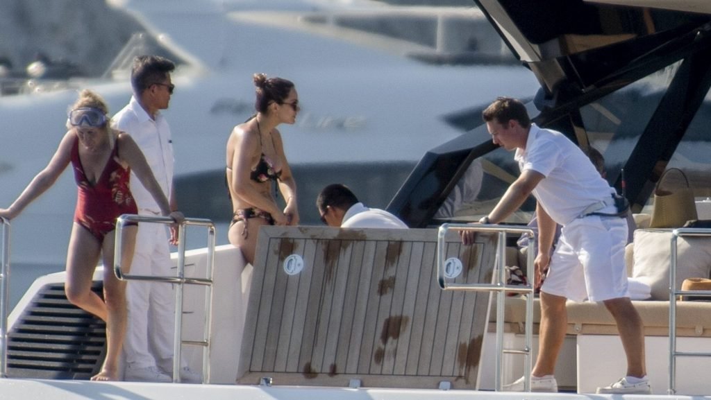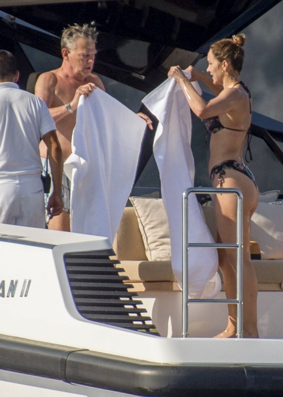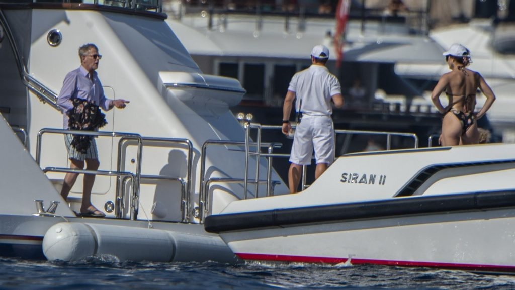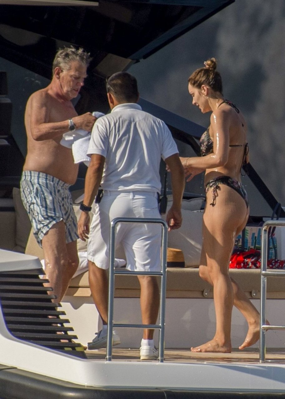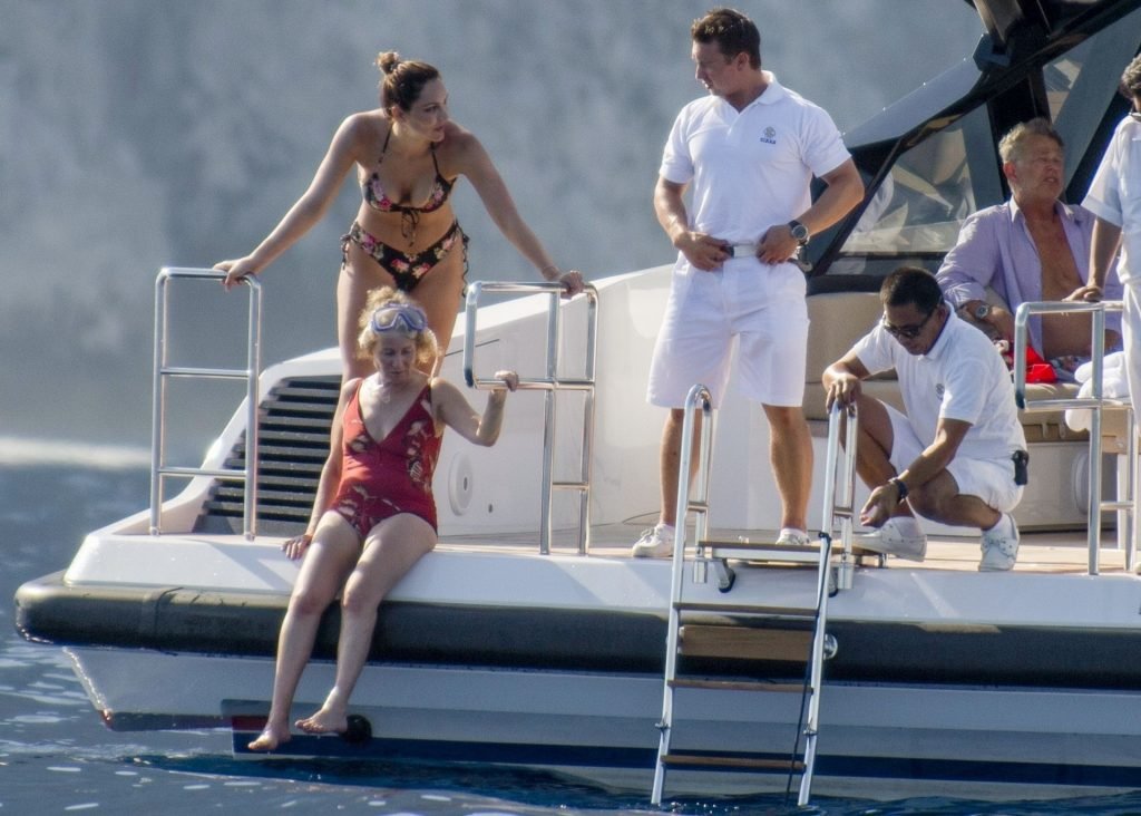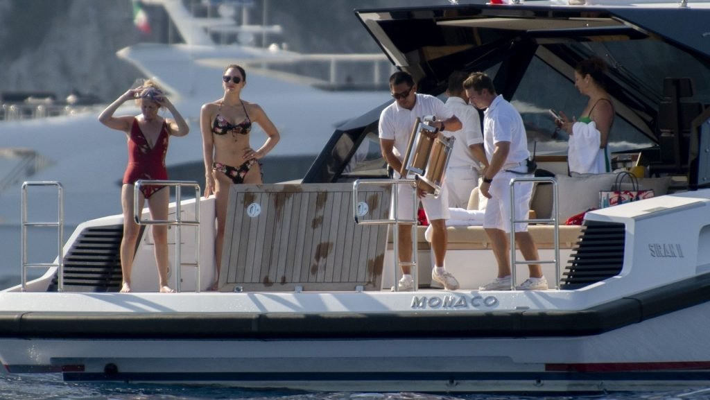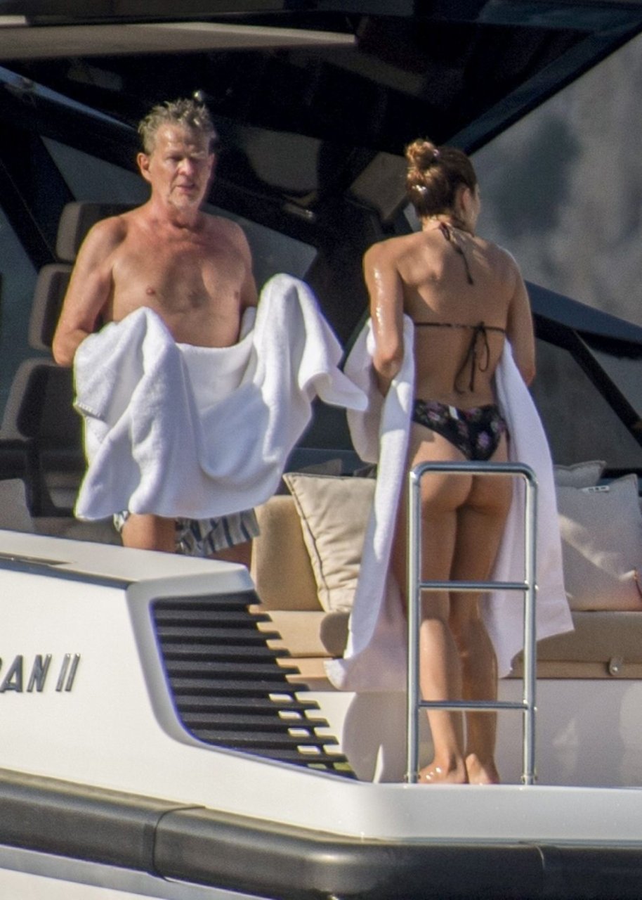 Recién casados Katharine McPhee y David Foster se dan un chapuzón en el océano mientras se relajan en su yate durante su luna de miel en Capri, 03/07/2019.