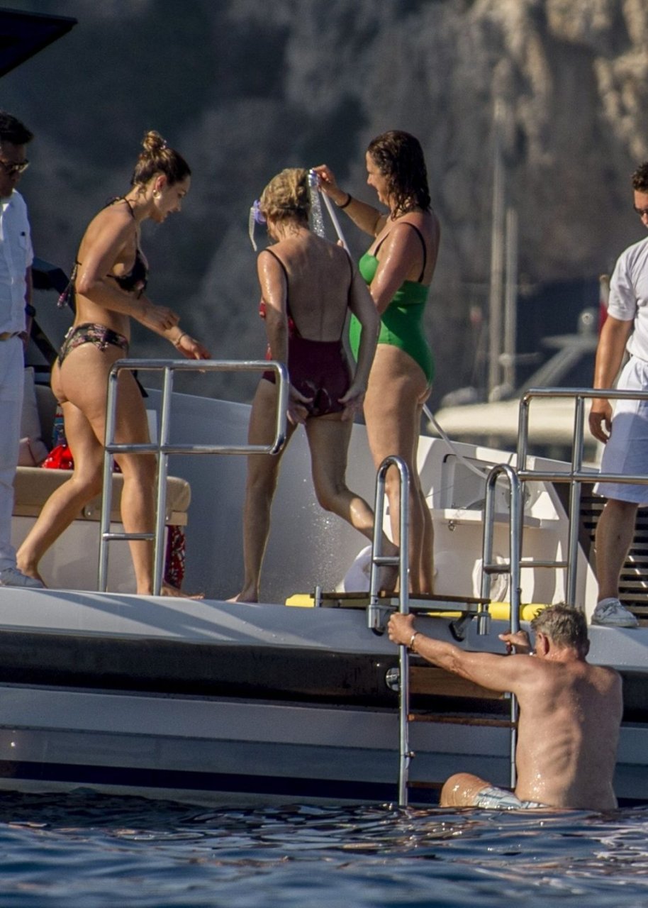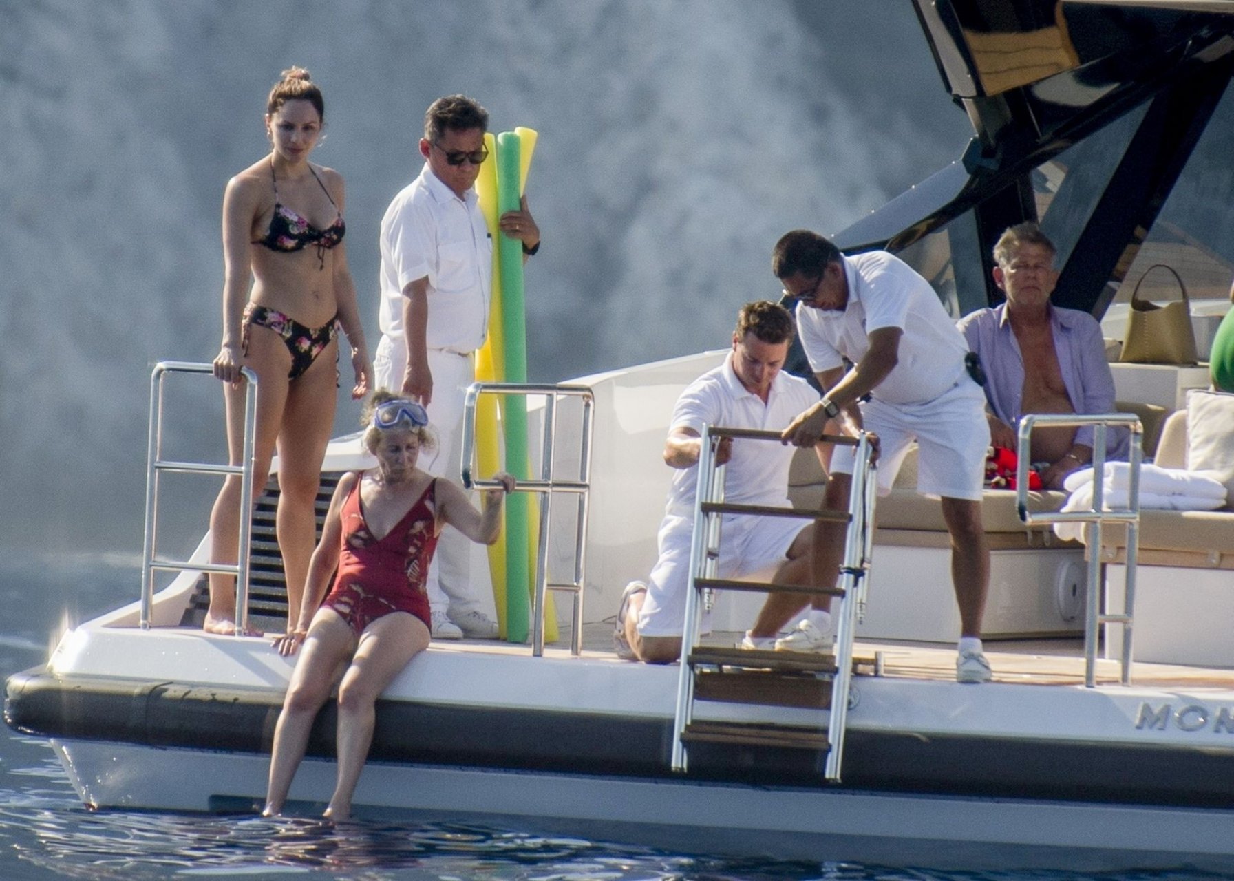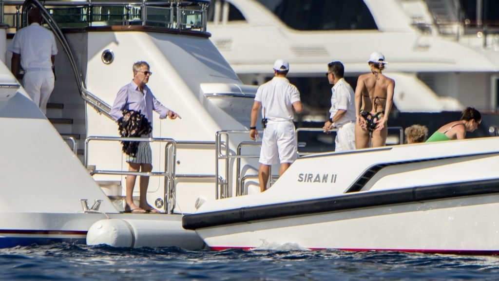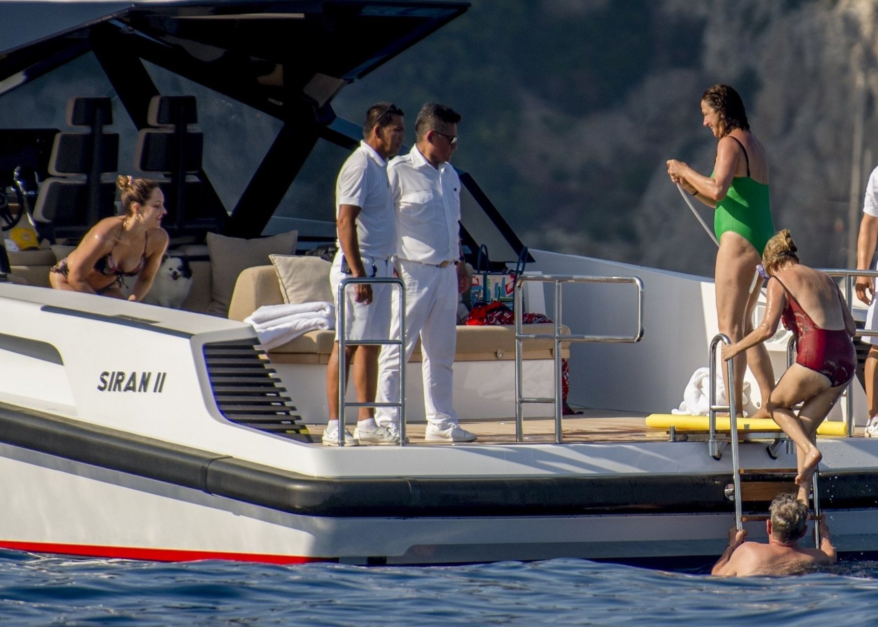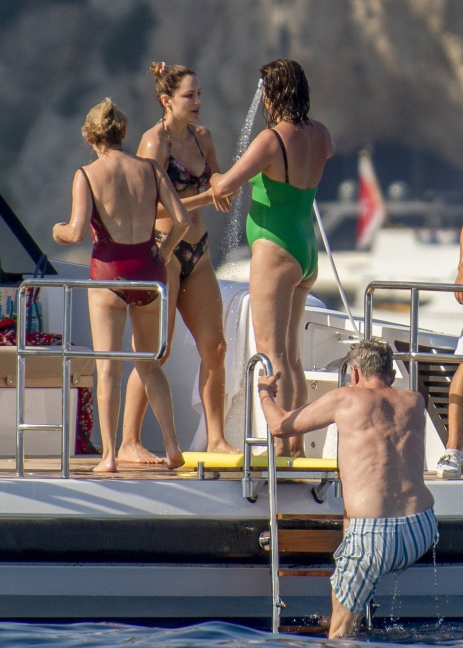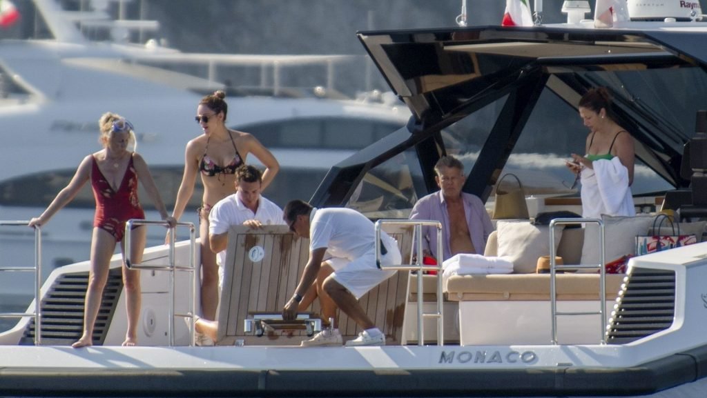 Recién casados Katharine McPhee y David Foster se dan un chapuzón en el océano mientras se relajan en su yate durante su luna de miel en Capri, 03/07/2019.