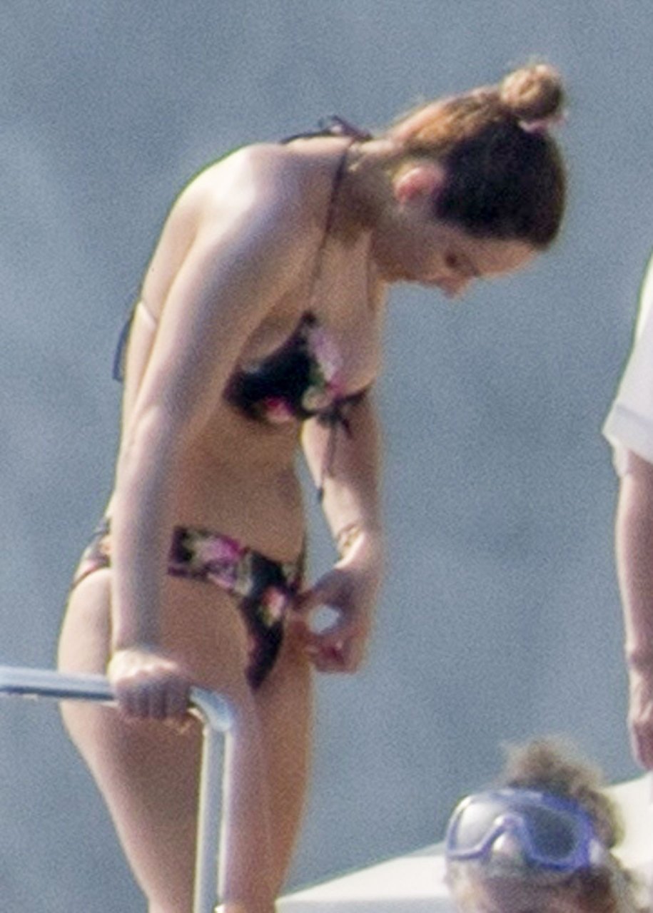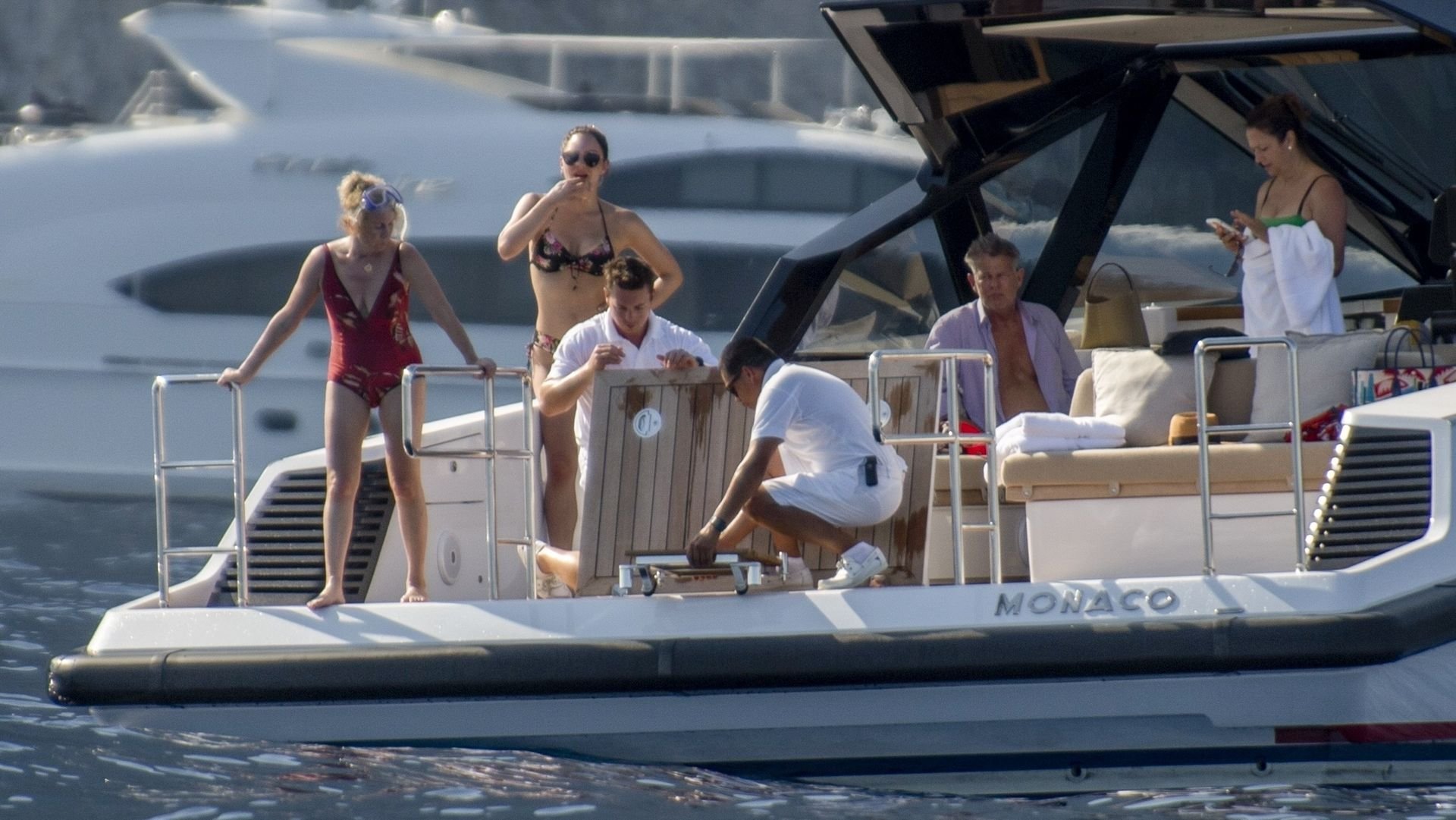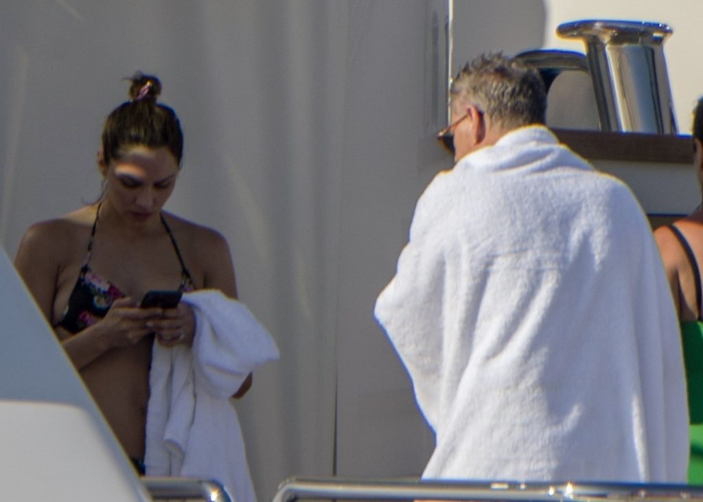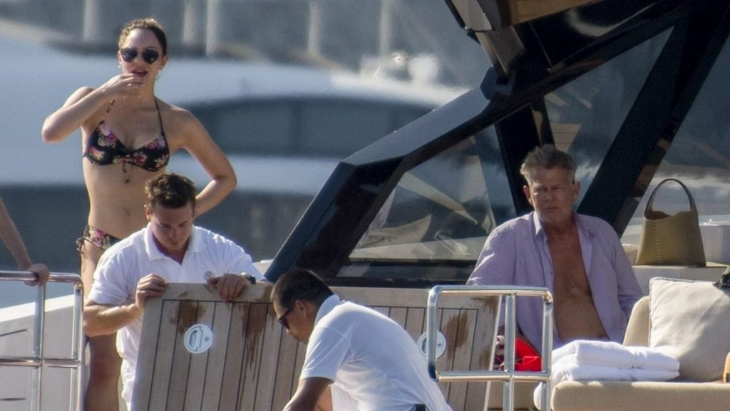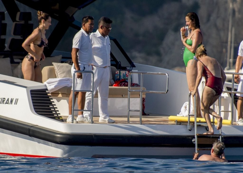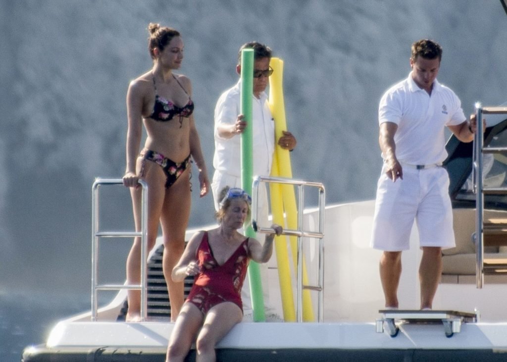 Recién casados Katharine McPhee y David Foster se dan un chapuzón en el océano mientras se relajan en su yate durante su luna de miel en Capri, 03/07/2019.