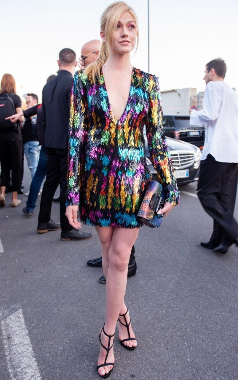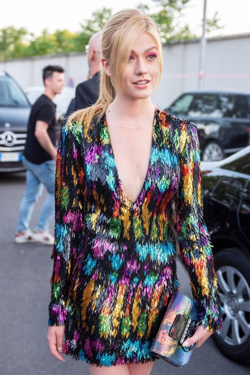 Katherine McNamara, de largas piernas, fue vista llegando al desfile de moda masculina Primavera/Verano 2020 de DSquared2 durante la Semana de la Moda de Milán, luciendo un look completo de Dsquared – Milán, Italia, 16/06/2019.