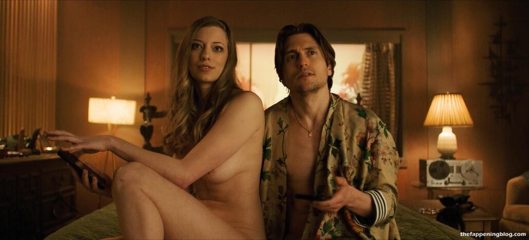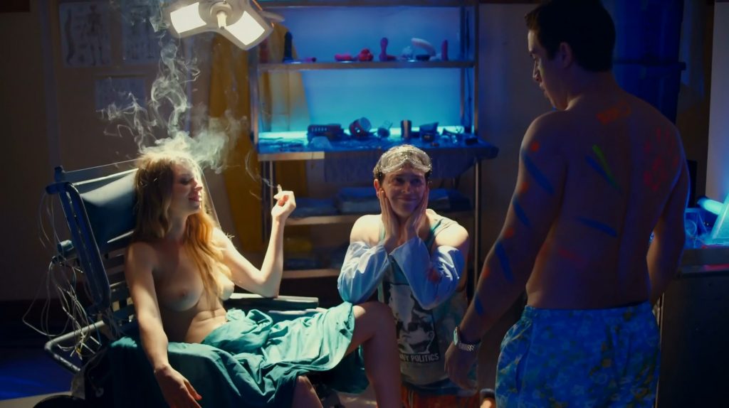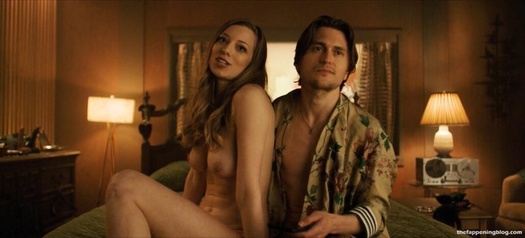 Katie Buitendyk está sentada desnuda junto a un hombre al pie de una cama, el hombre habla con otra persona que los observa a través de una ventana. El hombre en la cama luego se levanta y se va y Katie se queda atrás, mostrando más de sus pechos antes de abrazar sus rodillas al pecho mientras habla con el hombre en la ventana.