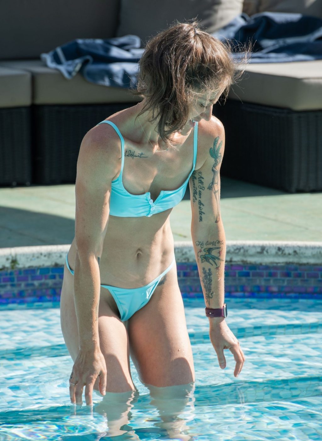 La estrella de reality y cantante Katie Waissel se la ve disfrutando un tiempo junto a la piscina en Italia, donde actualmente está de vacaciones, 09/10/2020. Katie lleva un diminuto bikini azul mientras muestra su cuerpo sorprendentemente tonificado.