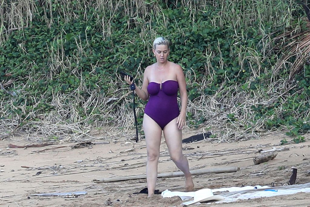 Katy Perry, 36, muestra su figura esbelta post-embarazo mientras vacaciona en Hawái con su prometido.