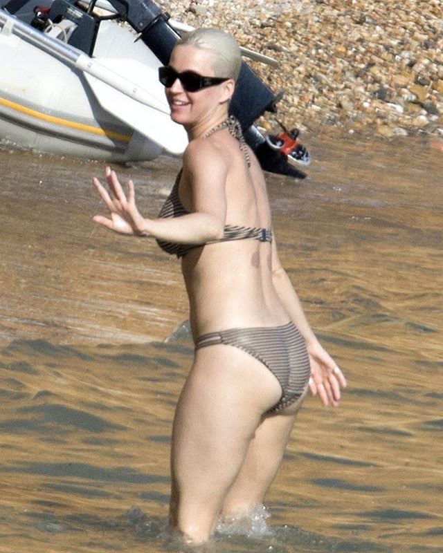 Katy Perry muestra su sexy cuerpo en bikini en la playa de Ibiza, 27/06/2018. La cantante de 33 años, que actualmente está de gira por España, se tomó un tiempo para disfrutar del sol y la diversión en la playa.
