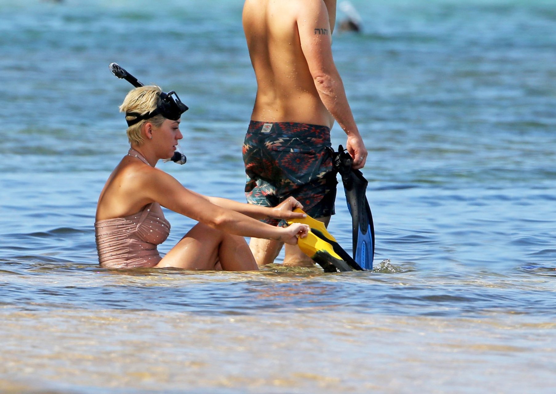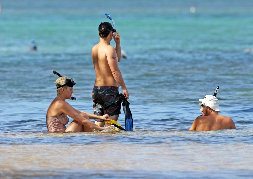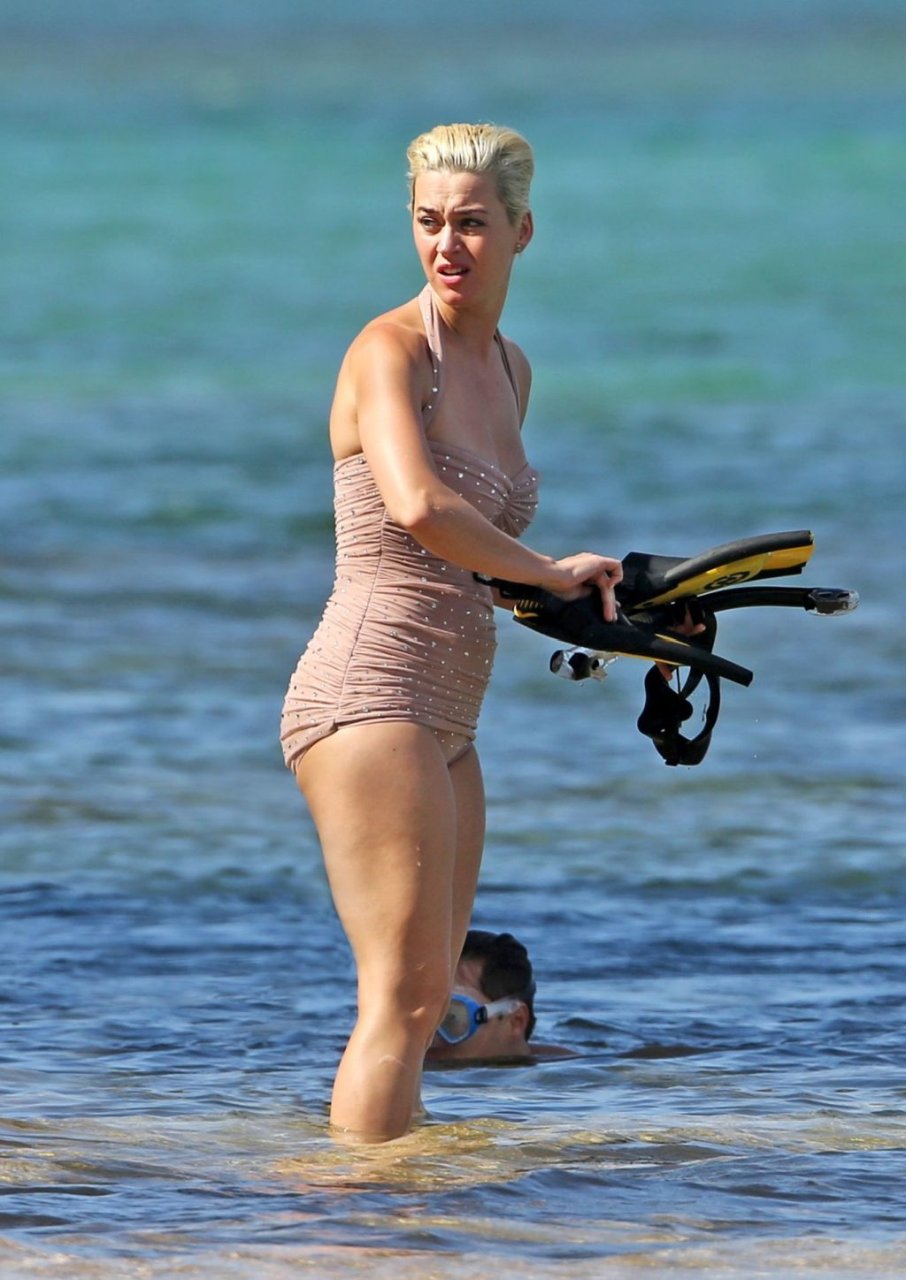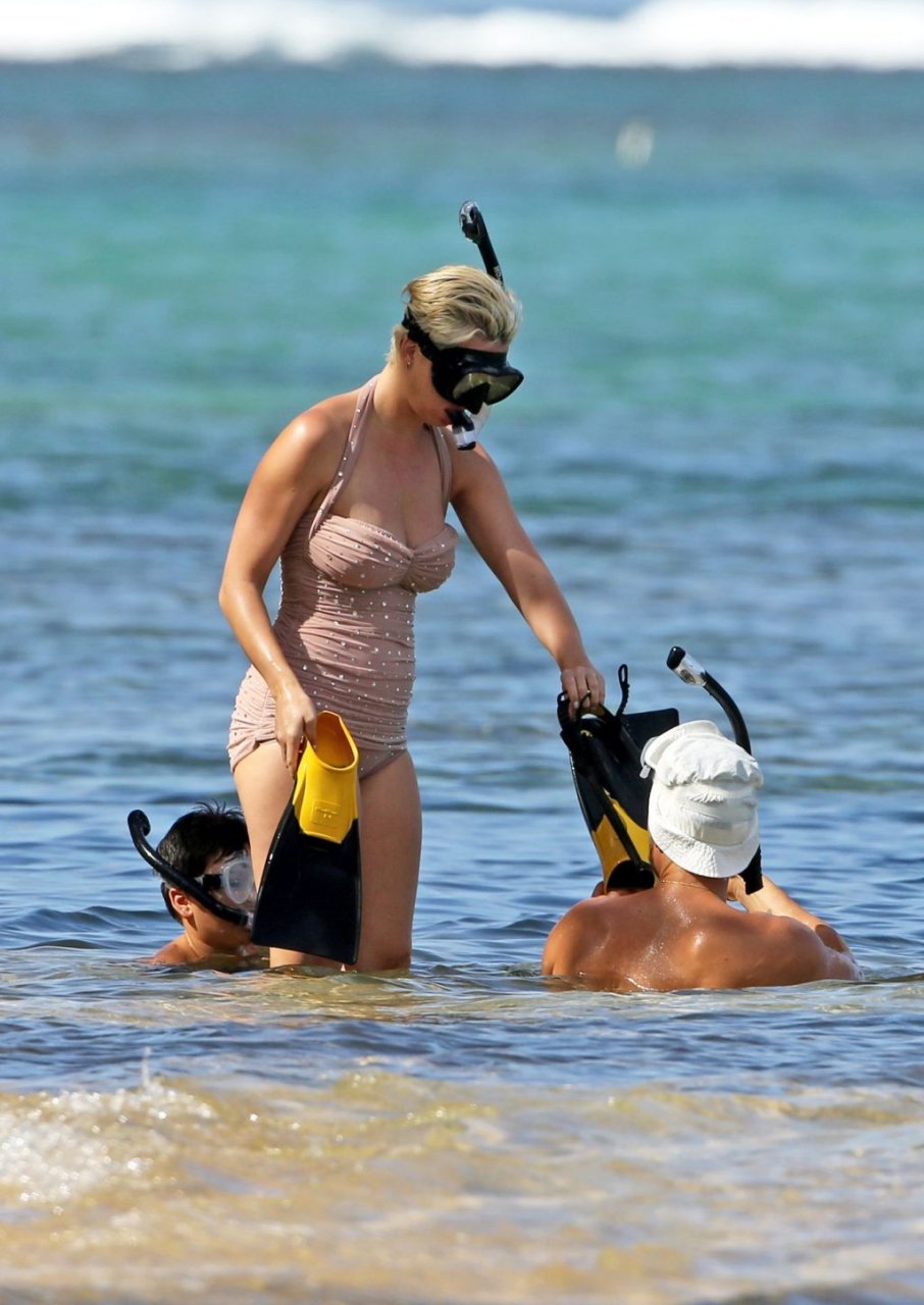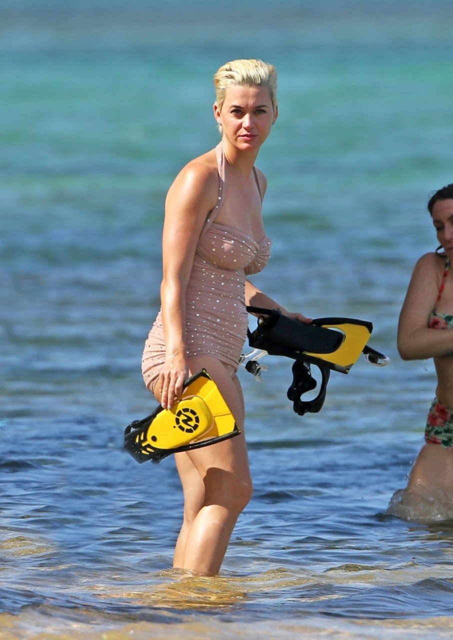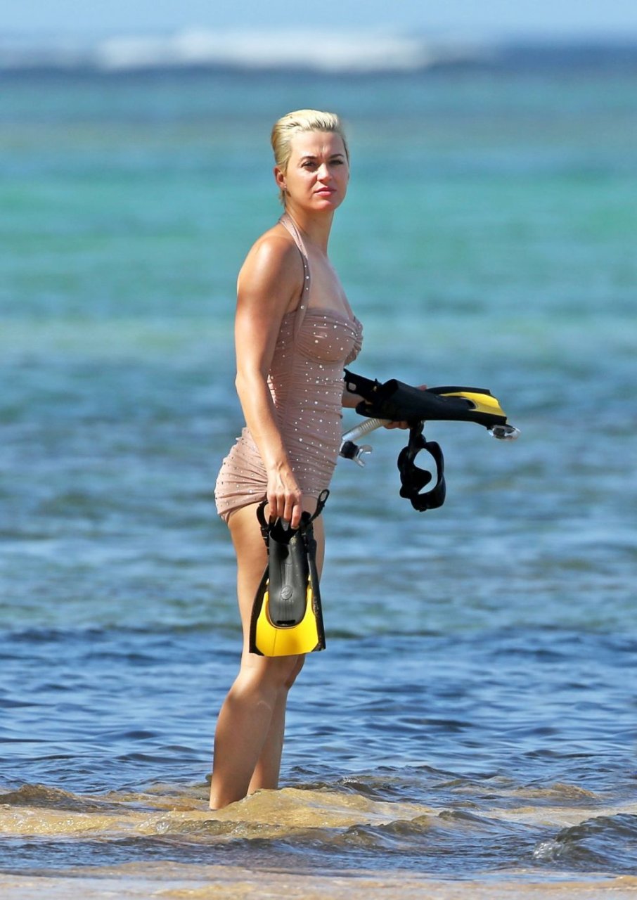 Katy Perry (34) y Orlando Bloom hacen esnórquel en Hawái durante las vacaciones de Navidad, 24/12/2018. Katy lucía genial con un traje de baño de una pieza color rosa pálido con pedrería mientras Orlando nadaba alrededor de sus pies en el cálido océano.