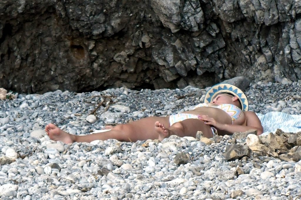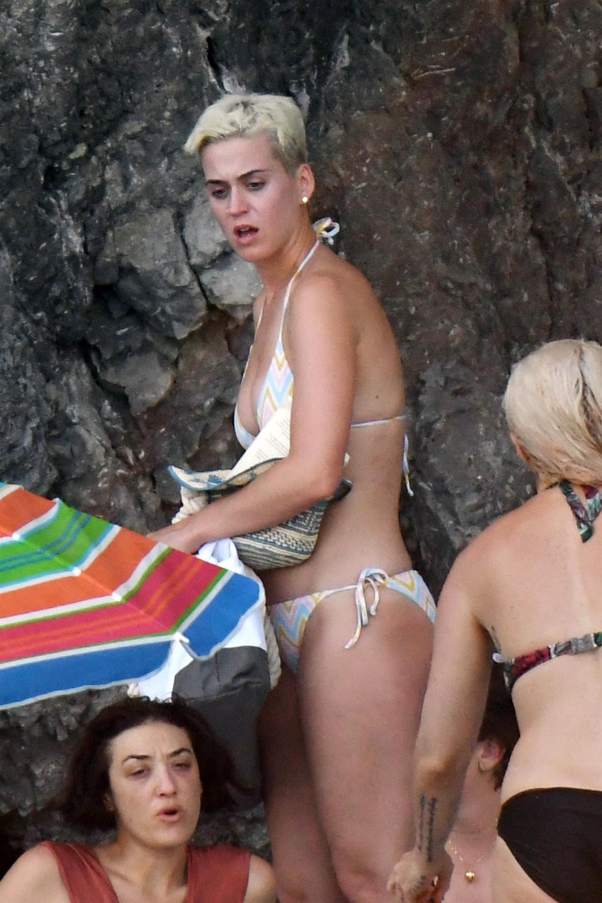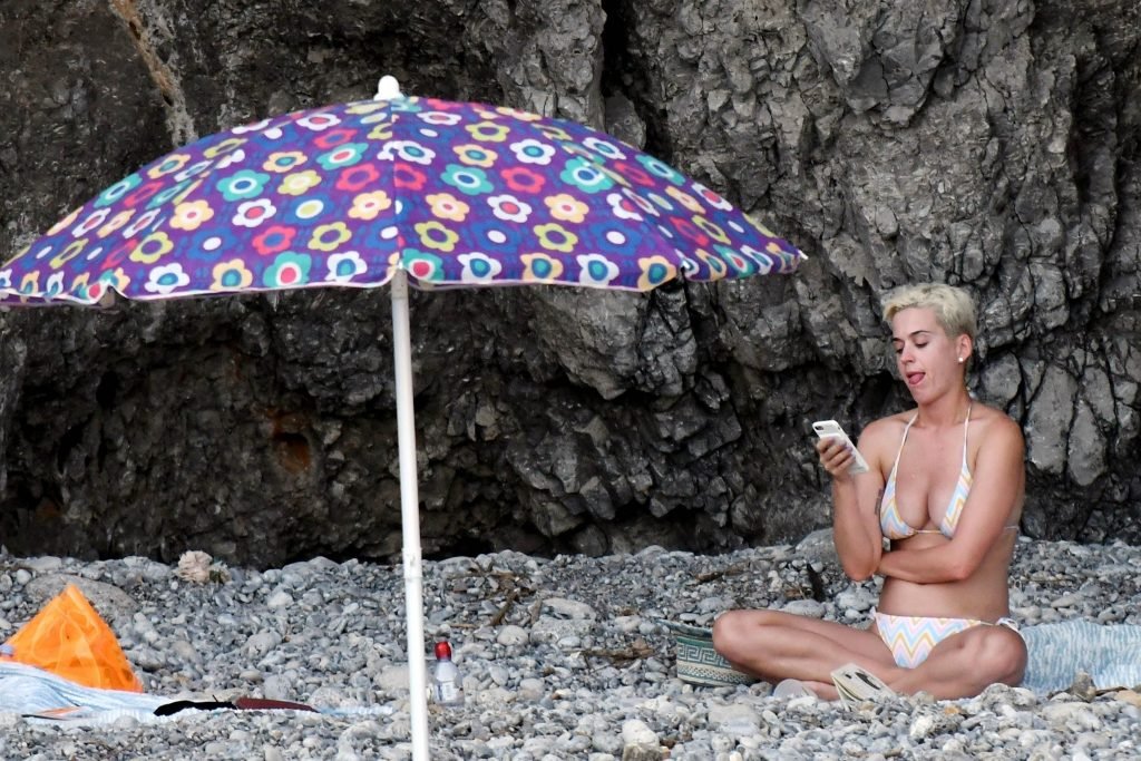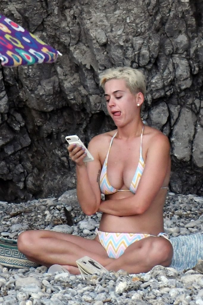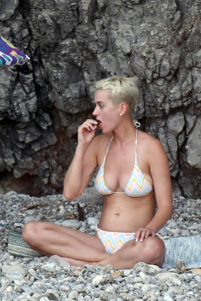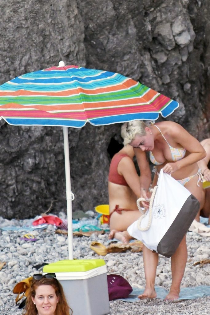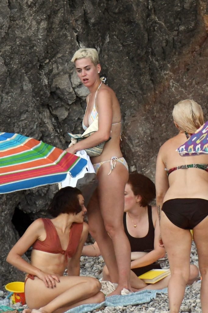 La cantante estadounidense de 32 años Katy Perry disfruta de sus vacaciones en la playa en Amalfi, Italia, 14/07/2017.
