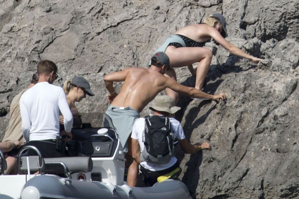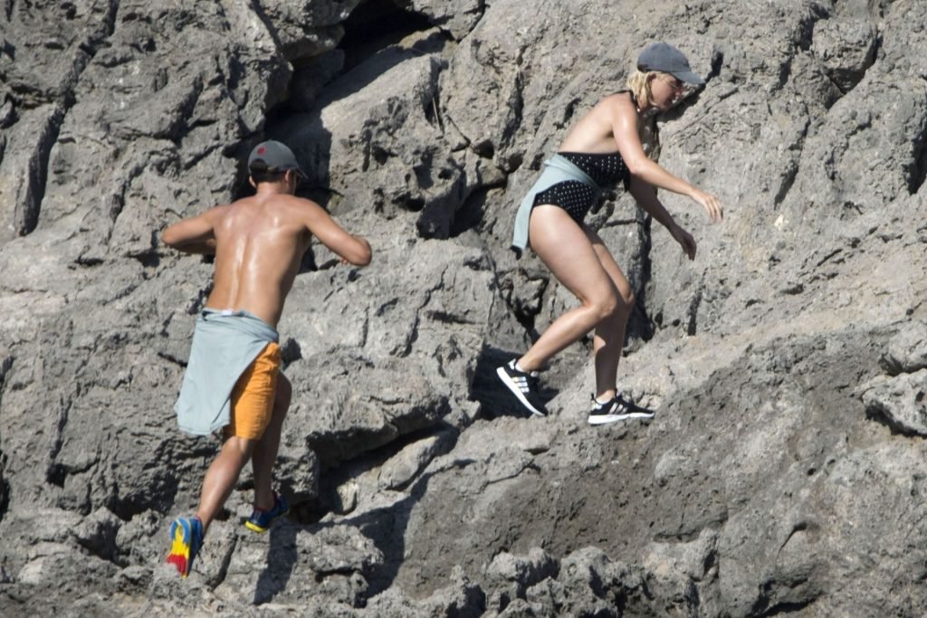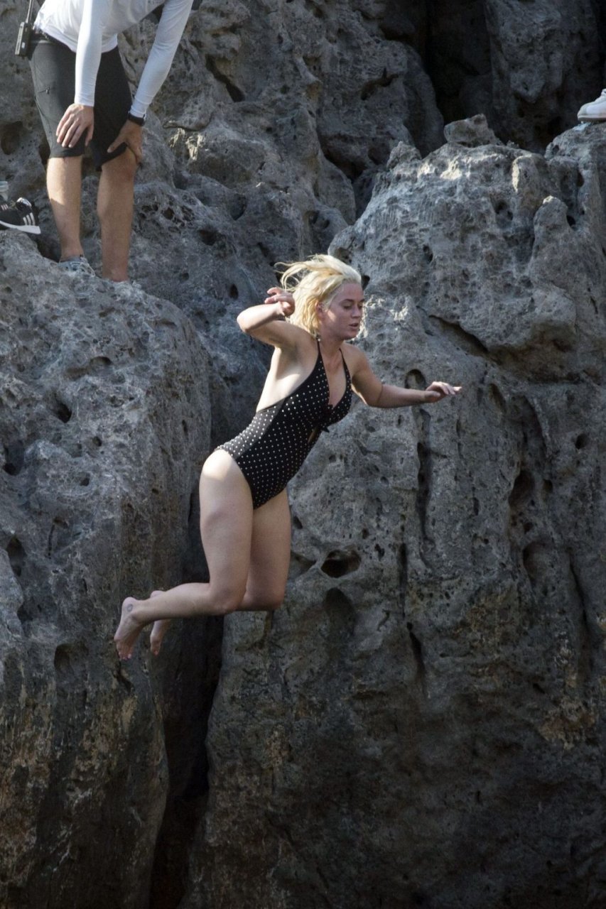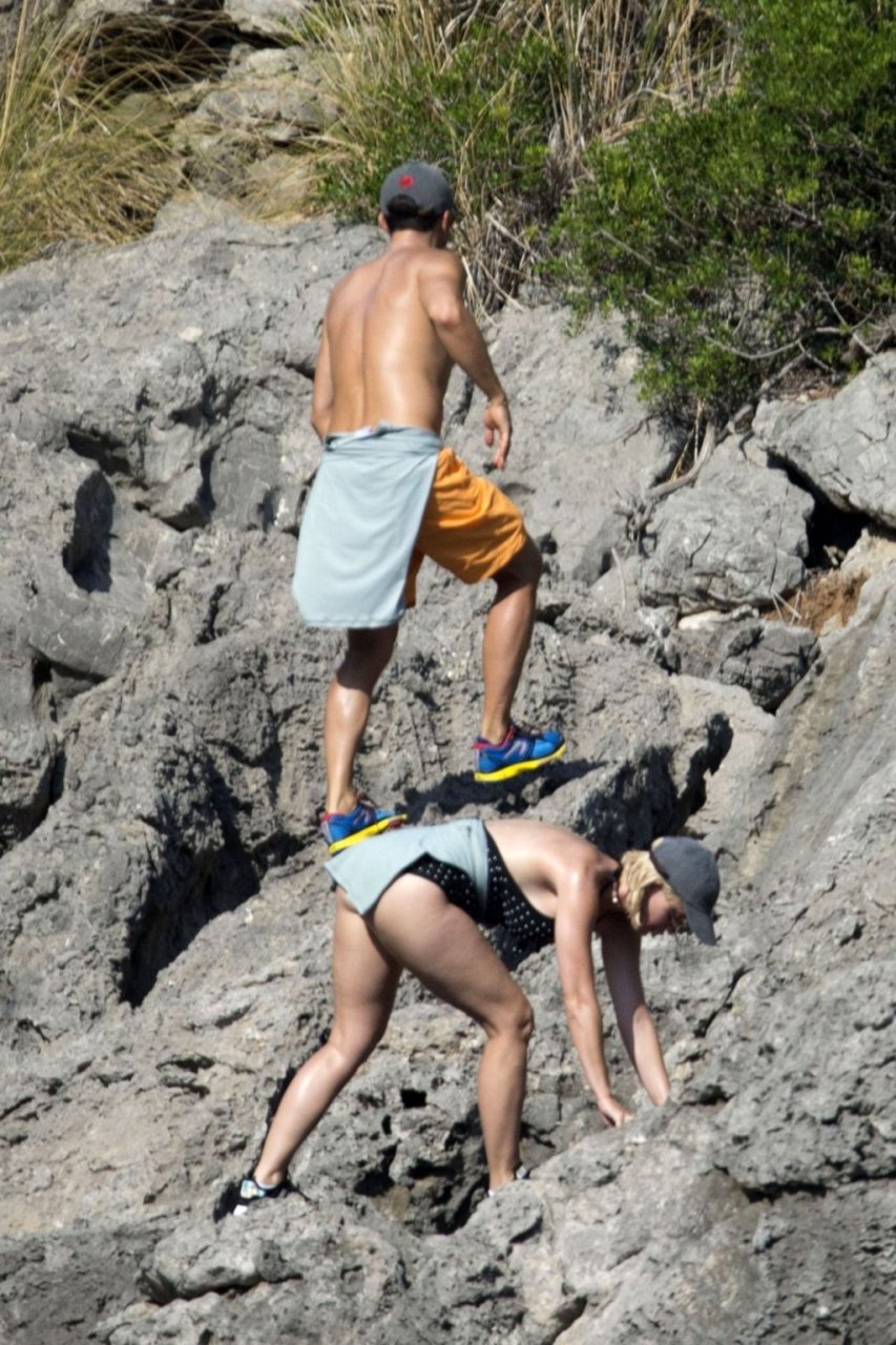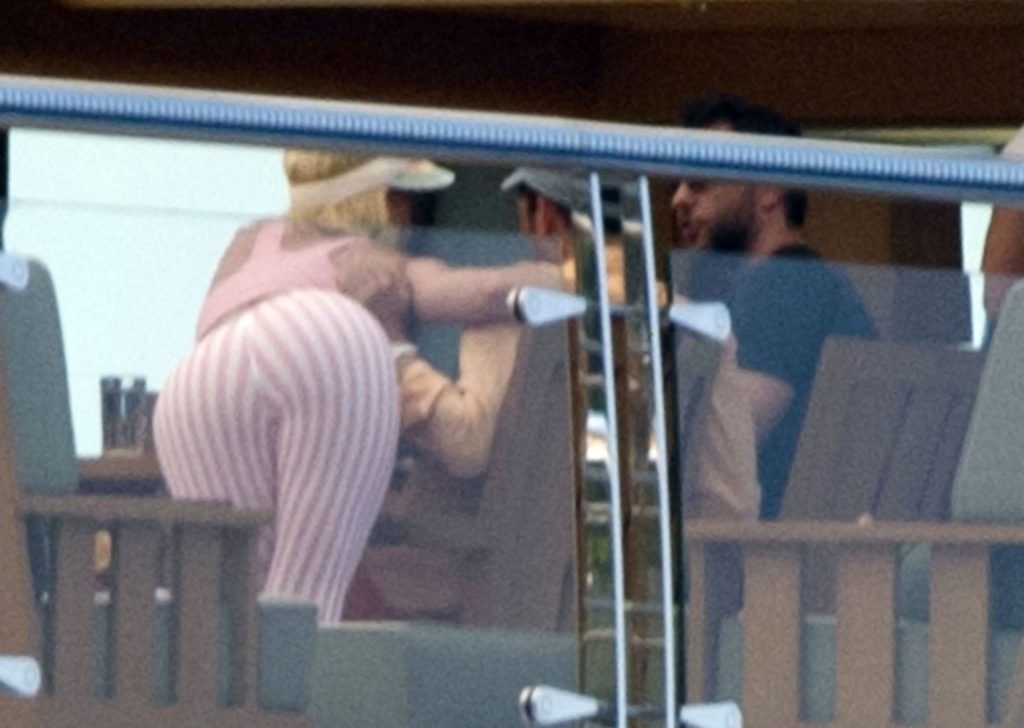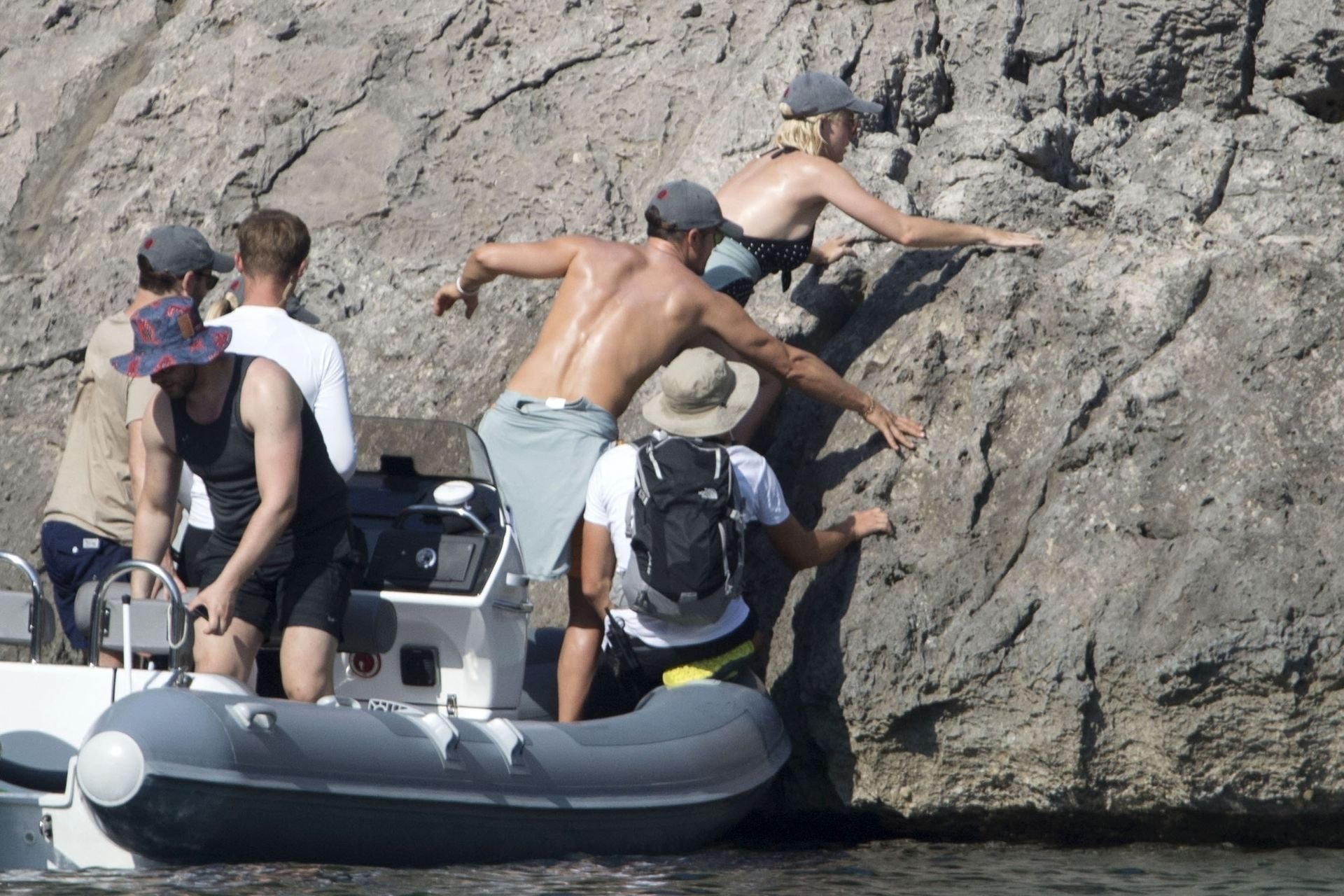 La feliz pareja fue vista escalando un acantilado juntos antes de saltar al mar, Katy mostró una cara valiente al lanzarse desde el acantilado mientras sus amigos la animaban. Luego, el grupo regresó a su megayate de lujo donde se relajaron juntos acompañados por algunos amigos que incluían a la ex de Roman Abramovich, Dasha Zhukova, el periodista estadounidense Derek Blasberg y la pareja poderosa Michael Kives y Lydia Gray Kives.