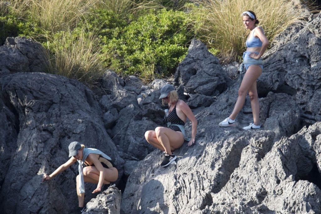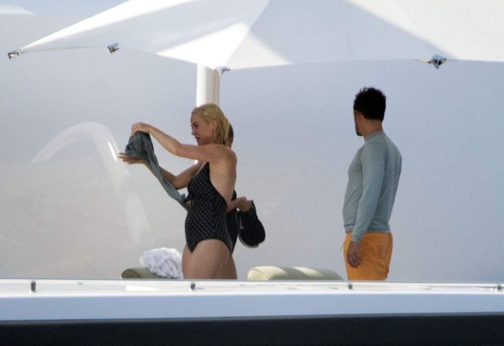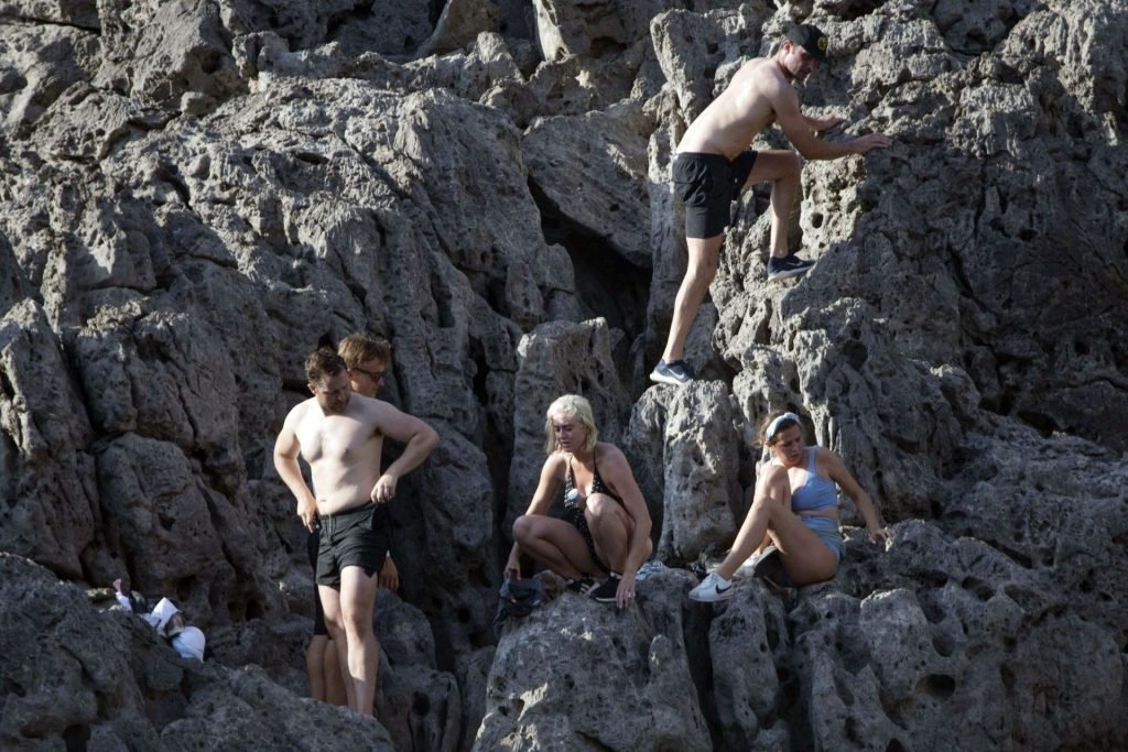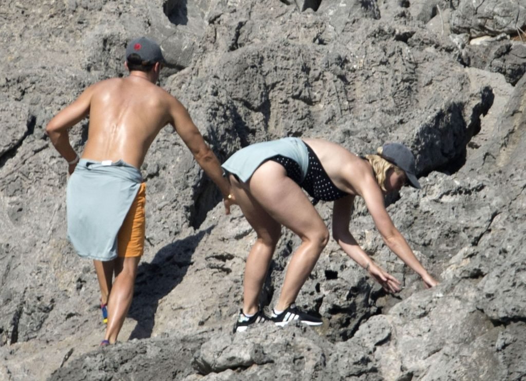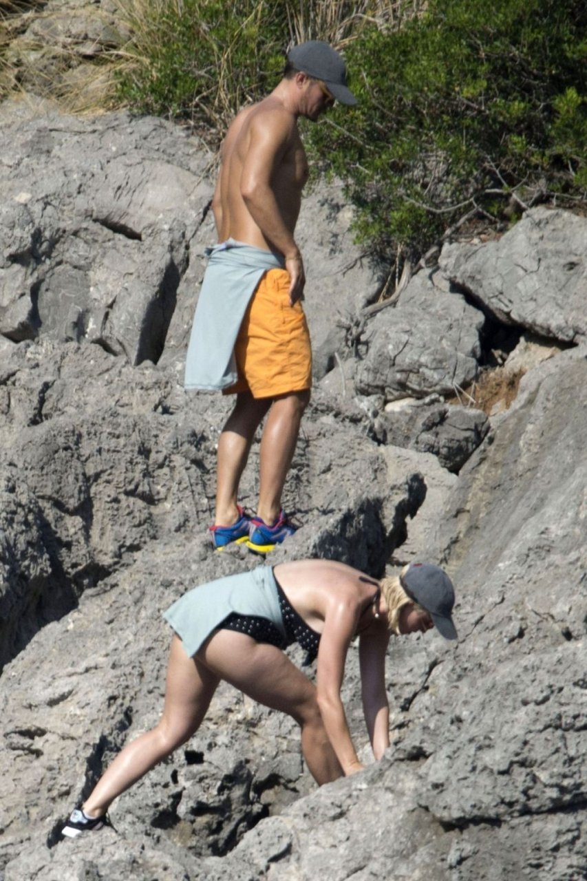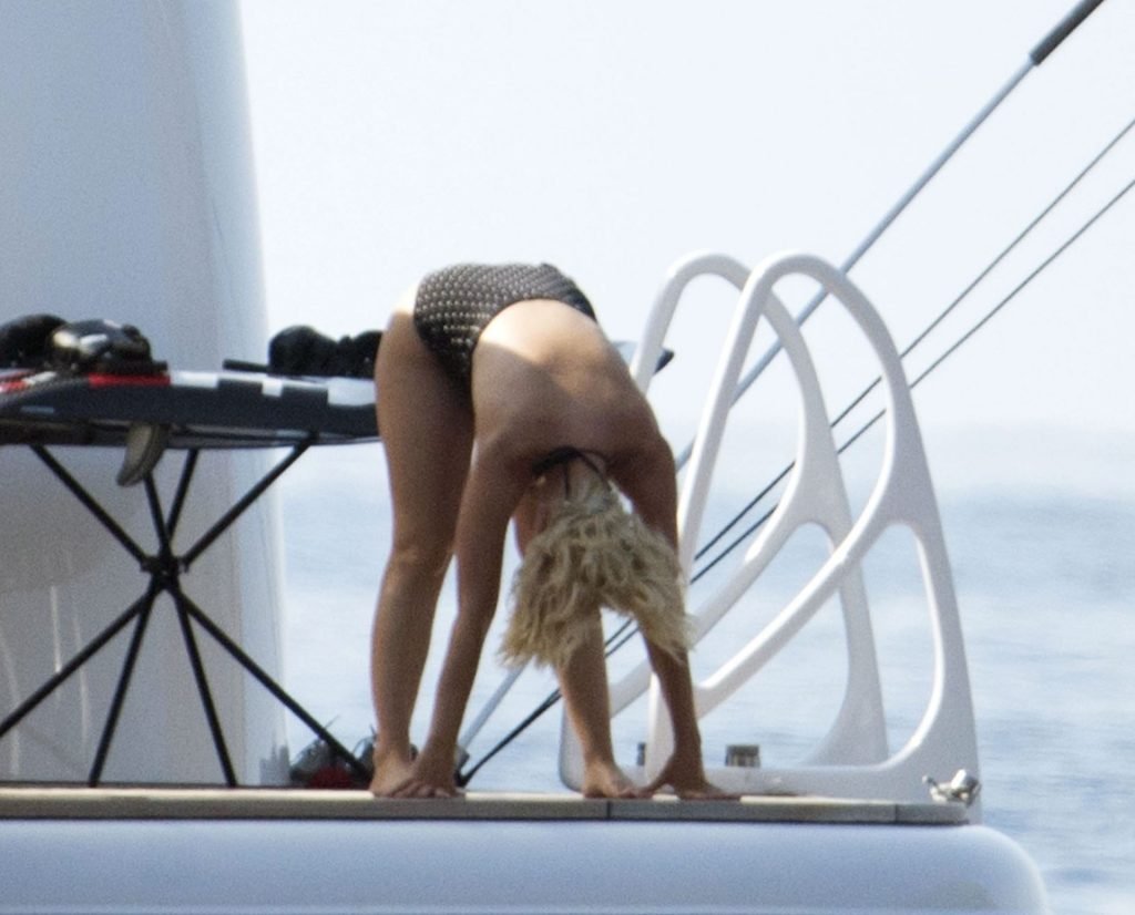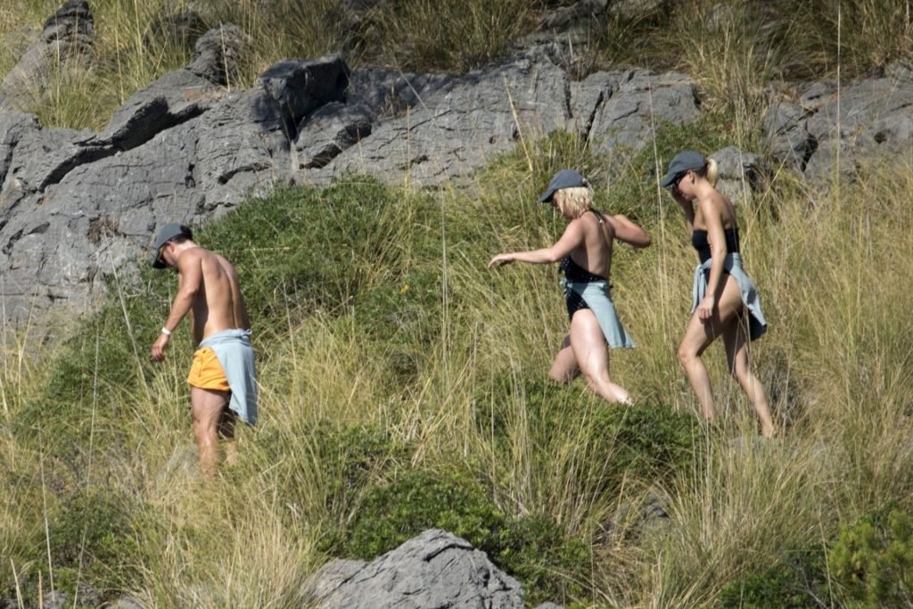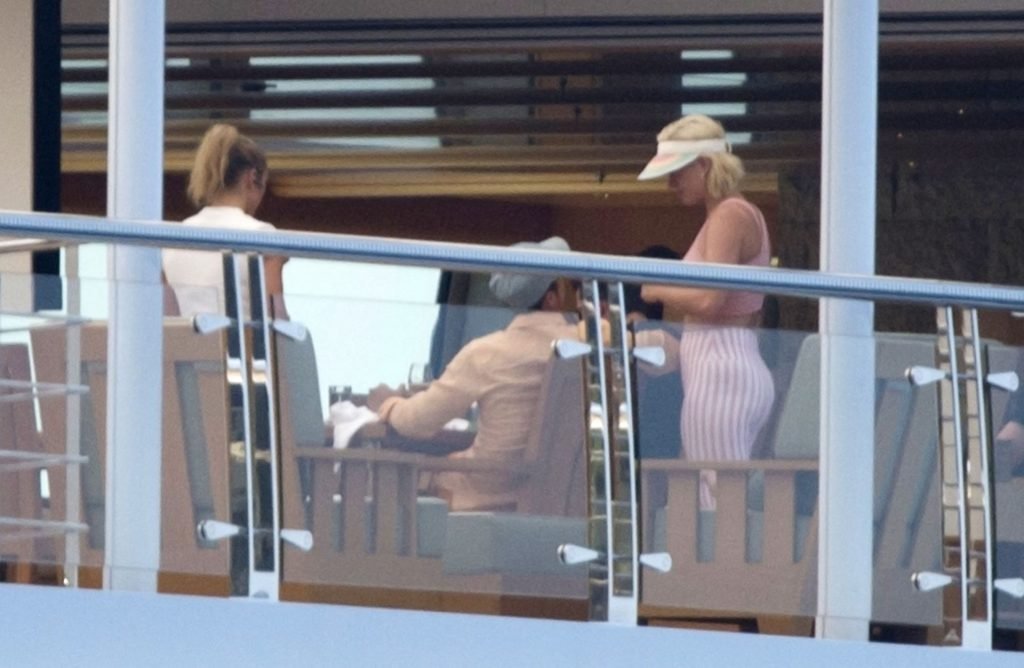 La feliz pareja fue vista escalando un acantilado juntos antes de saltar al mar, Katy mostró una cara valiente al lanzarse desde el acantilado mientras sus amigos la animaban. Luego, el grupo regresó a su megayate de lujo donde se relajaron juntos acompañados por algunos amigos que incluían a la ex de Roman Abramovich, Dasha Zhukova, el periodista estadounidense Derek Blasberg y la pareja poderosa Michael Kives y Lydia Gray Kives.