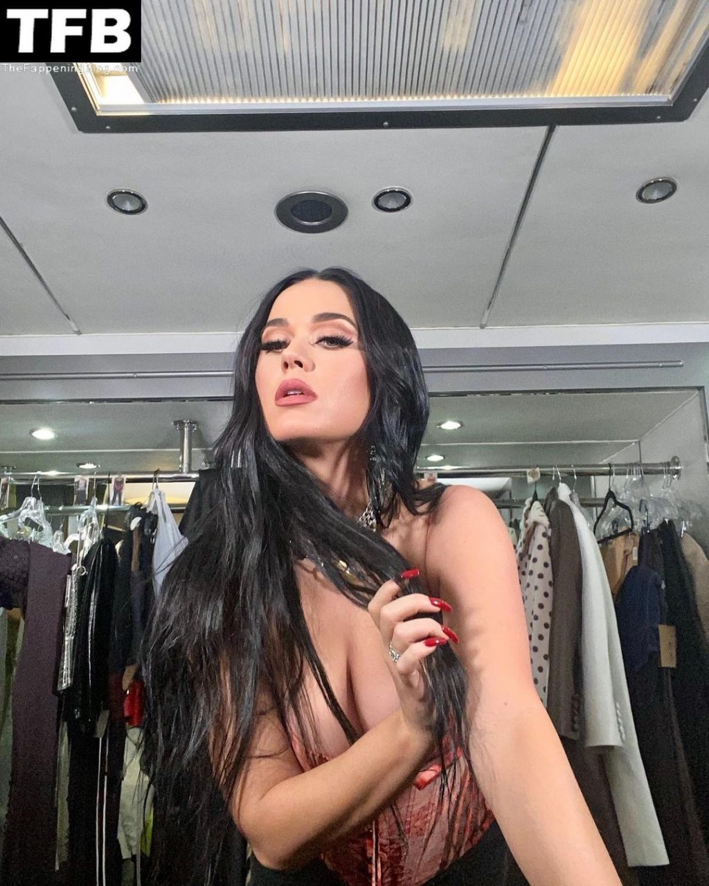 La cantante Katy Perry provoca a sus fans con sus pechos mientras comparte fotos detrás de cámaras de su show en Las Vegas (enero de 2022).