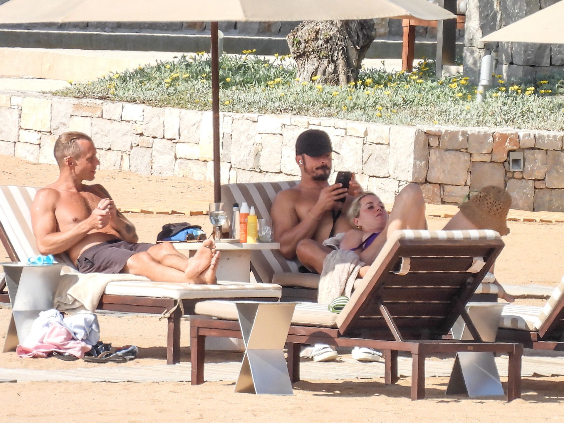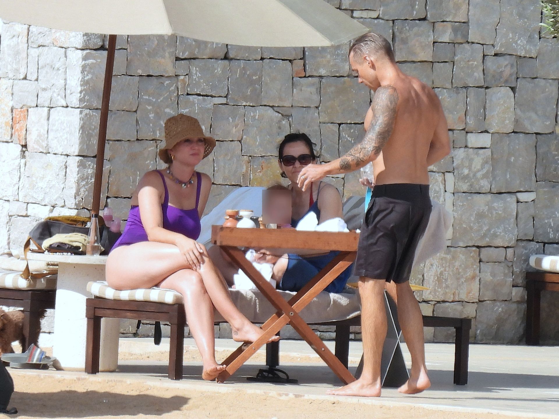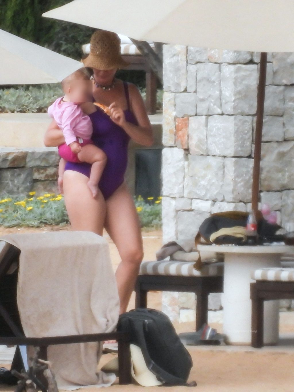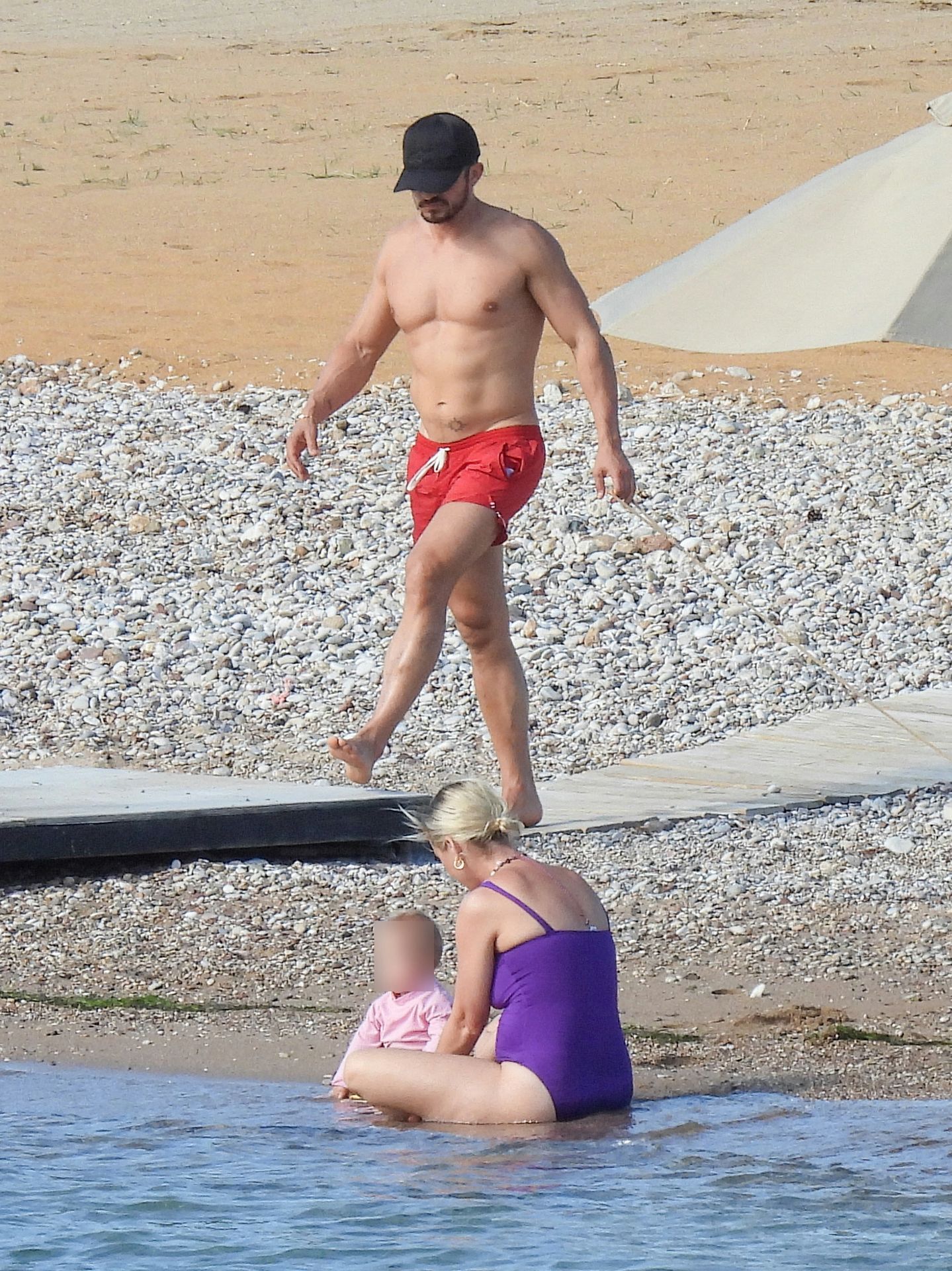 La megaestrella del pop, de 36 años, lució un llamativo traje de una pieza mientras tomaba el sol y se daba un baño mientras la familia se relajaba en el Peloponeso.
