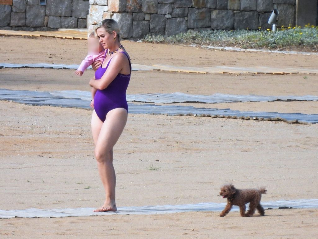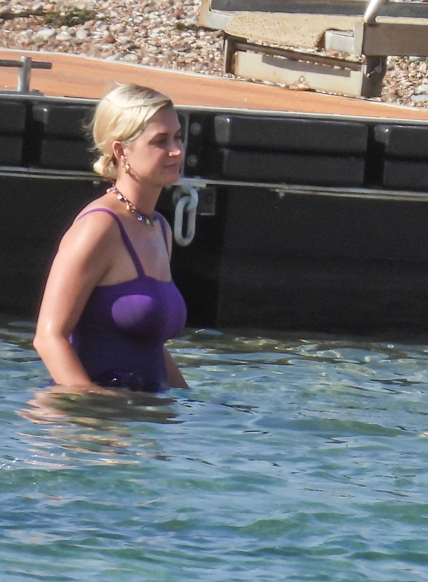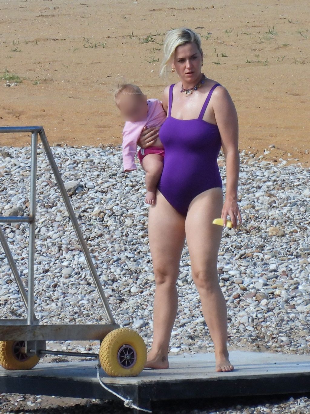 La nueva mamá Katy Perry deslumbra con un traje de baño morado mientras disfruta de unas vacaciones en Grecia con su esposo Orlando Bloom y su hija bebé Daisy Dove Bloom, 20/06/2021.