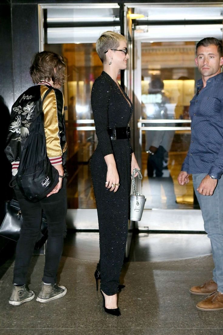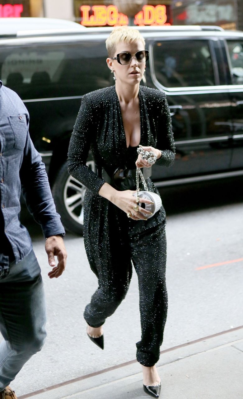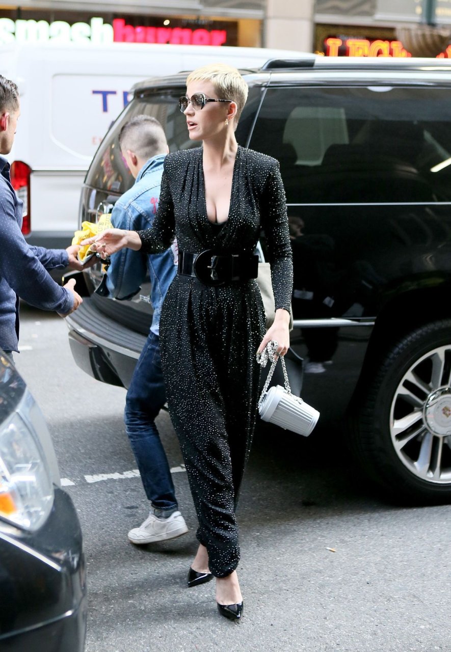 Busty Katy Perry lleva un mono negro en Nueva York, 19/05/2017. Katy Perry es una cantante, compositora y actriz de música pop (Raising Hope (Serie de TV), 2012) de Santa Bárbara, California, EE. UU. Edad – 32.