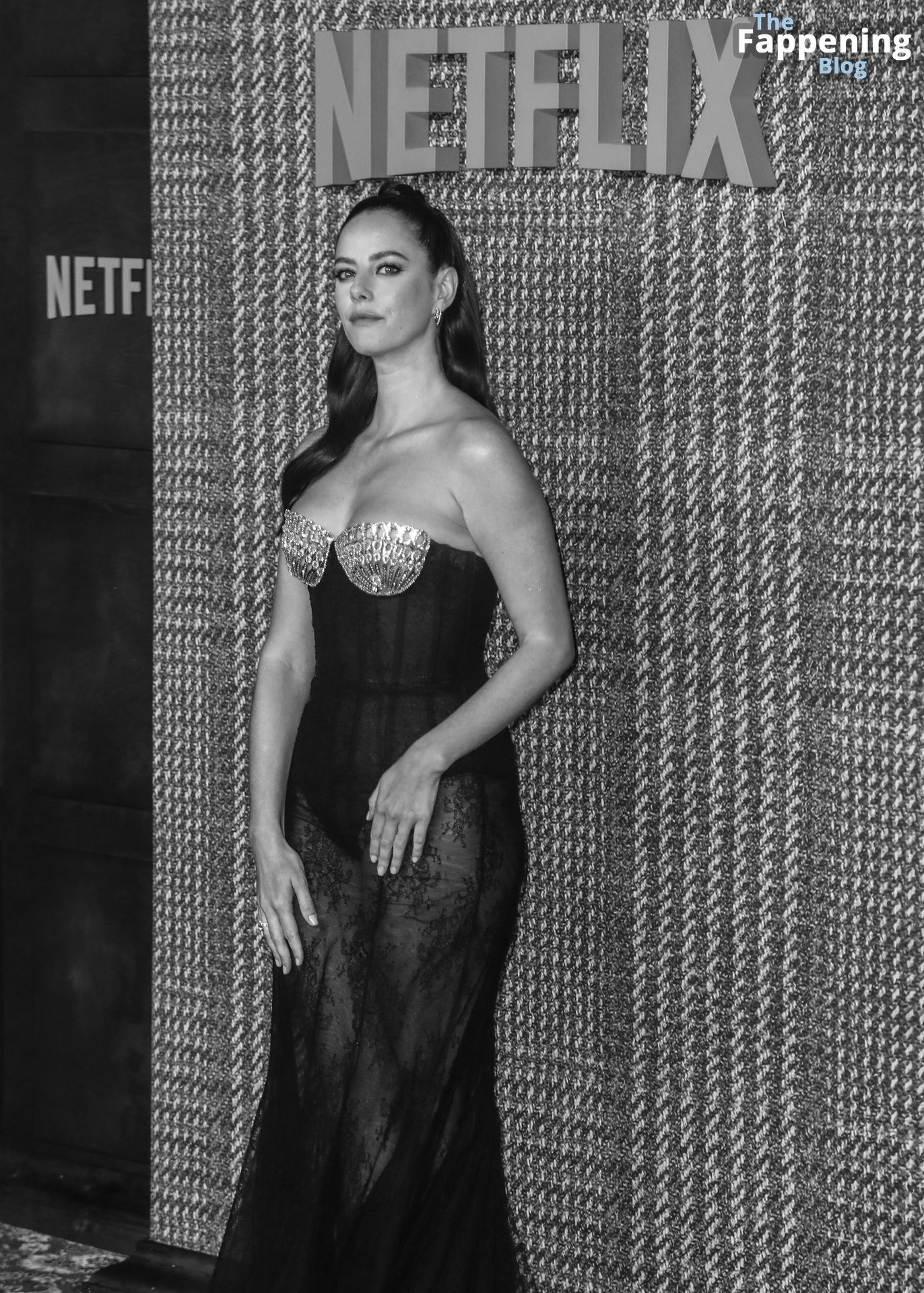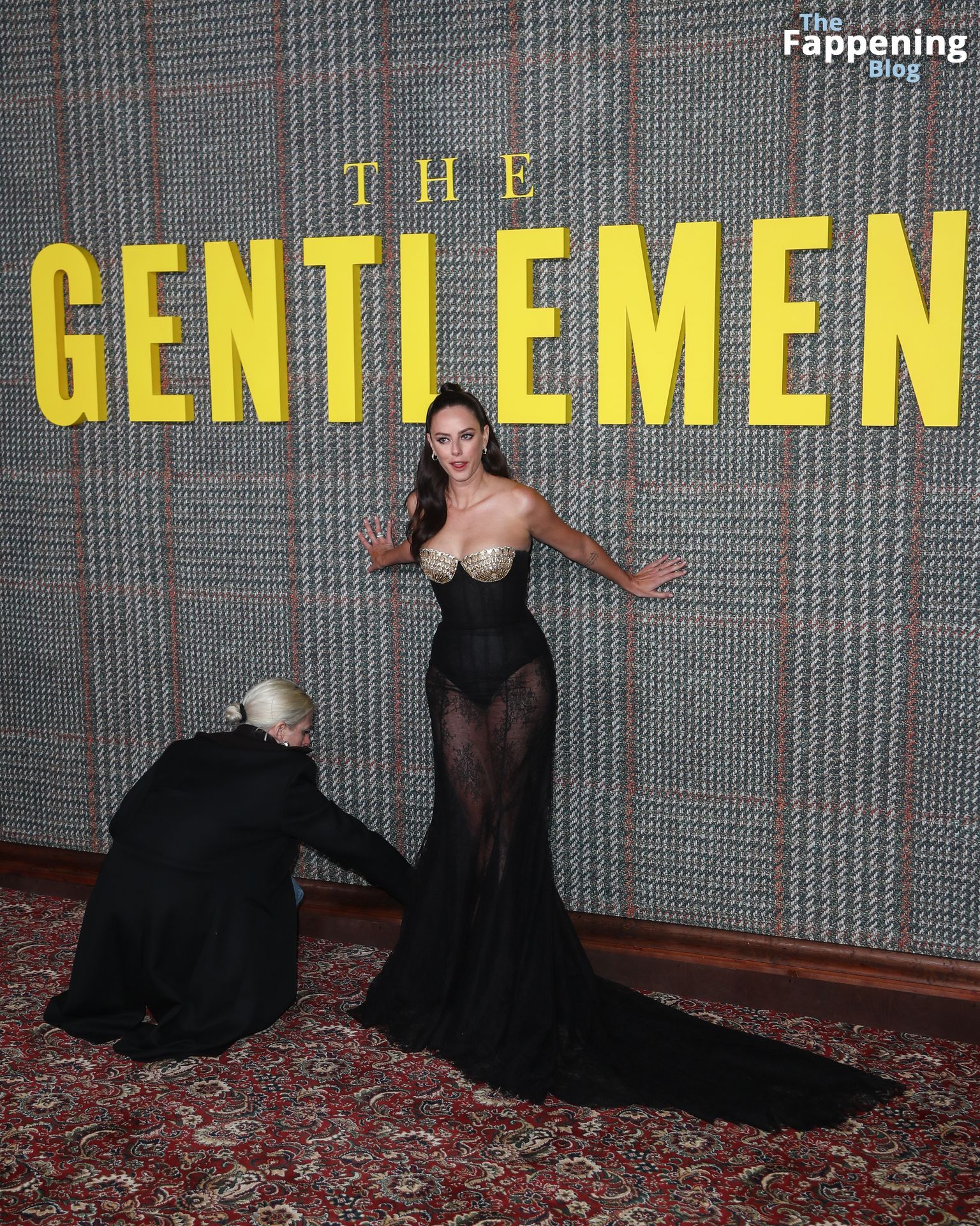 Disfruta del encanto de la actriz Kaya Scodelario mientras presume su hermoso escote en el estreno global de la serie británica “The Gentlemen” en el Theatre Royal Drury Lane de Londres.