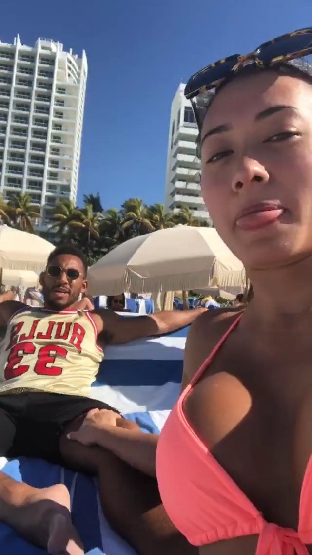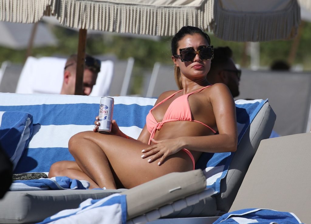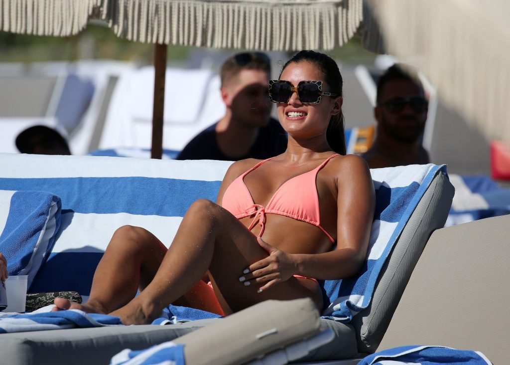 Kazimir “Kaz” Crossley de Love Island lleva un bikini color durazno mientras disfruta de la playa con su novio Josh Denzel en Miami, 01/02/2019.