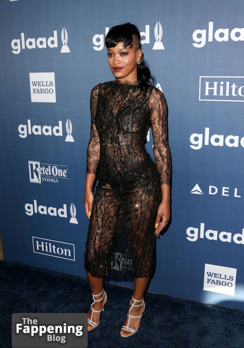 Colección de fotos ardientes y seductoras de Keke Palmer mostrando sus pechos desnudos, escote sin sostén y busto prominente, glúteos desnudos y un fallo accidental de vestuario con una filtración de pezón.