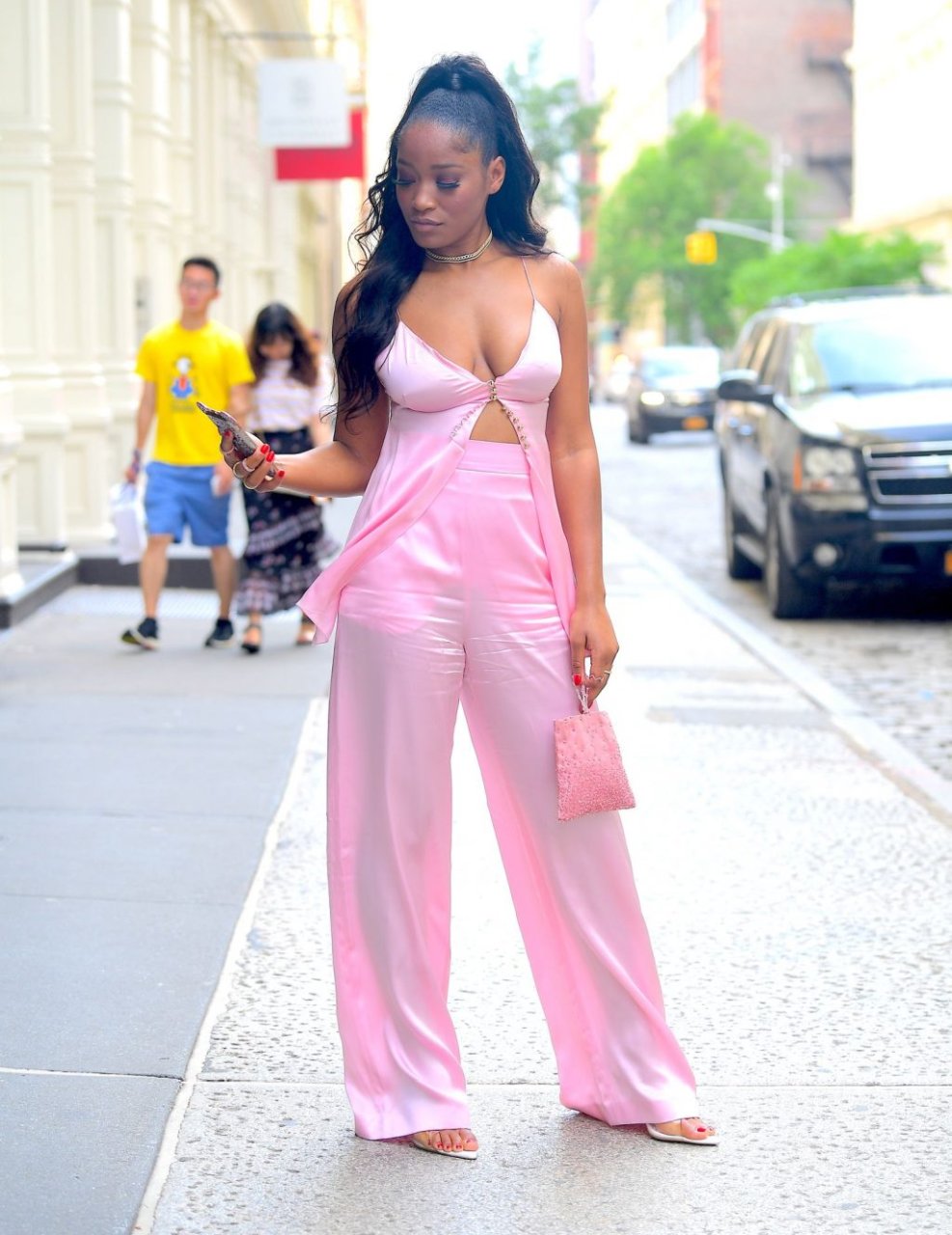 Actriz/cantante Keke Palmer (25) fue vista comprando en Soho el miércoles, luciendo impresionante con un conjunto rosa de escote bajo (2019).