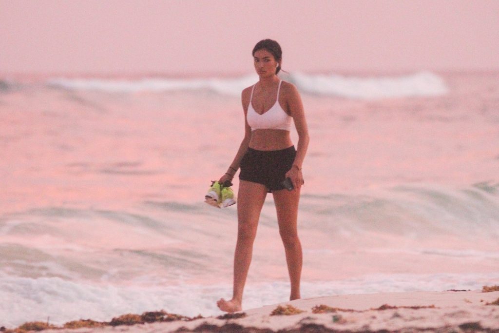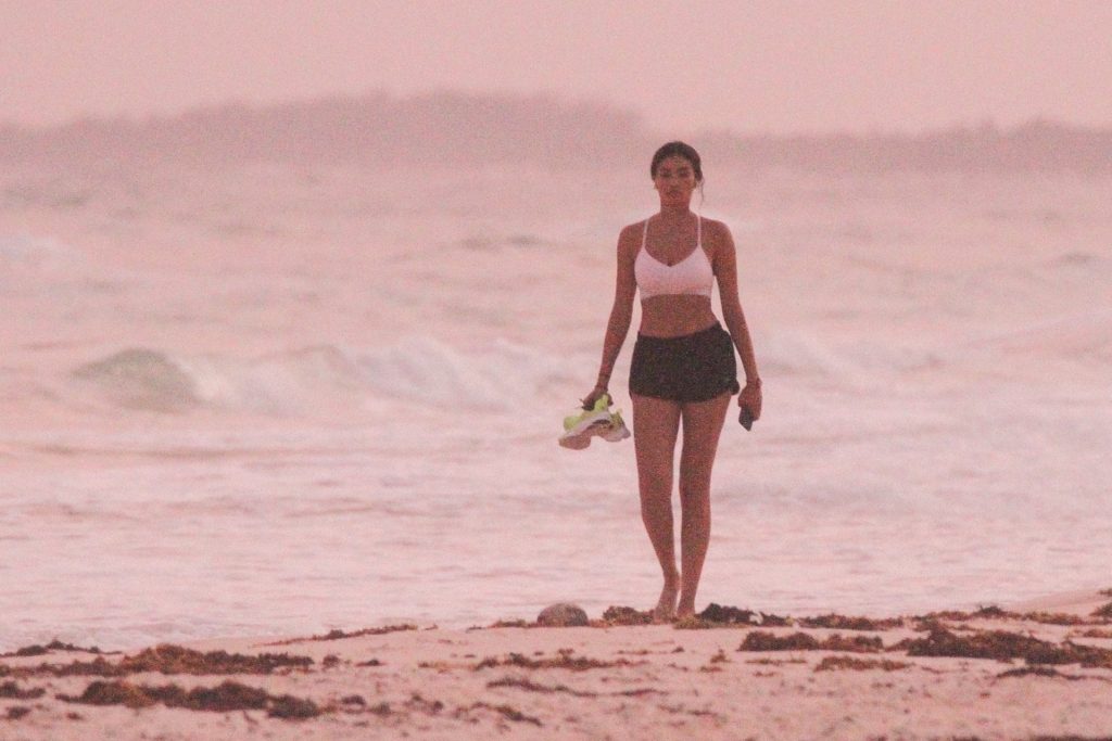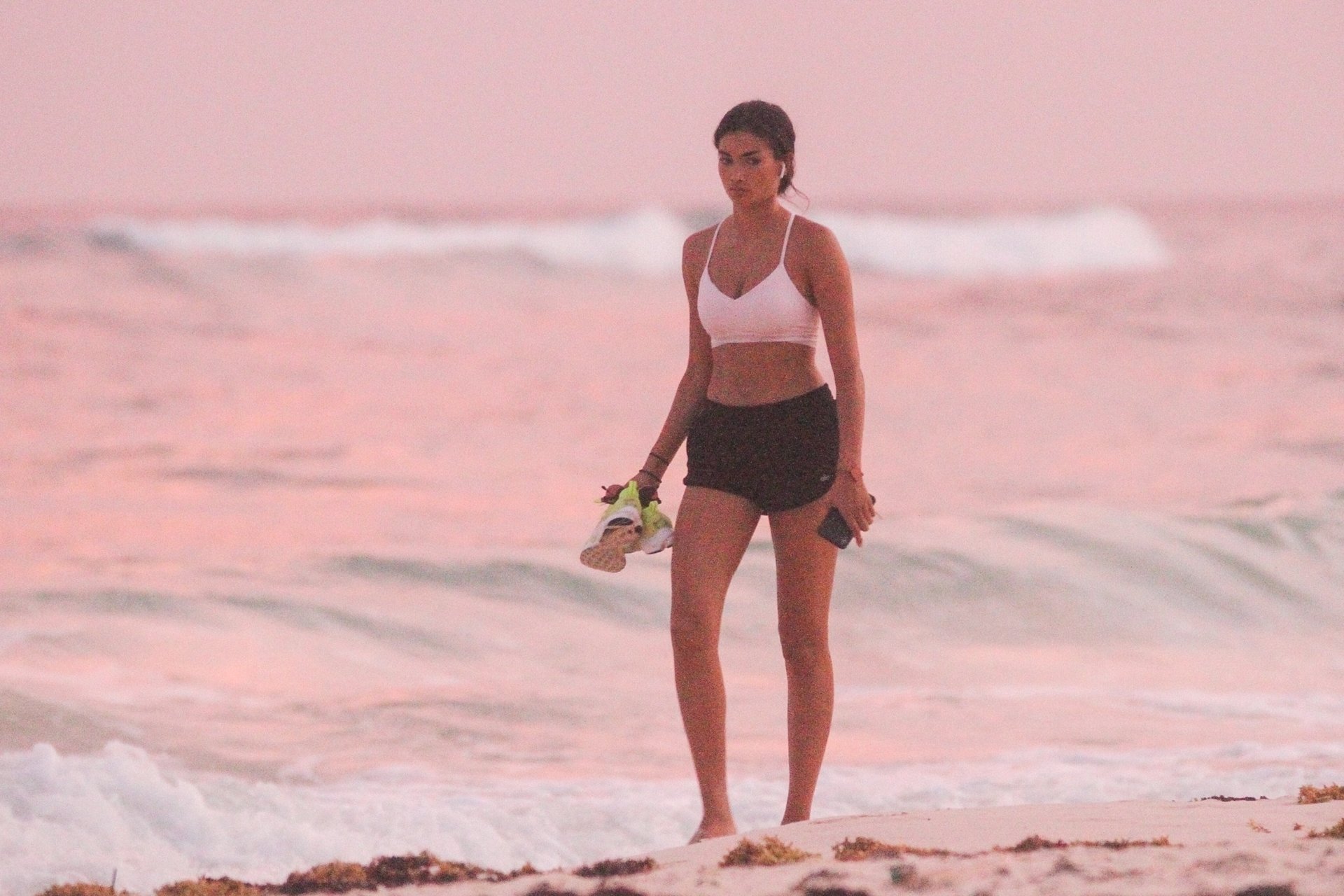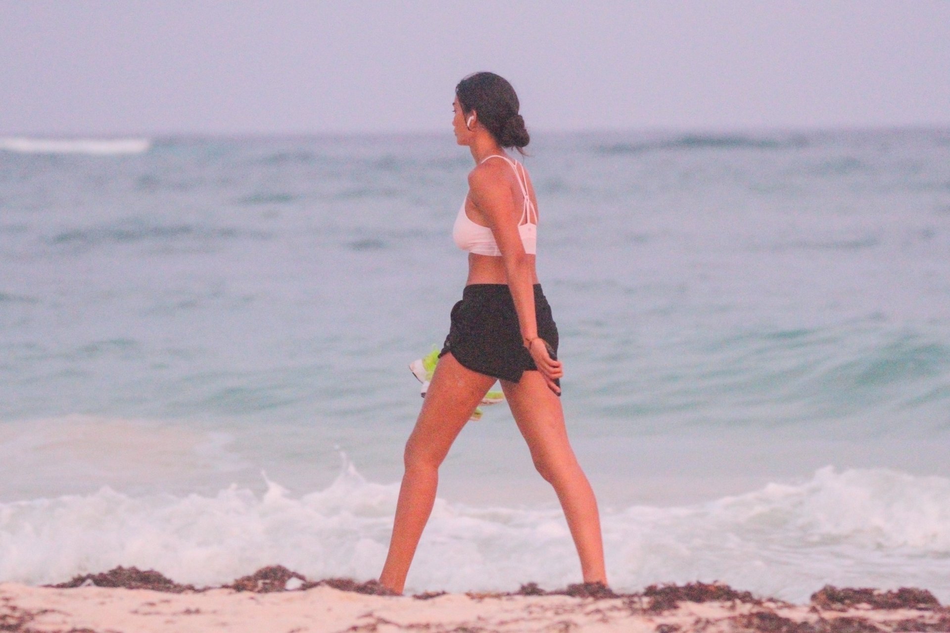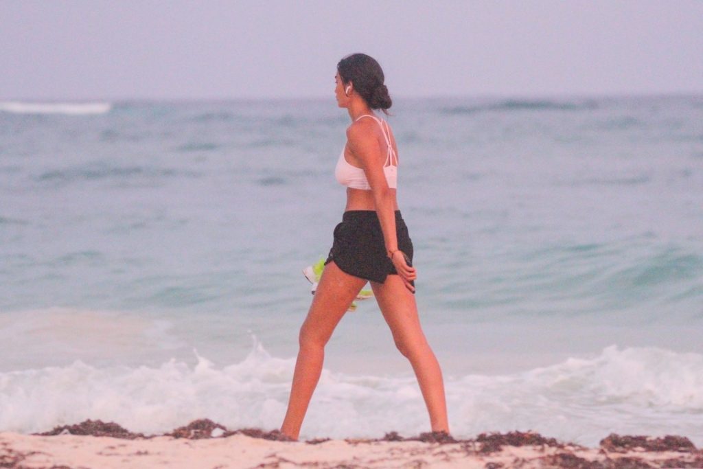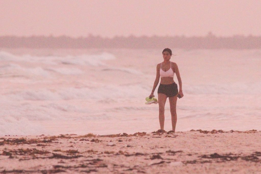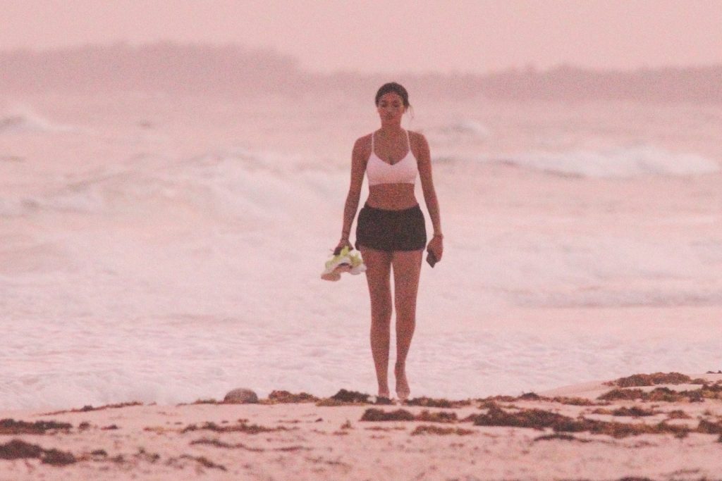 La modelo de Victoria’s Secret Kelly Gale disfruta de un relajante paseo en solitario por la playa en Tulum, México, 13/12/2019. La modelo sueco-australiana lleva sus zapatos mientras camina por la arena después de una carrera vespertina durante sus vacaciones al sur de la frontera.