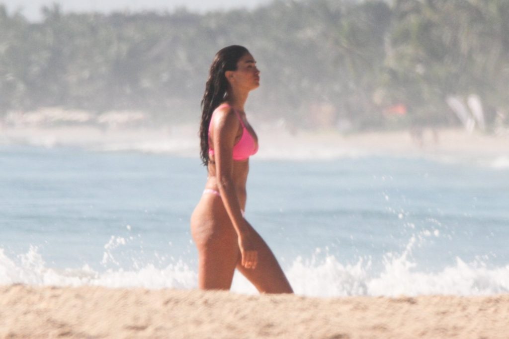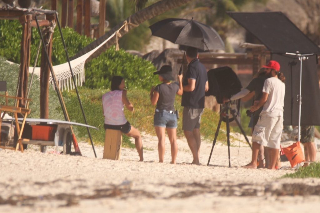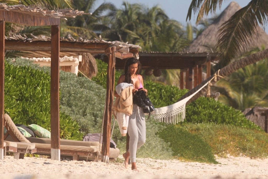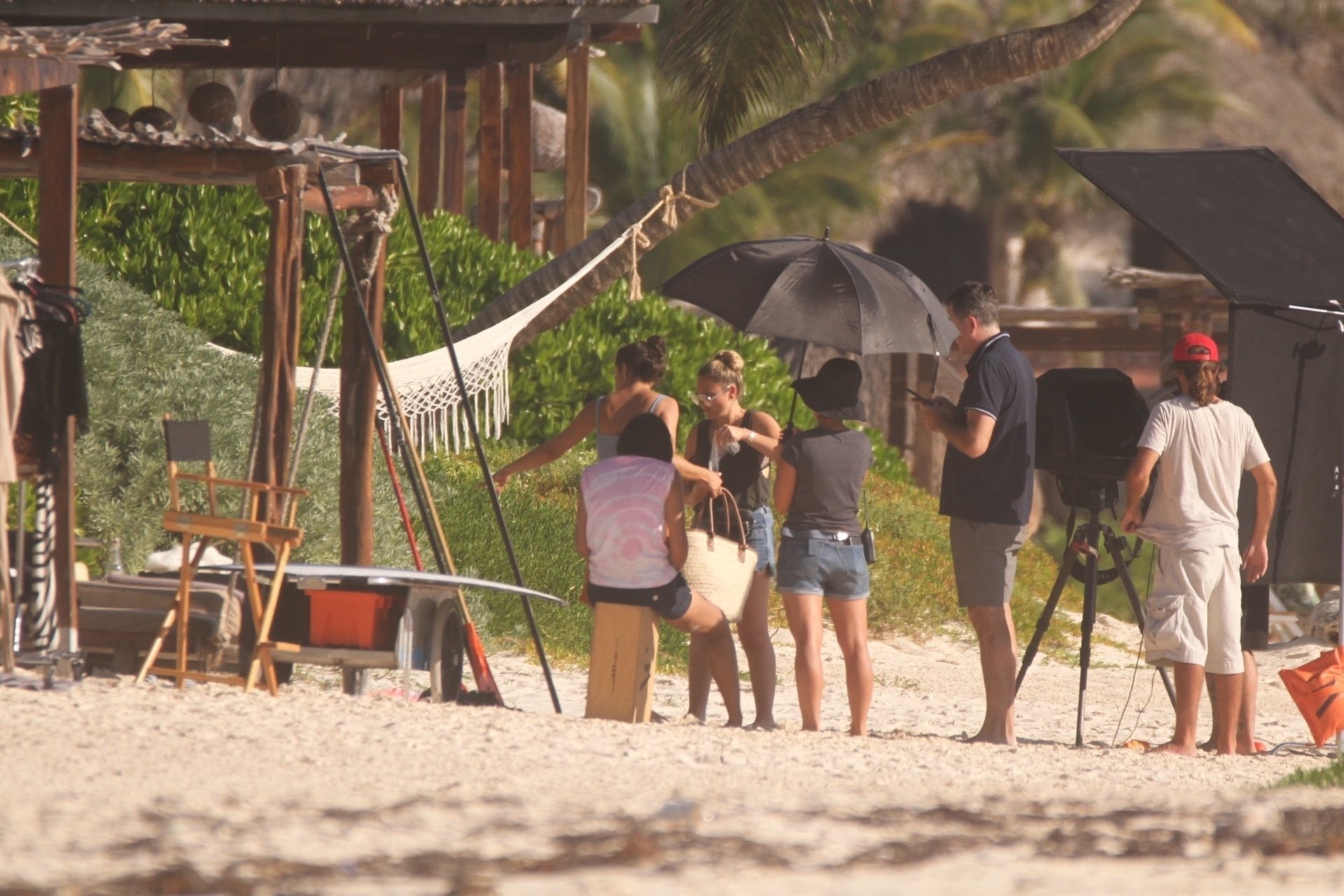 Modelo Kelly Gale en la playa relajándose después de una sesión de fotos temprano en la mañana en México, 14/12/2019.