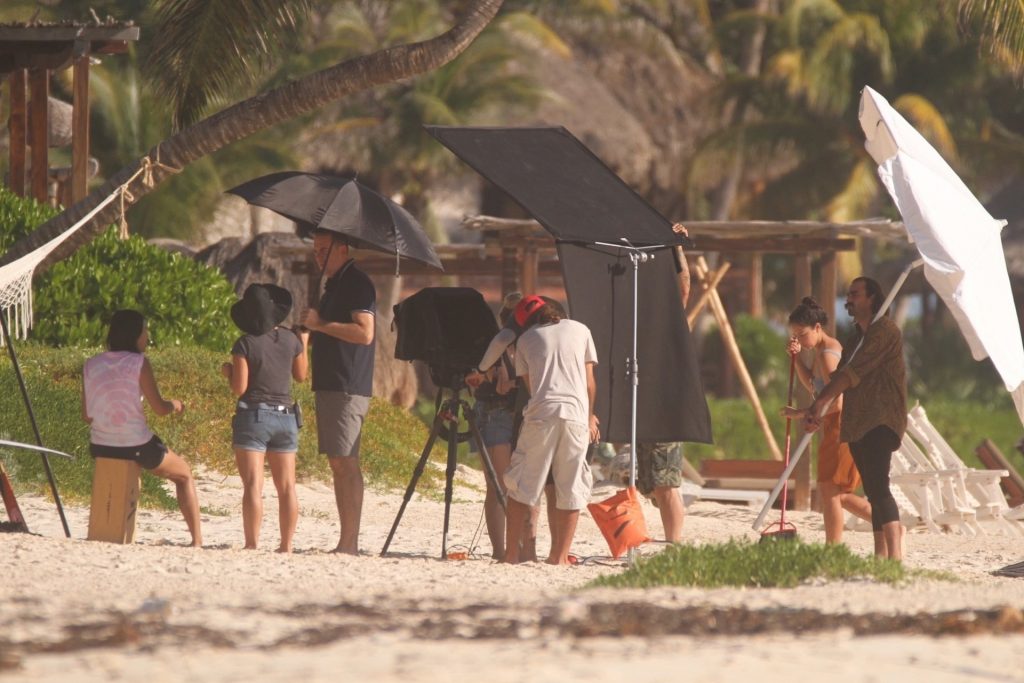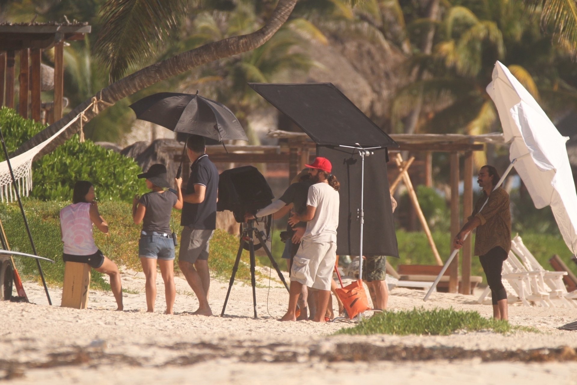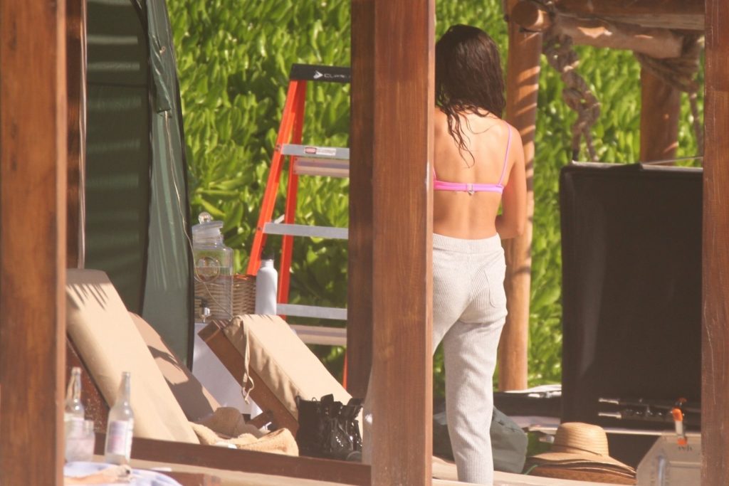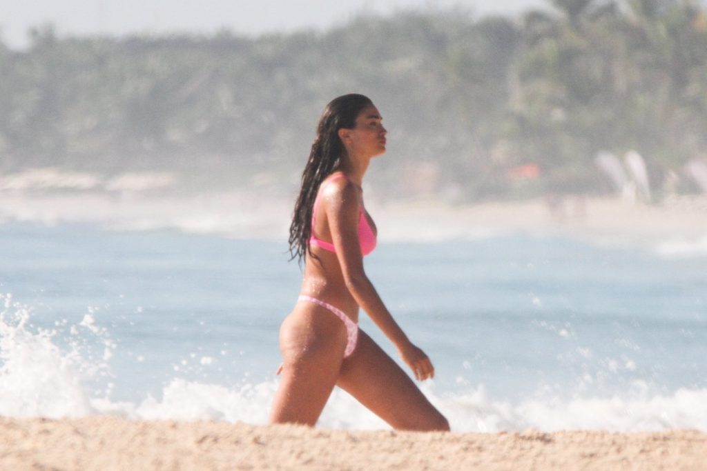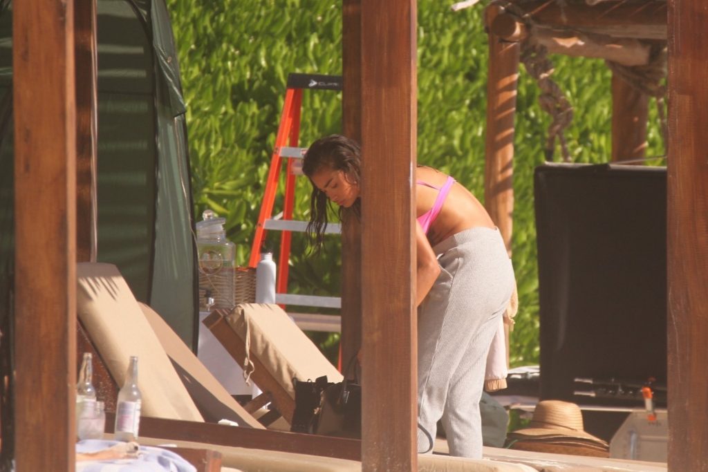 Modelo Kelly Gale en la playa relajándose después de una sesión de fotos temprano en la mañana en México, 14/12/2019.