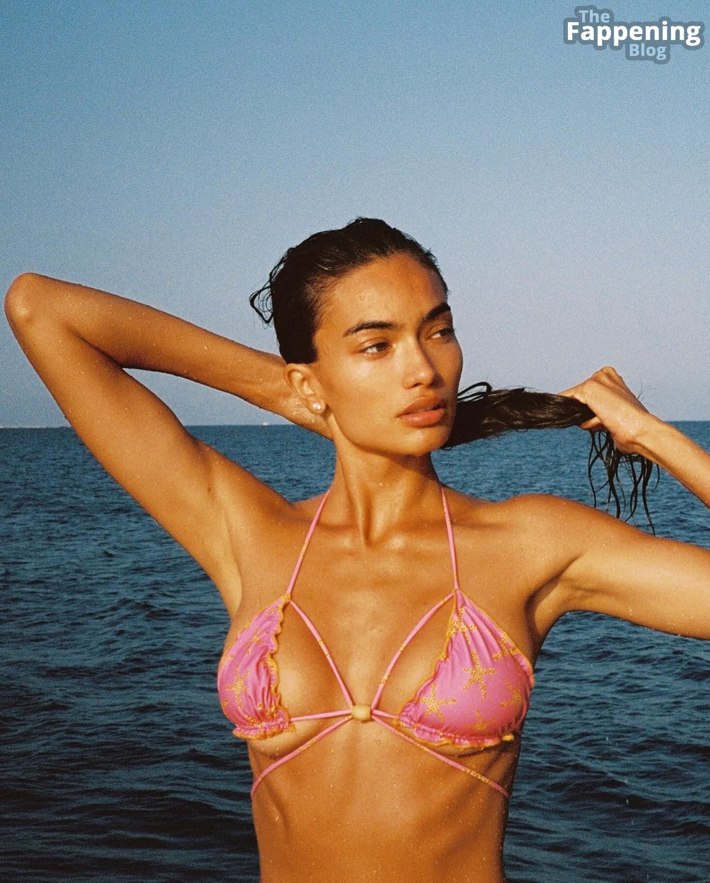 Incluso se puso un sombrero de capitán y ese diminuto bikini apenas cubría sus generosos atributos y su espectacular trasero. Esta modelo sueca bronceada, con una figura impecable, se ve mojada y ardiente en ese traje de baño rosa, ¡y está arrasando por completo!