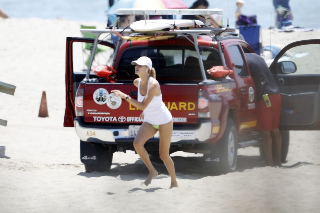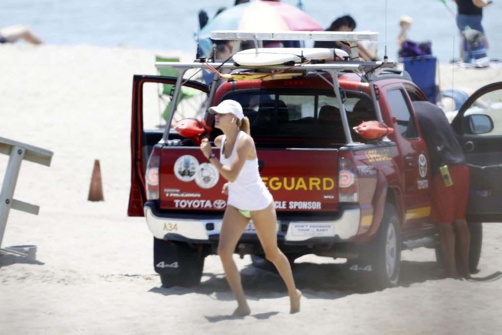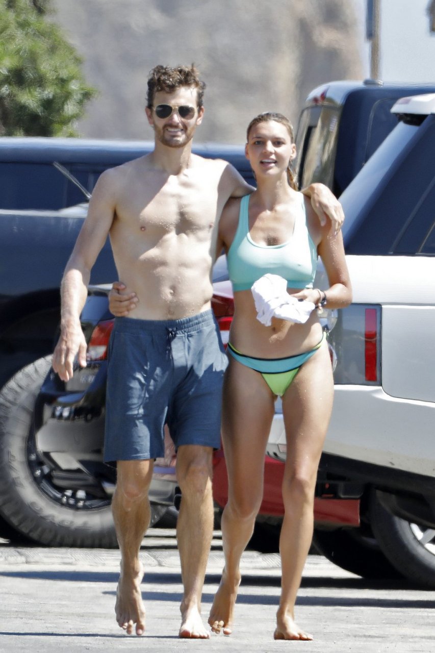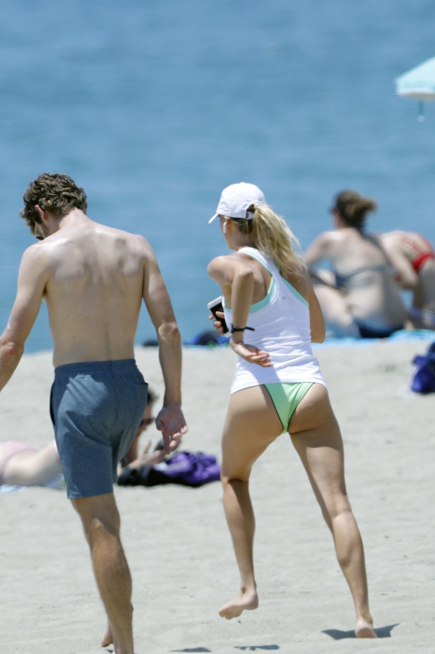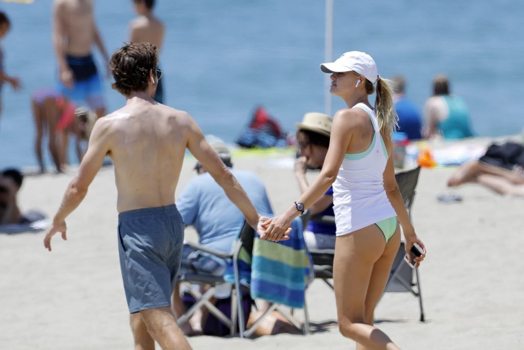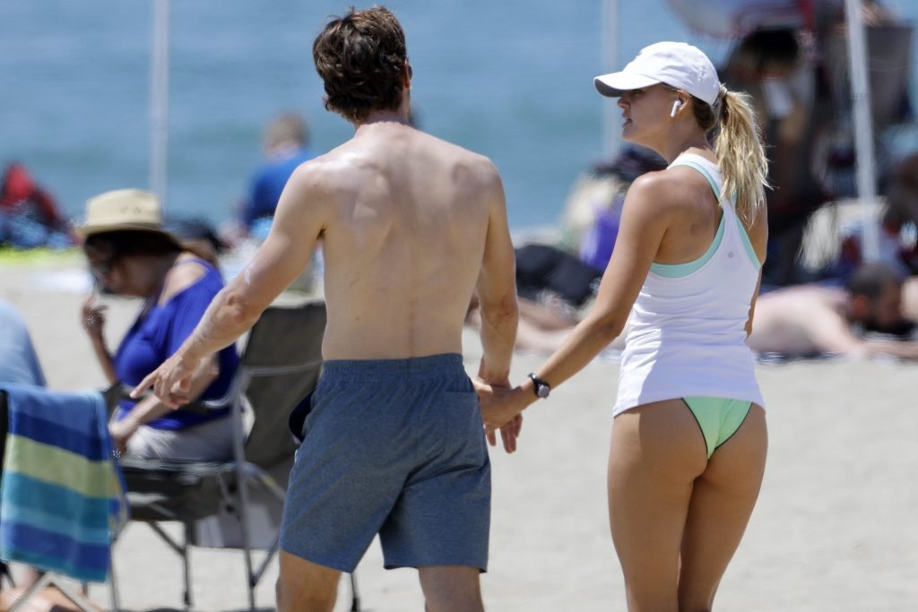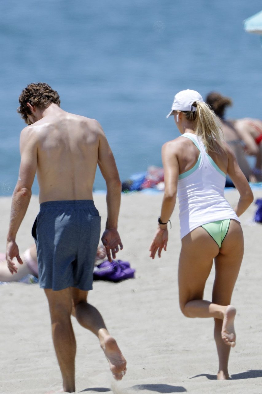 La actriz y modelo estadounidense Kelly Rohrbach (28) lleva a su novio Steuart Walton a correr y se da una ducha sexy en bikini en la playa de Malibu, California, 01/08/2018.
