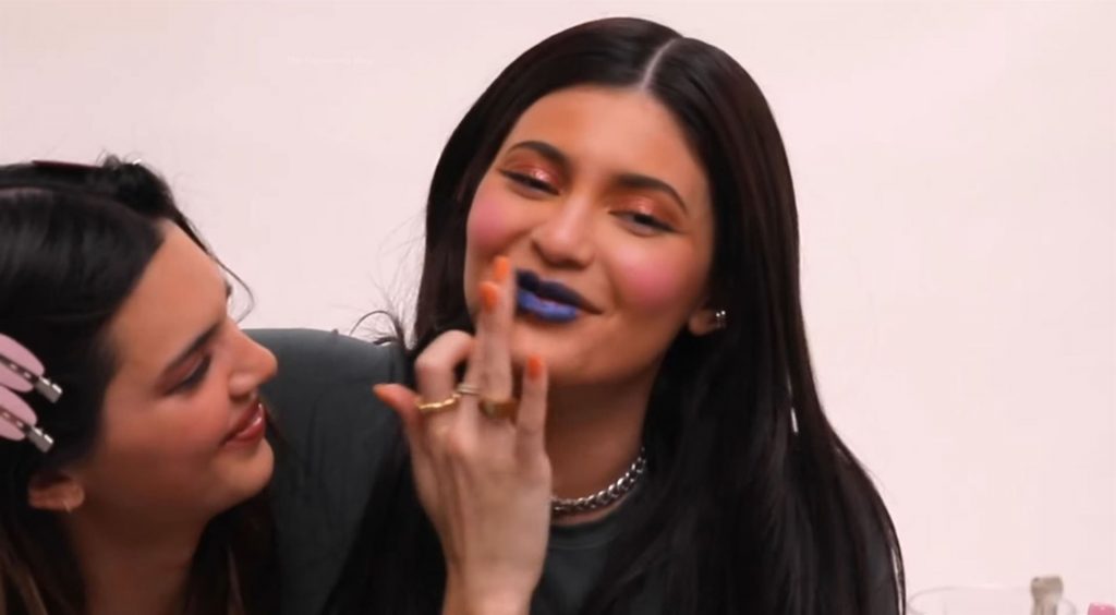 Mientras Kendall trabaja en su ojo ahumado púrpura y Kylie difumina con un tono amarillo, las lágrimas felices comienzan a rodar nuevamente ya que claramente las hermanas no están en su mejor momento en el departamento de maquillaje. Avanzando con unos cuantos tragos más, Kendall y Kylie han consumido un total de 8 shots cada una. Kylie le dice a su hermana mayor: “Termina mi brillo, haz lo que quieras.” Lo que Kendall quiere es sombra azul en los labios de Kylie. “Me encanta que uses sombra azul para mis labios. Súper creativo,” bromea ella. Pero Kendall no quería que la ‘creatividad’ fuera recíproca.