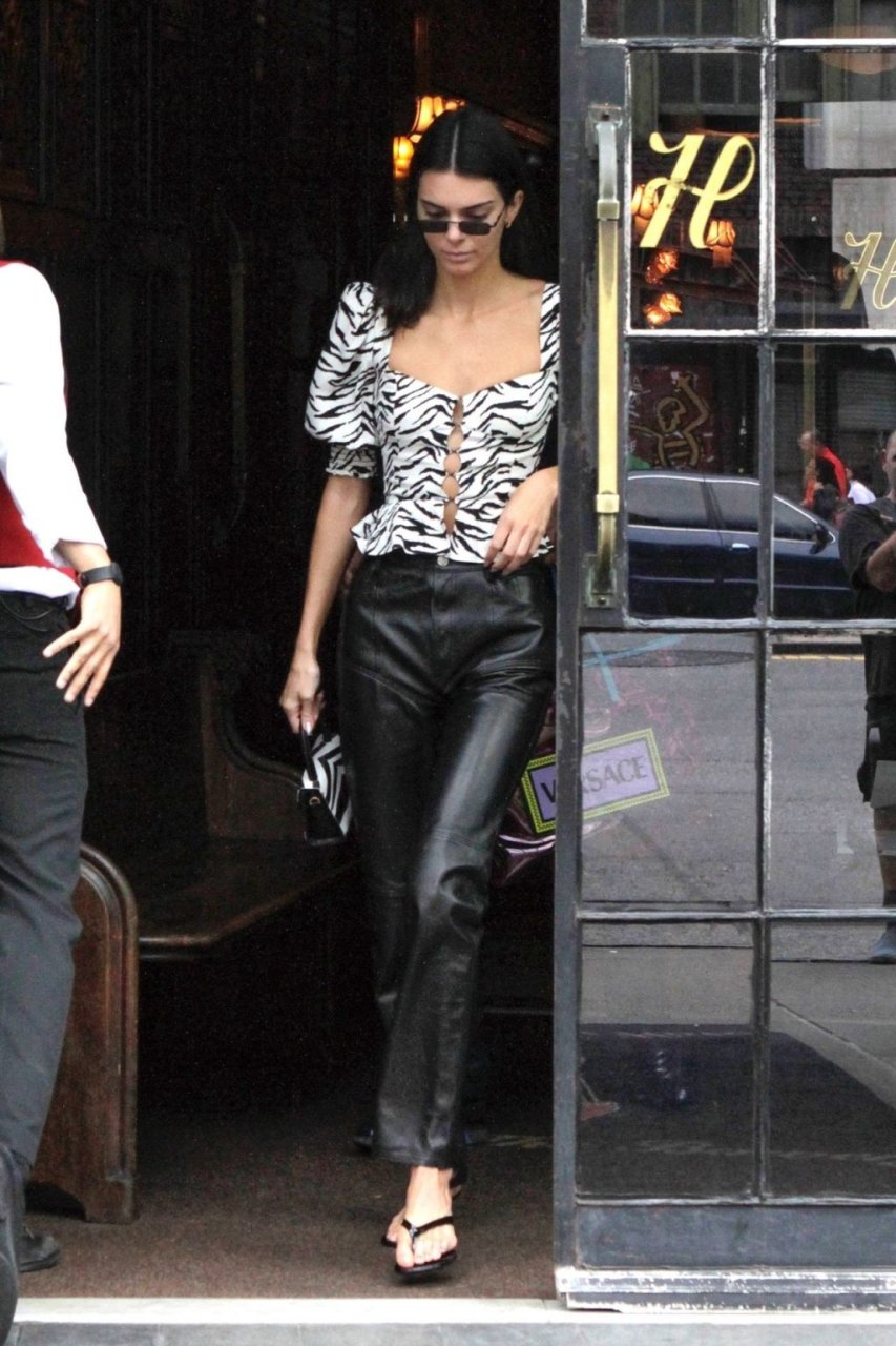 Modelo Kendall Jenner lleva un conjunto de estampado de cebra mientras se prepara para la Met Gala, 05/06/2019.