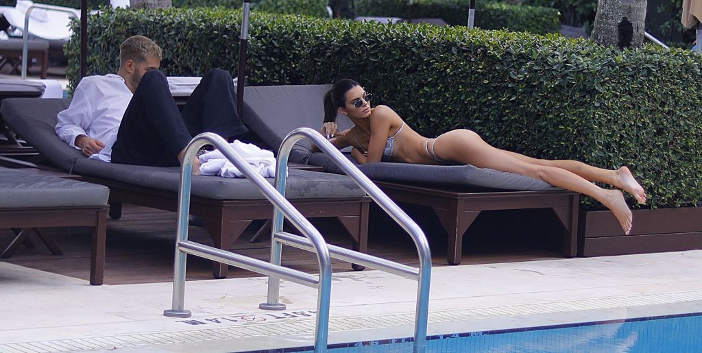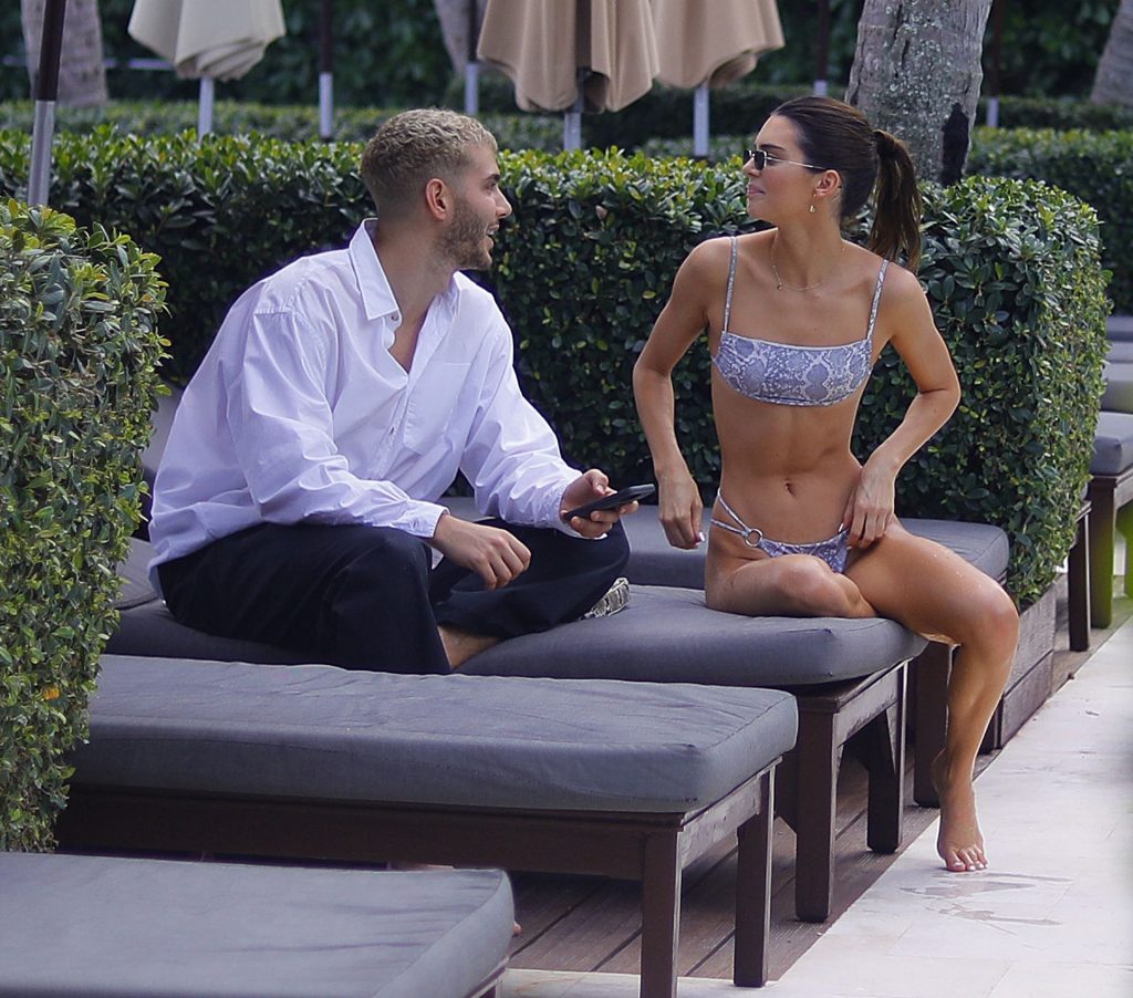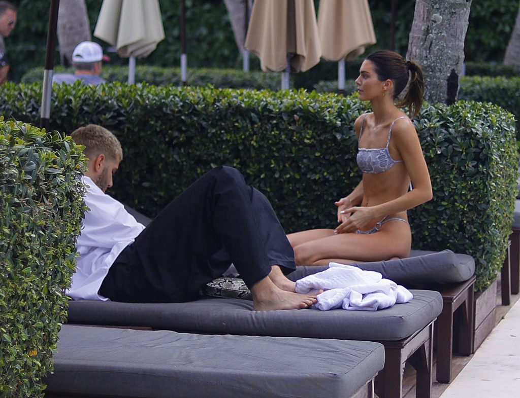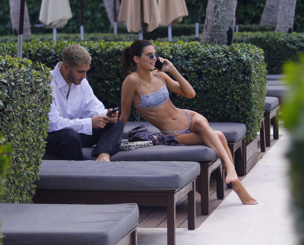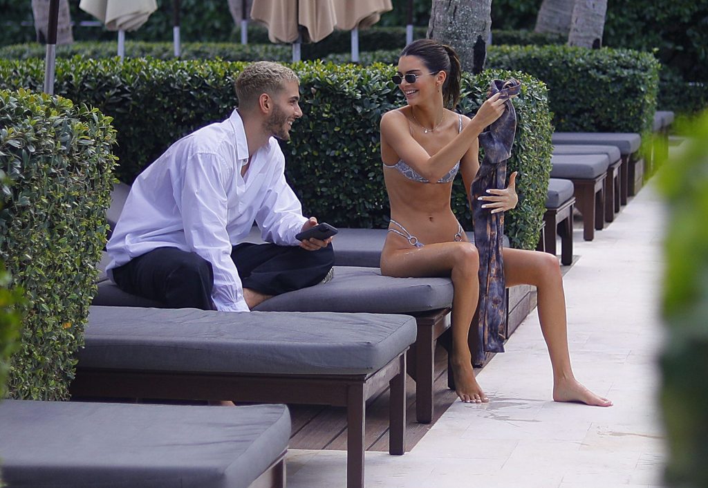 La modelo Kendall Jenner lleva un bikini muy escaso mientras se relaja junto a la piscina con la modelo Fai Khadra en Miami, 12/04/2019.