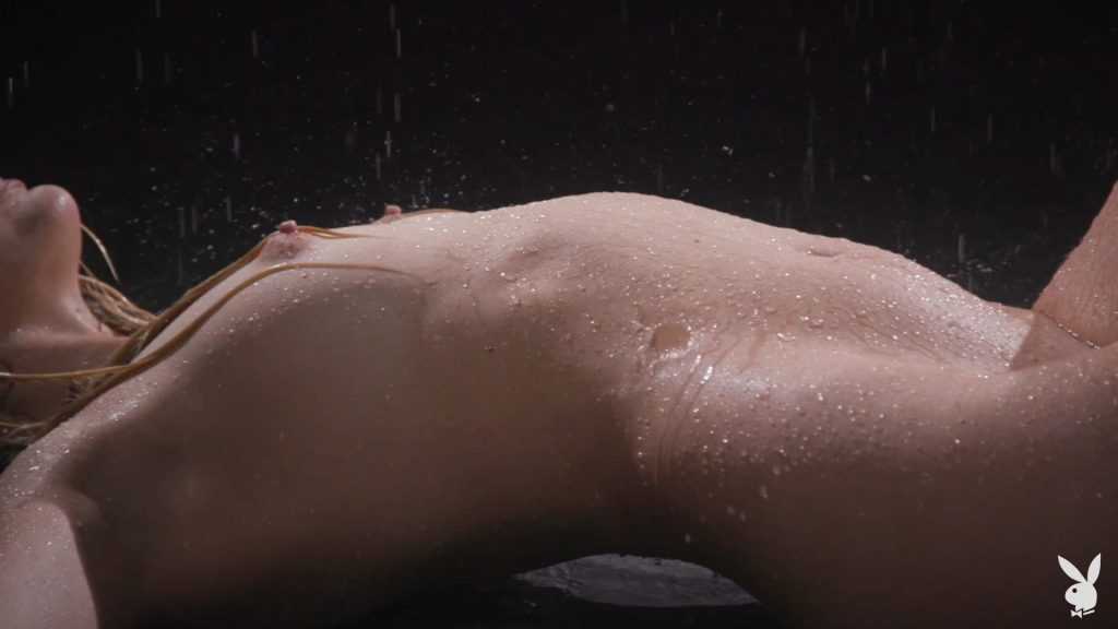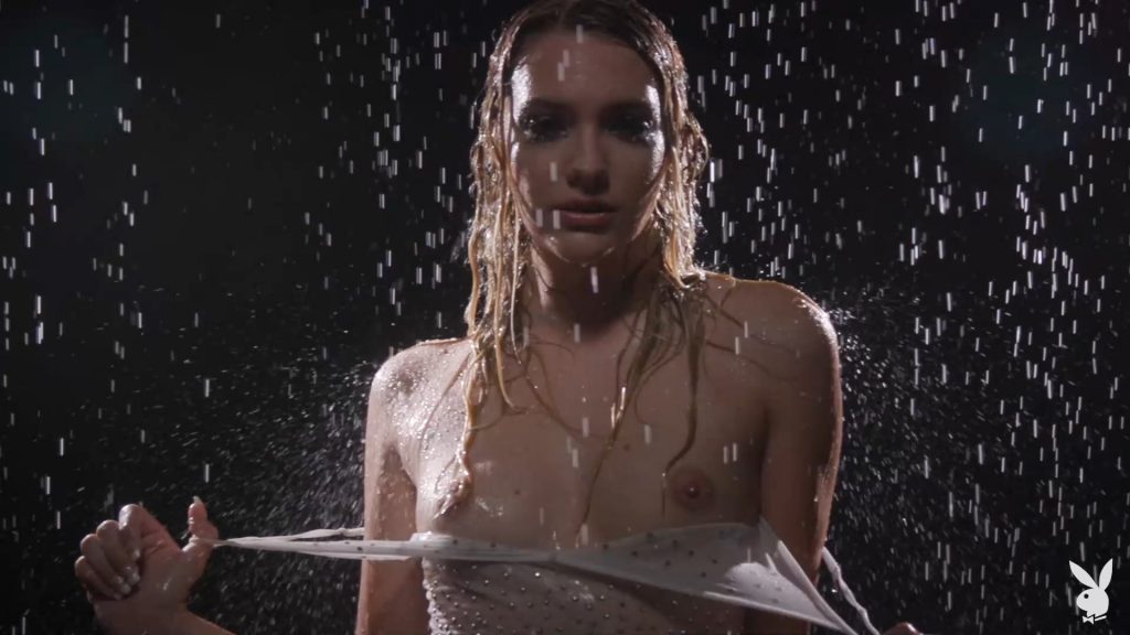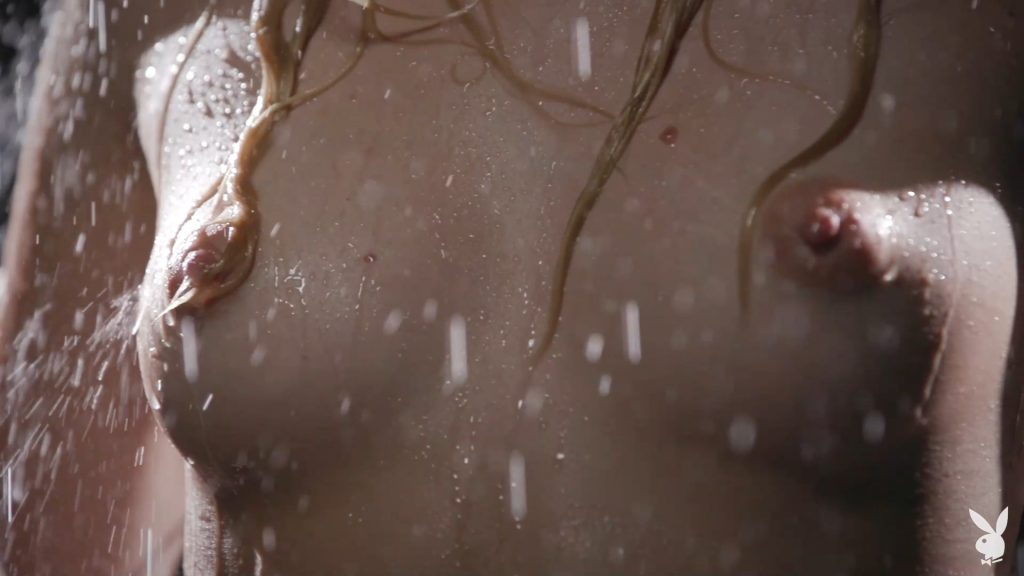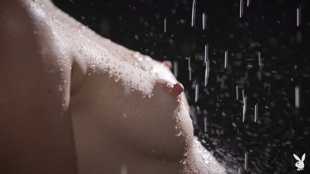 Penthouse Pet, modelo y actriz porno Kenna James se moja y se desnuda en una sesión de fotos para Playboy Plus, mostrando sus pequeños pechos y su cuerpo natural y ardiente (2021).