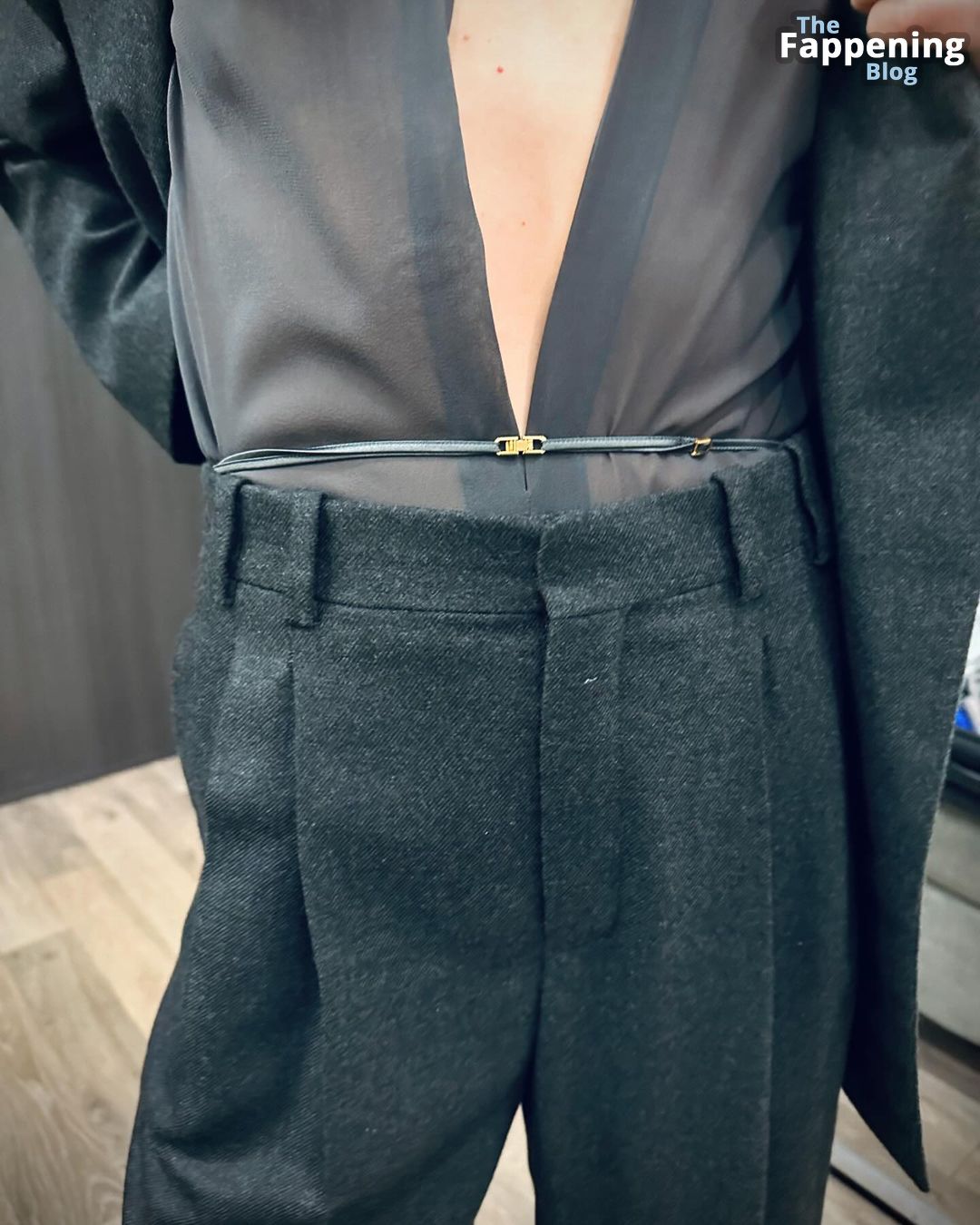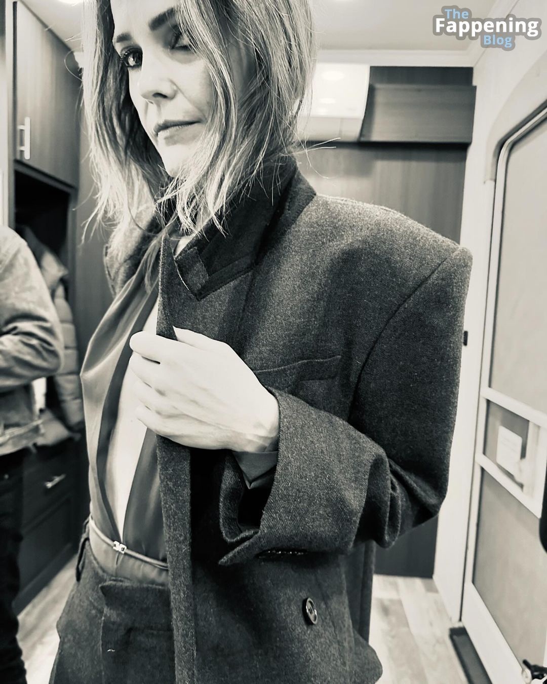 Keri Russell sin sujetador, mostrando sus pechos y pezones completamente al descubierto con una sexy blusa negra transparente mientras se prepara para el Late Night.