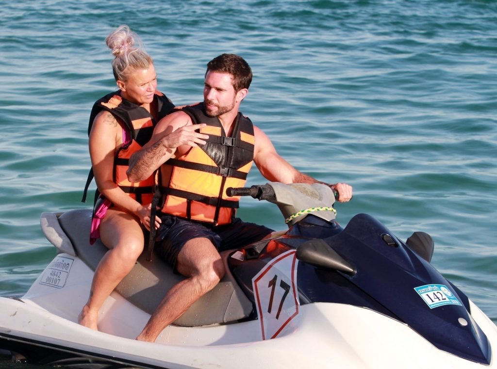 Kerry Katona se está divirtiendo bajo el sol en el lejano oriente mientras participa en algunas actividades de deportes acuáticos con su nuevo novio Ryan Mahoney, ya que la pareja enamorada es vista practicando jet ski en las cálidas aguas durante sus vacaciones en Tailandia, 14/10/2018.
