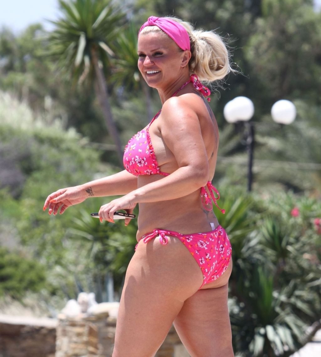 La ex estrella de “Atomic Kitten” Kerry Katona se quita su lindo conjunto de mezclilla para revelar un sexy bikini rosa que muestra un montón de escote – Mykonos, 10/06/2019.