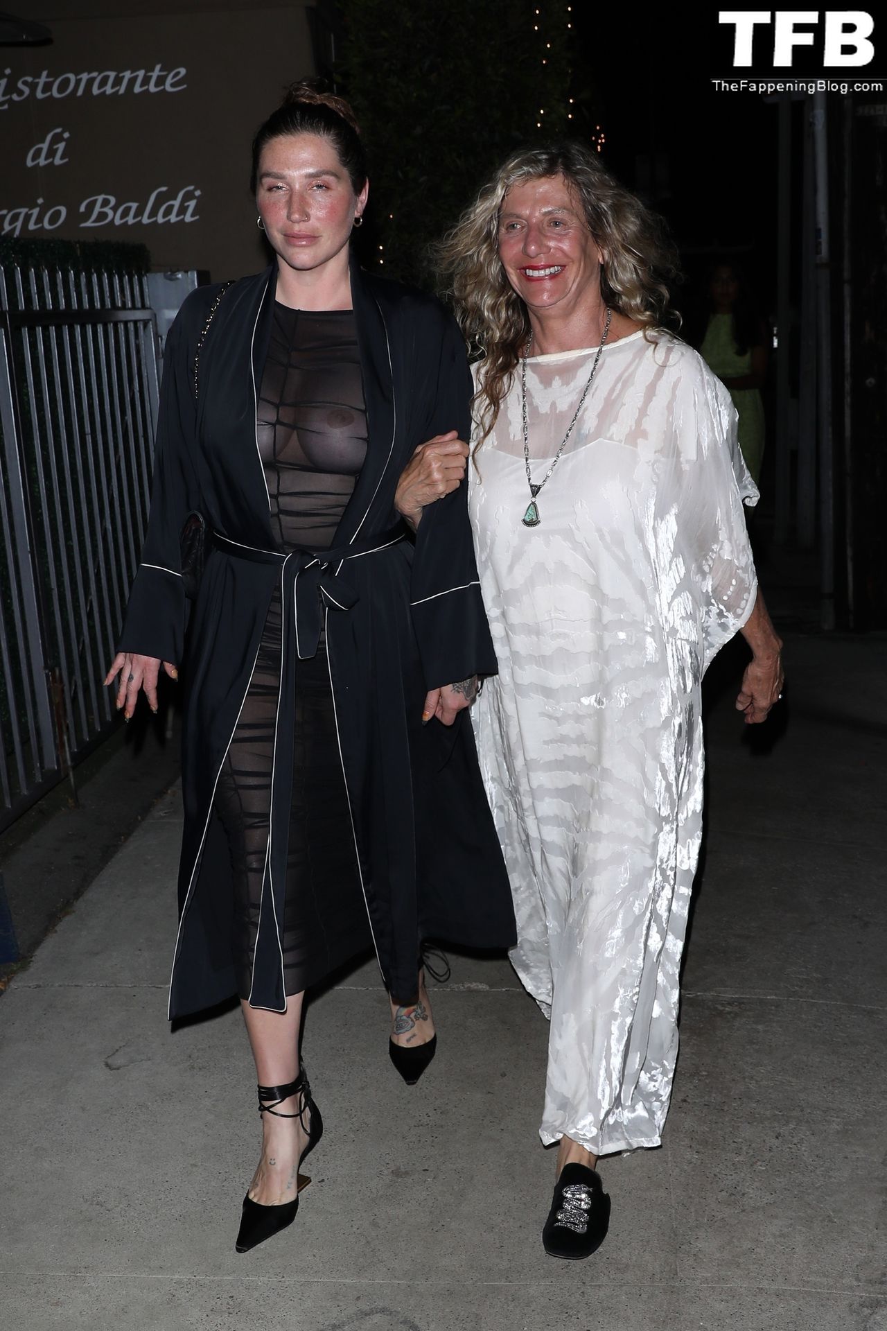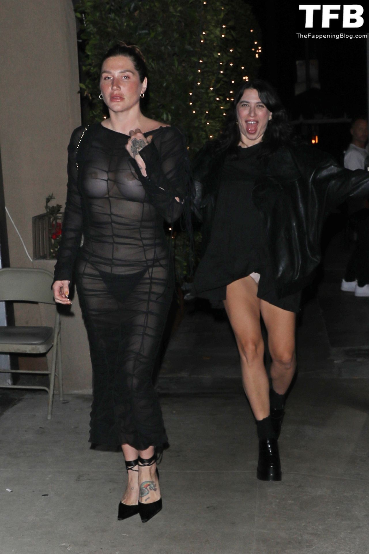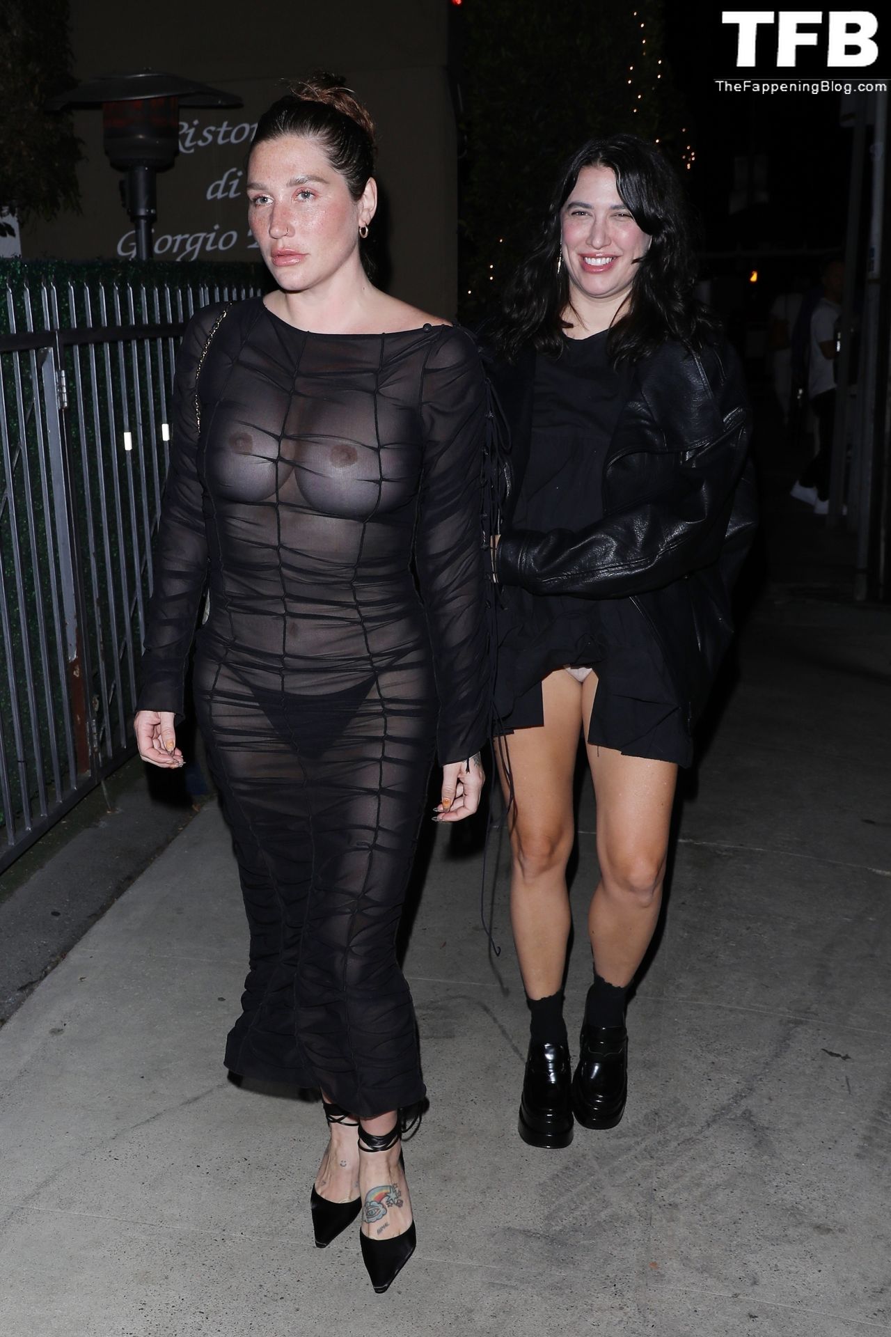 Kesha muestra sus pechos desnudos al salir de una cena tardía en Giorgio Baldi (78 Fotos)