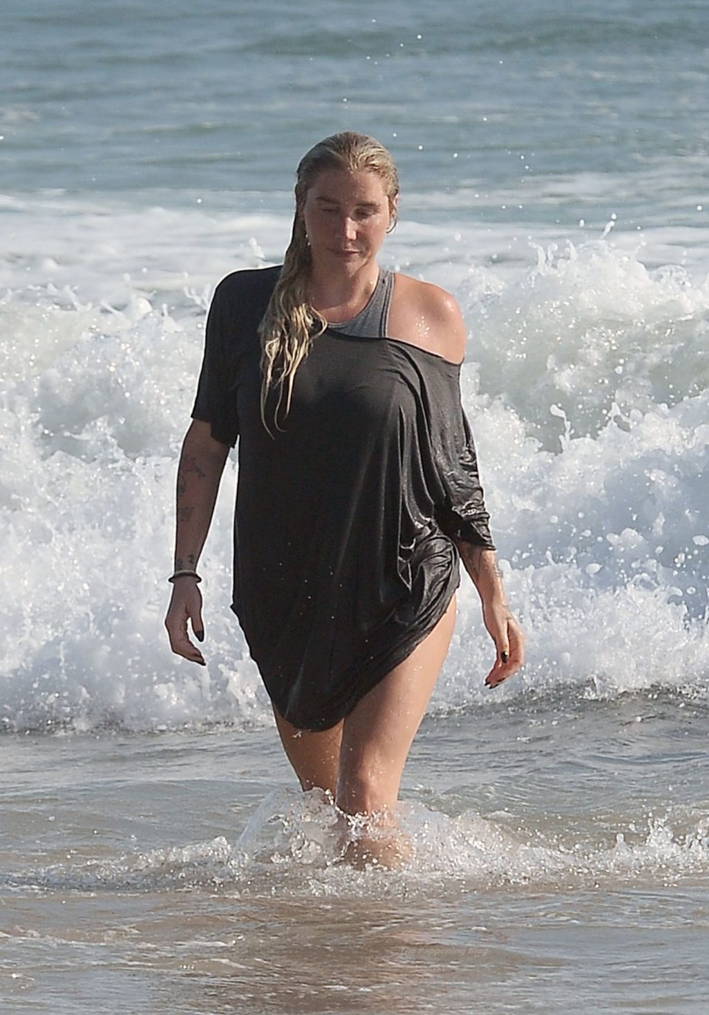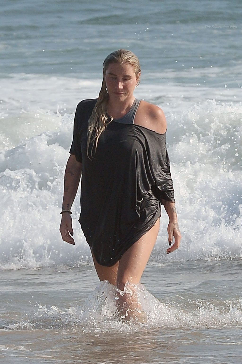 Kesha disfruta de la playa con amigos en Los Ángeles, 18/07/2021.