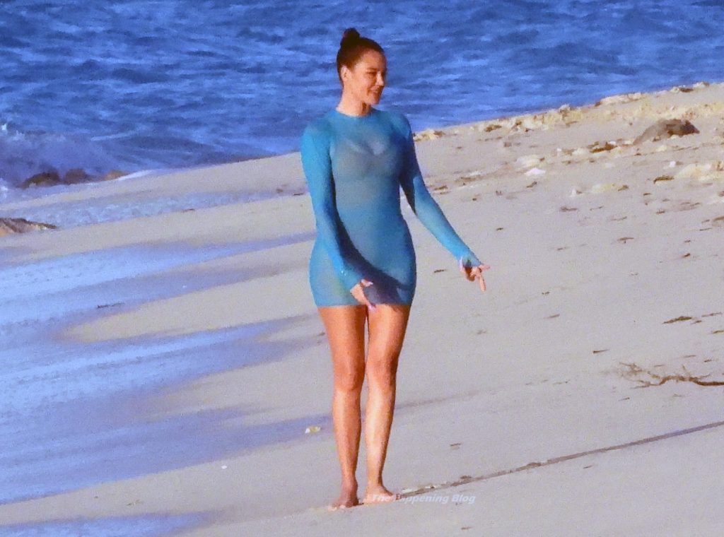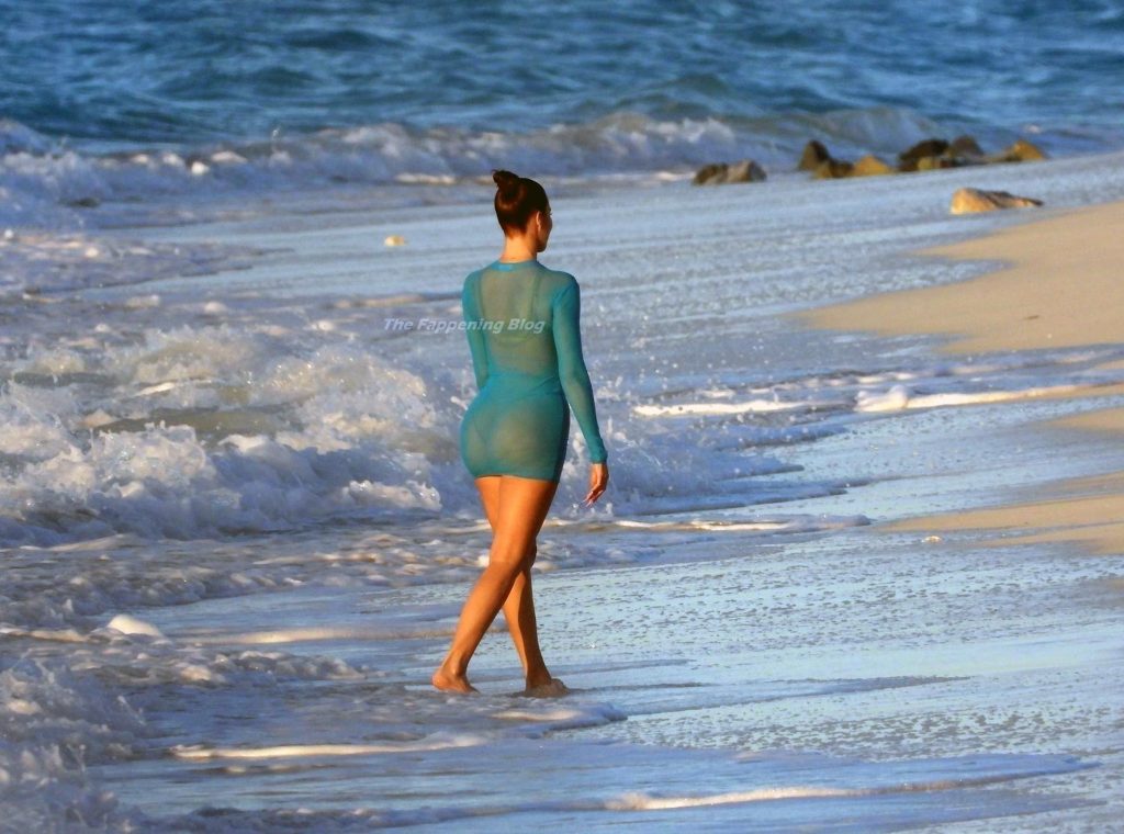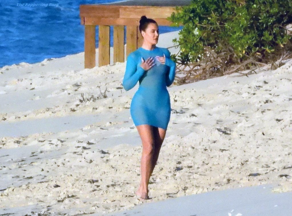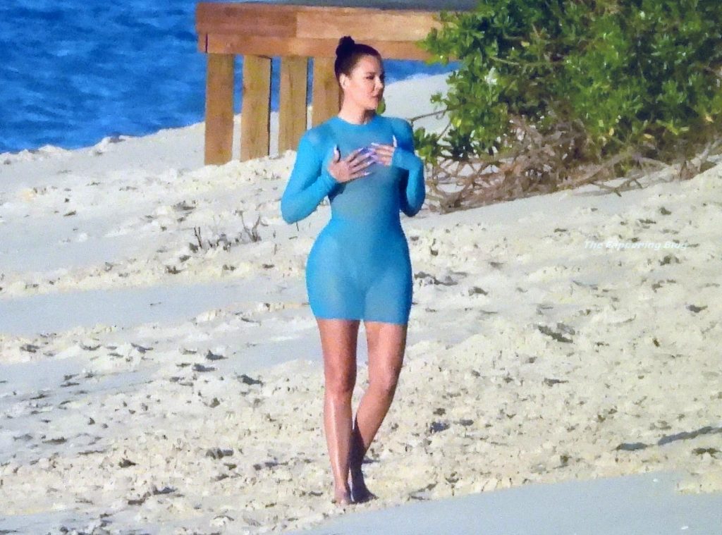Khloe flaunted her gorgeous figure in a cheeky one-piece with a body-hugging turquoise coverup that showed off her iconic curves to perfection. With her hair pulled back in a high knot, the reality star looked incredibly refreshed as she posed for pictures.