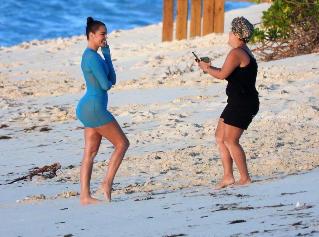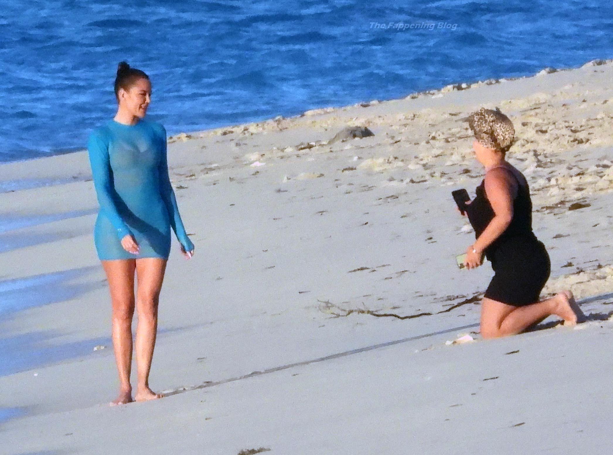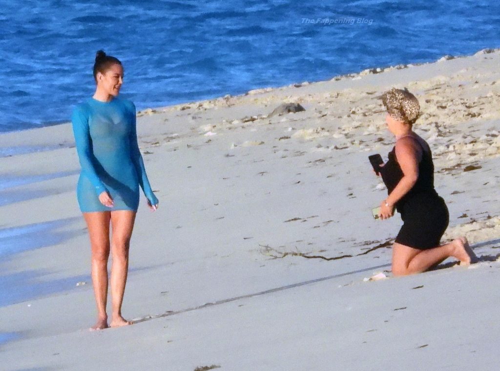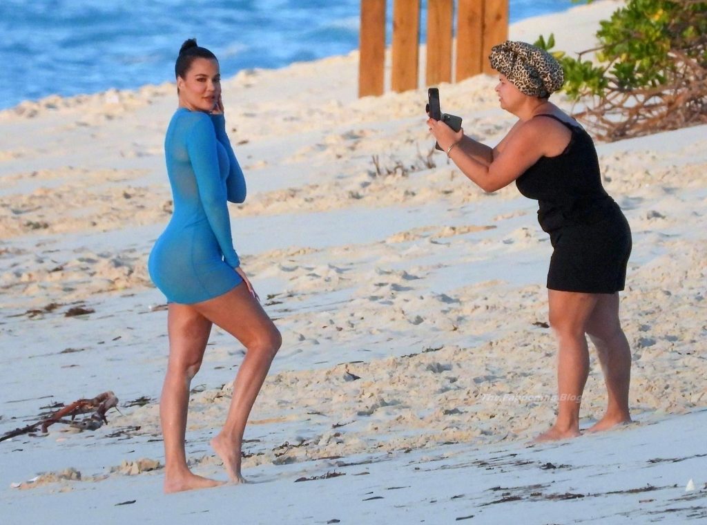 Mama, you’re scorching! Khloe Kardashian poses for a photo shoot on the beach in Turks and Caicos.