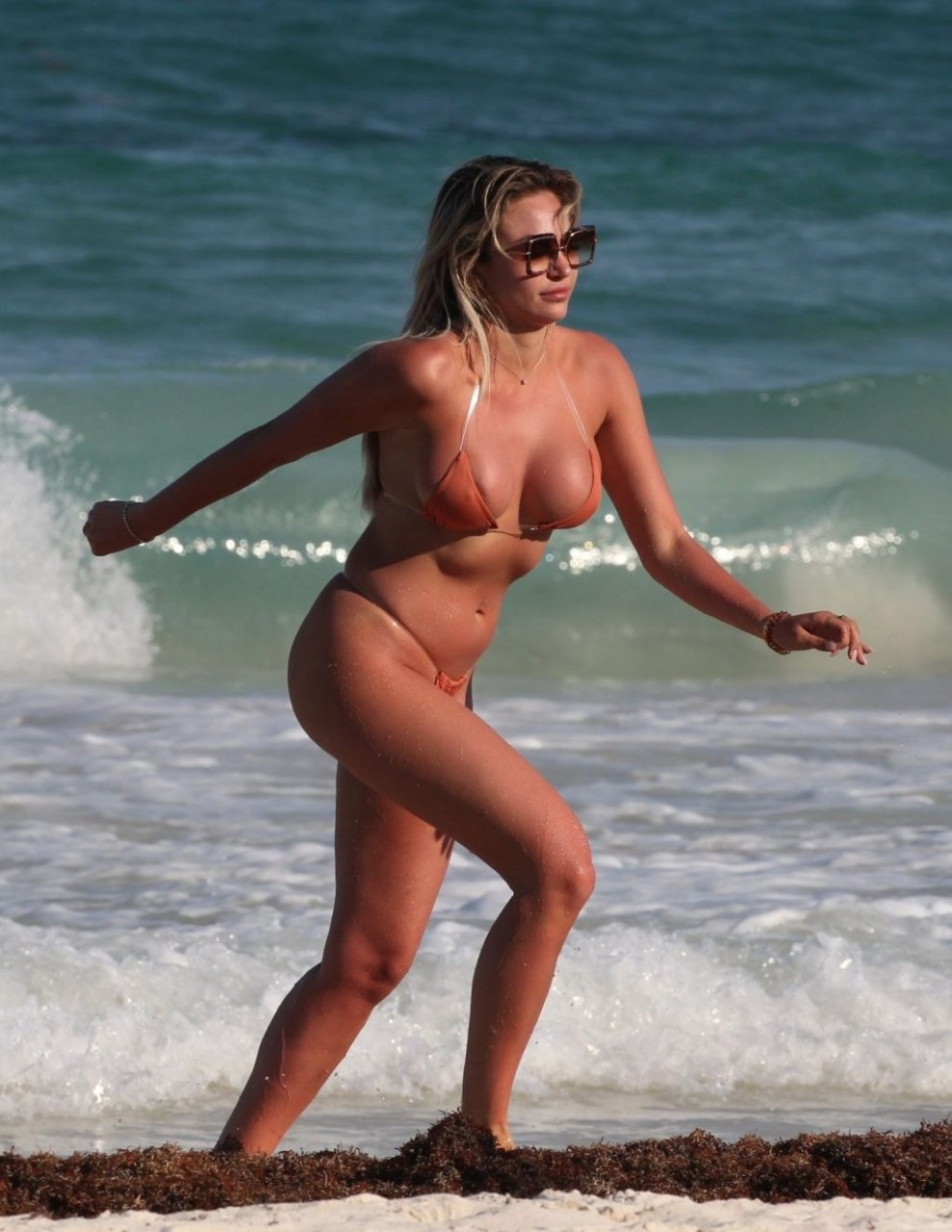 Khloe Terae calienta la playa en Tulum, 01/04/2019. La modelo de Playboy mostró su figura en un bikini diminuto mientras jugaba en las olas del océano con su amiga, Katie Carpenter.