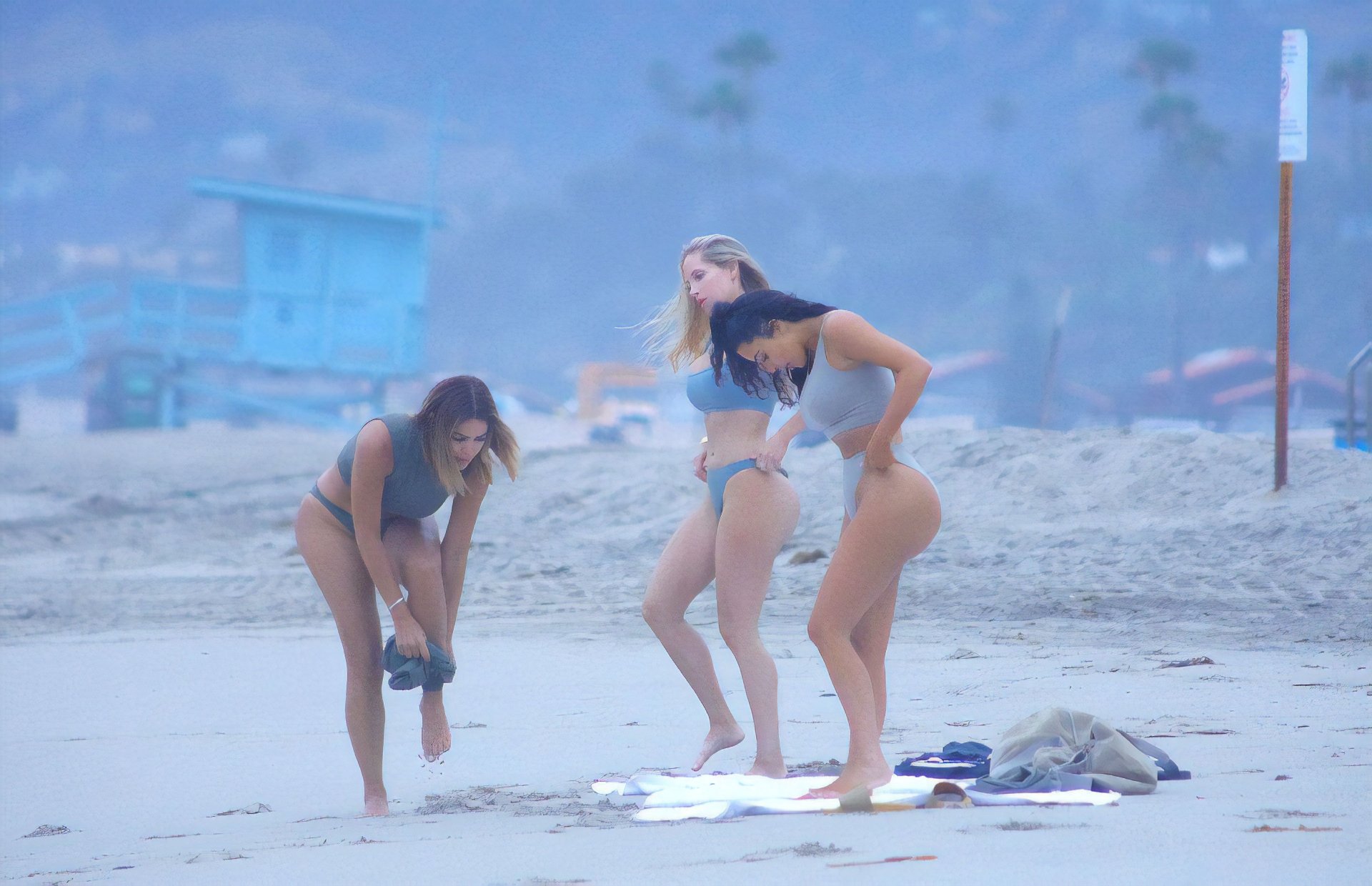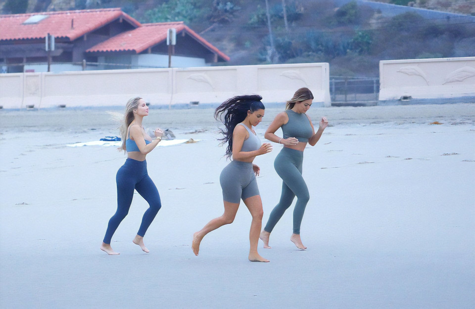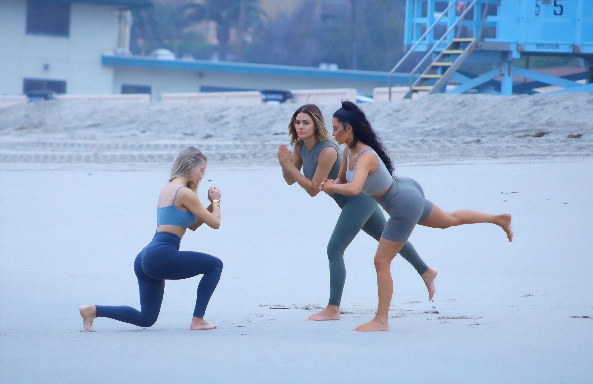 "Simplemente decidimos hacer un poco de yoga, y casualmente decidimos hacerlo en una playa, y de alguna manera, los fotógrafos nos vieron y tomaron un montón de fotos para las que no estábamos preparados en absoluto." Las palabras "sexy" y "Kardashian" no deberían estar en la misma oración, párrafo o página.