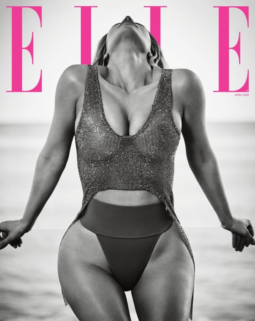 Kimberly Kardashian presenta su nueva sesión de fotos mojada para US Elle (abril de 2018). Demasiado caliente para esta revista formal. La estrella enana de reality TV de 37 años fotografiada y retocada por Boo George.