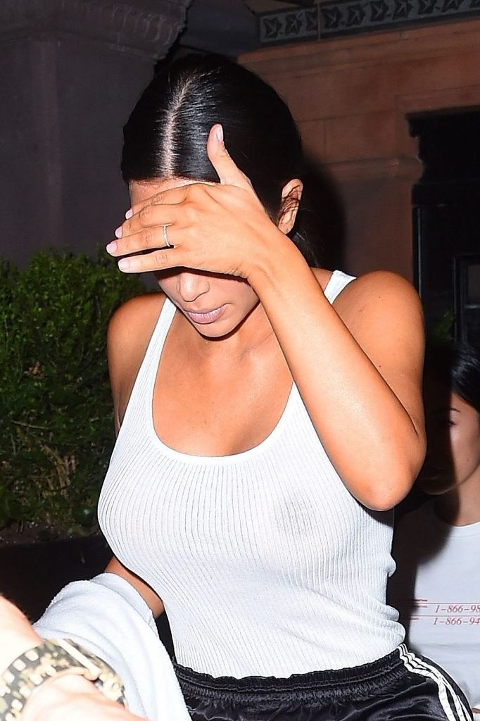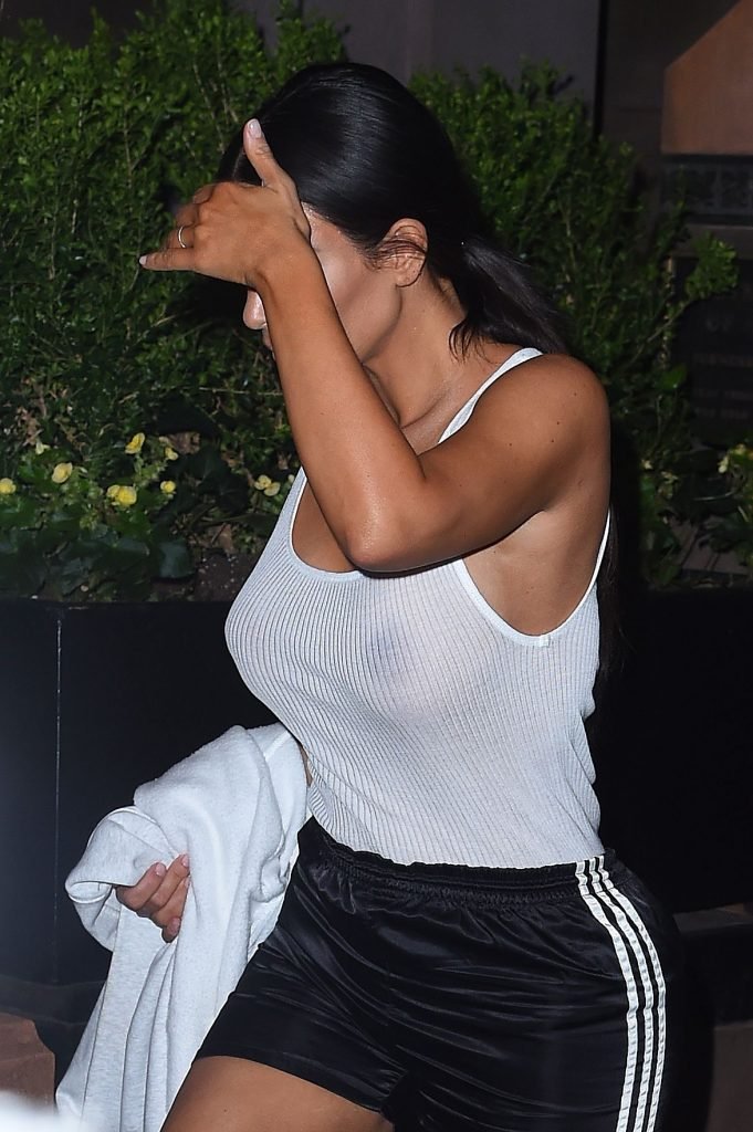 Puedes llevar el look de camisa blanca o transparente sin sostén todo el verano aquí en NYC. Ver a Kim haciéndolo no es sorpresa. Ella solo quiere saber cómo se mueven los imbéciles cuando está cerca, ¡JA JA!